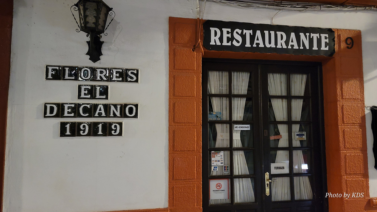 말라가에서는 약 100Km 정도의 거리라서 비교적 가벼운 이동이다. 이동하는 길 옆으로 스페인의 풍력 발전기들이 열일을 하면서 전기를 생산한다. 스페인의 풍력 발전 시설은 세계 5위로 매우 많아서 전체 전력 생산량의 25%가량을 담당한다. 론다에 도착하니 인구 4만 명 정도의 아주 아담한 도시지만 많은 문화유적과 절벽 등으로 관광객이 아주 많았다. 저녁쯤에 도착하여 호텔을 잡아 놓고 시내 야경을 돌아보고, 식사 장소도 헌팅하력 나섰다. 인터넷 리뷰도 좋은 음식점인 Flores El Decano를 찾아가니 가던 날이 장날인지 휴업이다. 이 음식점은 1919년에 개업을 해서 100년을 넘은 오래된 곳인데 평점이 그런대로 좋았다. 할 수 없이 시내를 둘러보고 들어 올 수밖에 없었다.