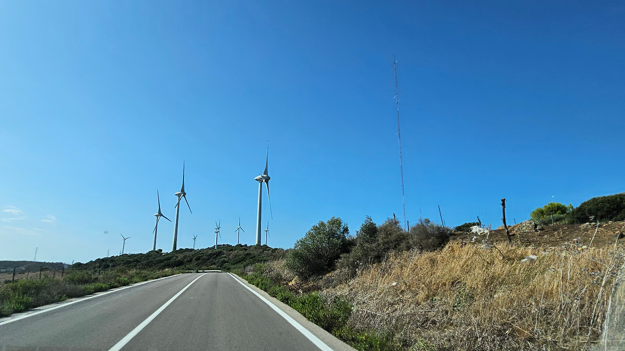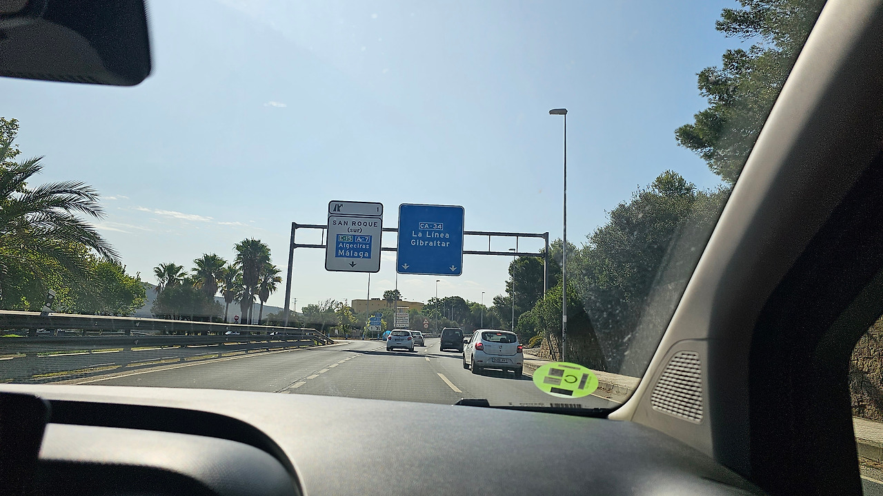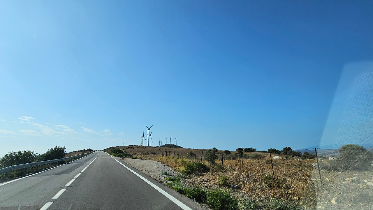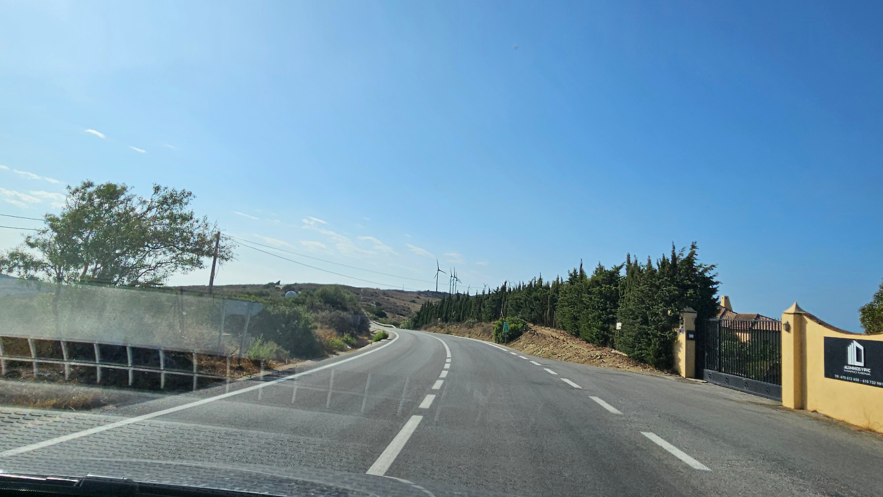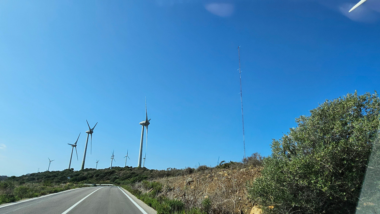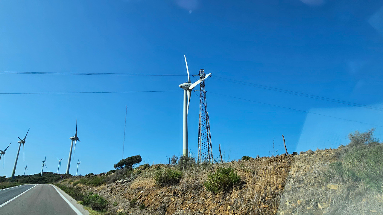 론다에서 지브랄타로 가는 길은 안달루시아 지방의 론다 산맥(Serrannia Ronda)을 넘어가는데, 가는 중간에 고신 전망대(Mirador de Gaucin)가 있다. 발콘 데 라 세라니아(Balcon de la Serrania)라고 불린다. 즉 세라니아의 발코니라는 뜻이다. 멀리 산 중턱에 보이는 백색마을(Pueblo Blanco)이 인상 깊고, 주변에 성채들도 아스라이 보인다. 산 꼭대기에 흰색을 칠한 집들이 옹기종기 모여 있는 모습이 동화를 연상시킨다. 마을 뒤쪽의 높은 바위 절벽 위에는 방어를 위한 성채가 건축되어 있어서 옛날의 역사를 돌아보게 한다. 산맥의 꾸불꾸불한 도로를 지나오는데, 길 옆으로 풍력 발전기의 바람개비들이 줄지어 서서 열심히 전기를 생산하고 있다. 스페인은 어디를 가나 이런 풍력 발전이 대세를 이룬다. 지브랄타에 도착해서 입국 수속을 하면서 저 멀리 보이는 지브랄타 바위산의 위용이 눈을 압도한다. 어릴 때 지도책에서 보단 커다란 바위산을 오늘 두 눈으로 직면하니 옛 생각이 아련하다.