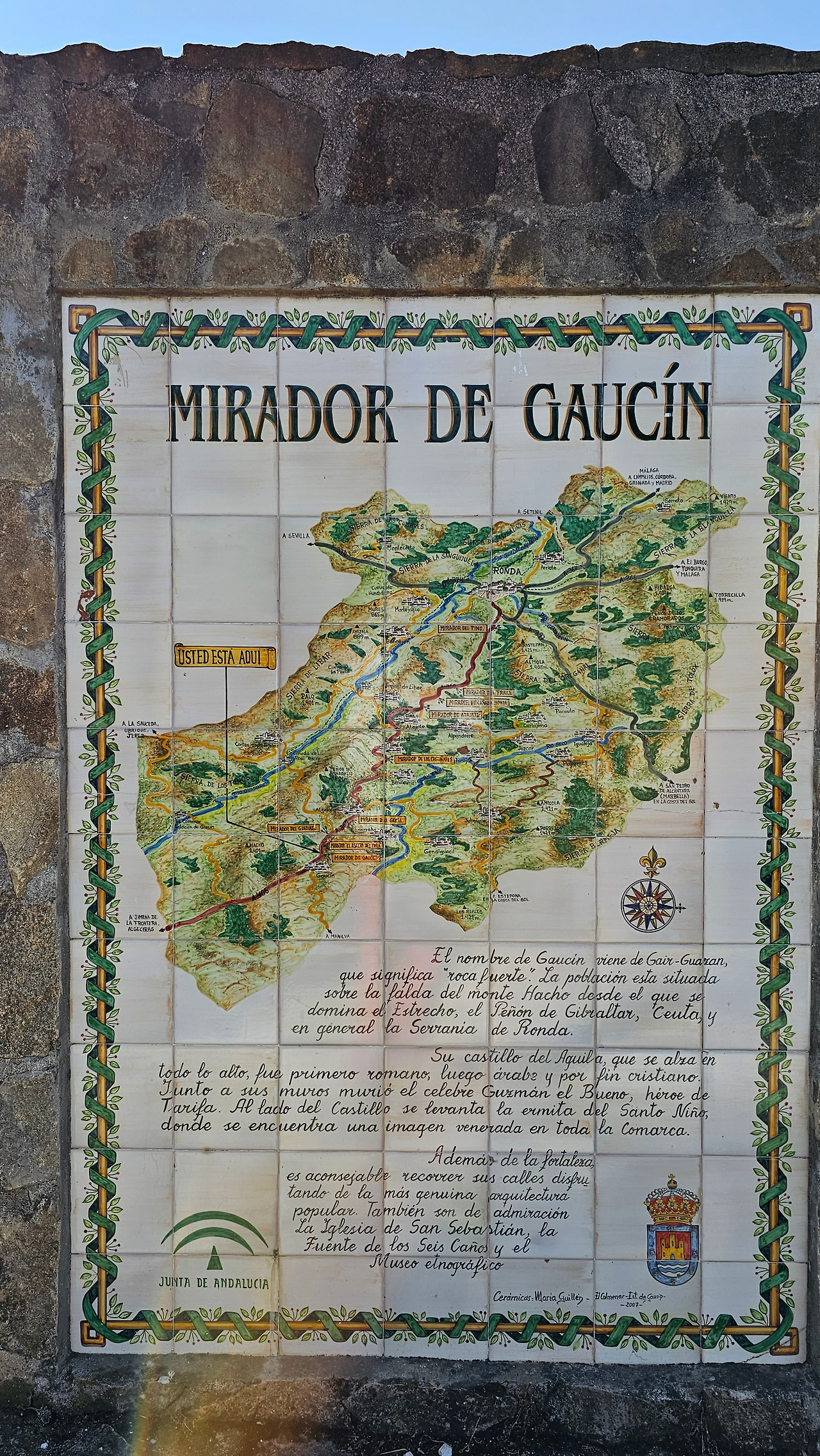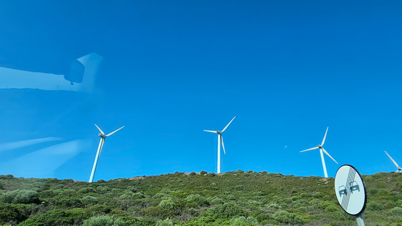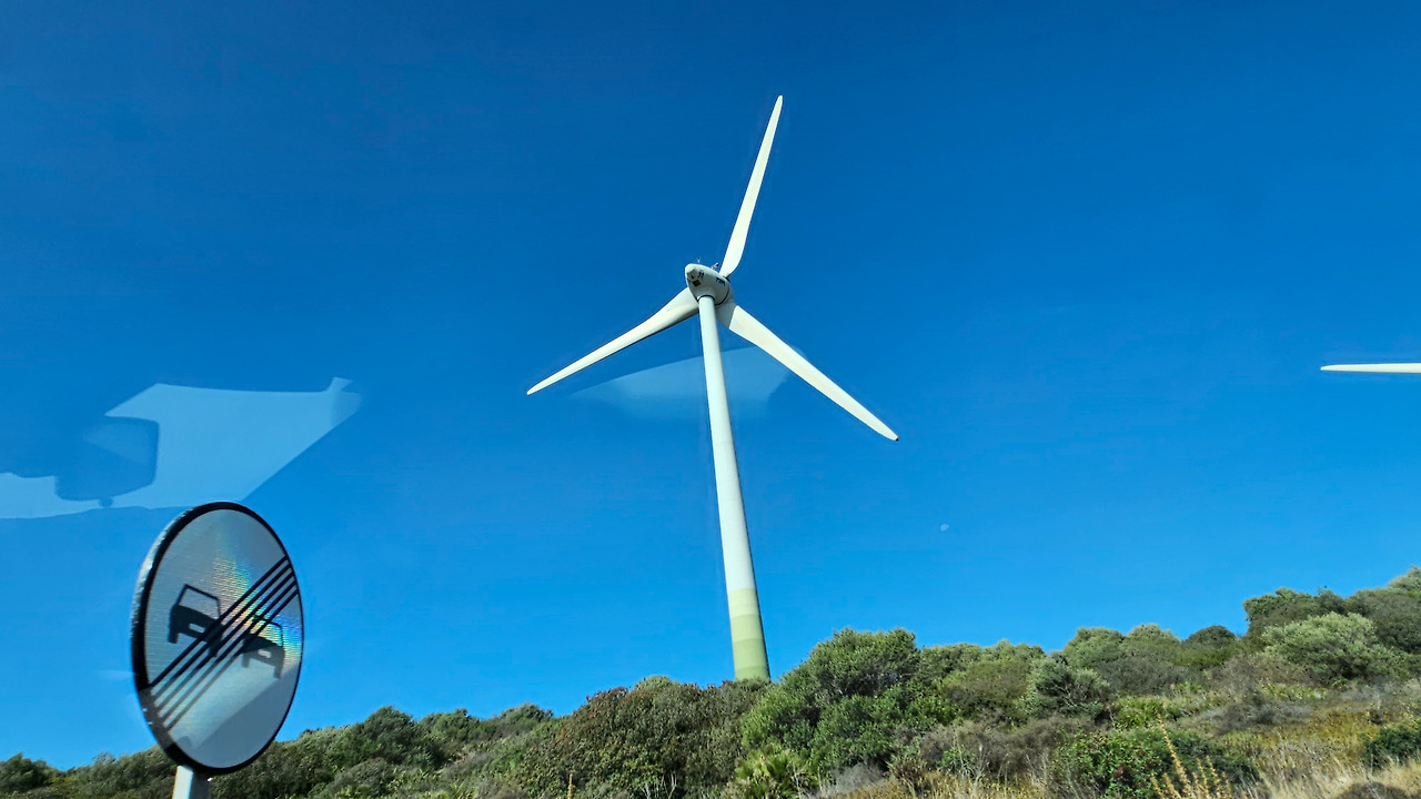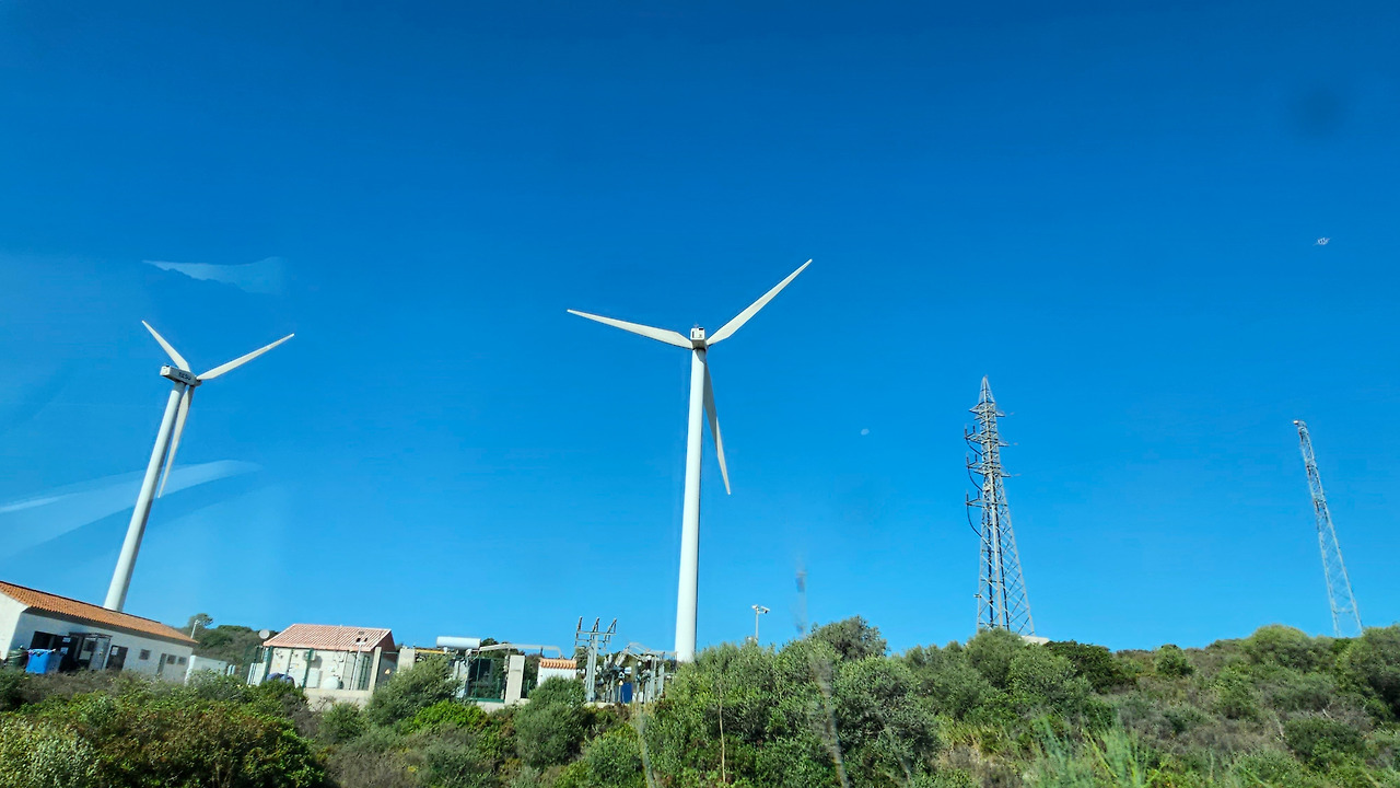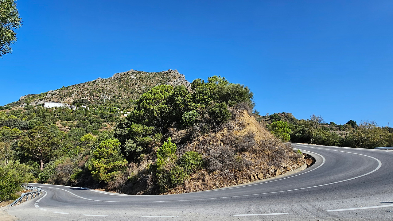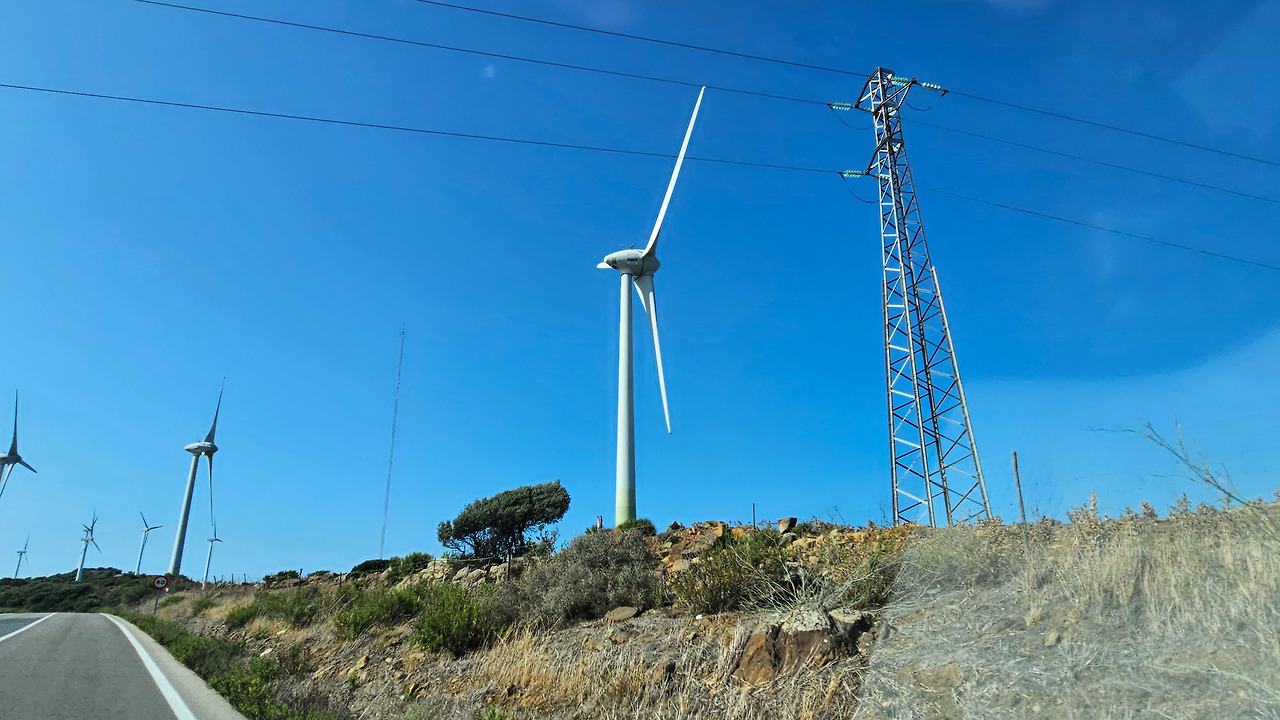 론다에서 지브랄타로 가는 길은 안달루시아 지방의 론다 산맥(Serrannia Ronda)을 넘어가는데, 가는 중간에 고신 전망대(Mirador de Gaucin)가 있다. 발콘 데 라 세라니아(Balcon de la Serrania)라고 불린다. 즉 세라니아의 발코니라는 뜻이다. 멀리 산 중턱에 보이는 백색마을(Pueblo Blanco)이 인상 깊고, 주변에 성채들도 아스라이 보인다. 산 꼭대기에 흰색을 칠한 집들이 옹기종기 모여 있는 모습이 동화를 연상시킨다. 마을 뒤쪽의 높은 바위 절벽 위에는 방어를 위한 성채가 건축되어 있어서 옛날의 역사를 돌아보게 한다. 산맥의 꾸불꾸불한 도로를 지나오는데, 길 옆으로 풍력 발전기의 바람개비들이 줄지어 서서 열심히 전기를 생산하고 있다. 스페인은 어디를 가나 이런 풍력 발전이 대세를 이룬다. 지브랄타에 도착해서 입국 수속을 하면서 저 멀리 보이는 지브랄타 바위산의 위용이 눈을 압도한다. 어릴 때 지도책에서 보단 커다란 바위산을 오늘 두 눈으로 직면하니 옛 생각이 아련하다.