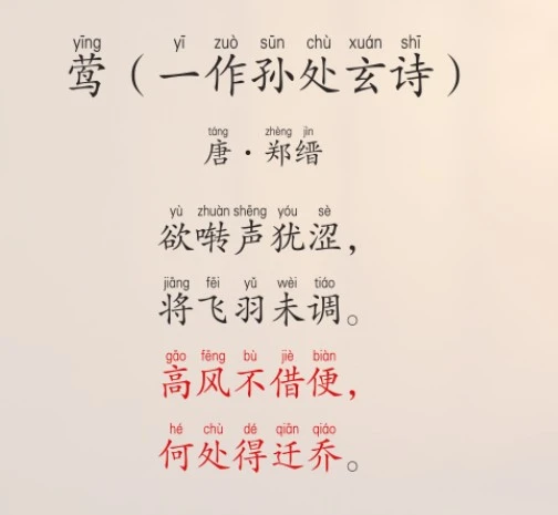 이는 꾀꼬리를 보고 시를 읊은 곡조다. 저 꾀꼬리가 지저귀려 하나 목소리가 오히려 많이 껄끄럽고, 장차 날려하나 날개가 아직 능히 조화롭지 못하니 이는 혹 그때를 놓쳐 그러한가? 높은 바람이 편리함을 빌려주지 않으니, 어느 곳을 따라 높은 나무로 옮겨갈 수 있을까? 꾀꼬리의 때 놓침을 인용하여 스스로 탄식함을 비유한 말이다.
