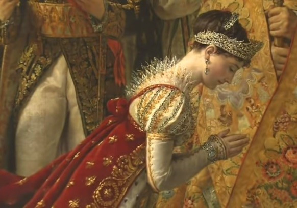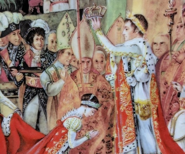 나폴레옹은 유럽의 황제들이 전통적으로 올리던 대관식을 무시하고 자기 마음대로 행사를 치르기도 했다. 황제들은 로마의 성 베드로 성당에서 대관식을 하고 교황이 황관을 씌워 주는 것이 관례이다. 그는 1804년 12 월 2일 교황을 파리로 오게 해서 노트르담 성당에서 대관식을 거행했다. 대관식에서 교황 비오 7세가 씌워주려는 관을 두 손으로 받아 들고는 관중들에게 돌아서서 스스로 자신의 머리에 썼다. 그리고는 황후 조세핀의 머리 위에도 직접 황후의 관을 씌워주었다. 황후의 관을 다이애덤(Diadem) 또는 티아라(Tiara)라고 하는데 온갖 보석으로 장식하여 위엄과 아름다움의 상징했다. 역사적으로 고대 이집트 시절부터 사용했다. 다이애덤은 주로 원형을 말하고, 티아라는 반원의 머리띠 형태를 띠는 것이 많다. 조세핀이 티아라를 즐겨 사용한 후 이것이 일반에도 크게 유행해서 결혼식이나 중요한 의식에 여성들이 헤어 액세서리로 많이 사용하였다. 오늘날 미스코리아 뽑을 때 직전 연도 미스진이 새로운 입상자에게 씌워주기도 한다. 조세핀의 질투에 대한 일화 한 토막을 보자. 어느 날 나폴레옹이 열기로 되어있는 호화로운 파티에는 이웃나라의 젊고도 아름다운 공주가 참석하기로 되어 있었다. 이 소식을 들은 조세핀은 은밀히 그 공주가 파티에 입고 올 의상의 색깔과 모양 등을 파악했다. 행사 당일 밤에 그 공주는 아름다운 초록 드레스를 입고 무도장에 나타났다. 이미 조세핀은 파티장의 커튼과 양탄자, 심지어는 의자까지도 초록색으로 바꿔버린 후였다. 흰 드레스와 황금빛으로 치장한 조세핀은 그날의 화려하고 우아한 주인공으로 한결 돋보였고, 초록색 드레스의 공주는 푸른 주위 환경에 묻혀 버려 빛을 잃고 말았다고 한다.