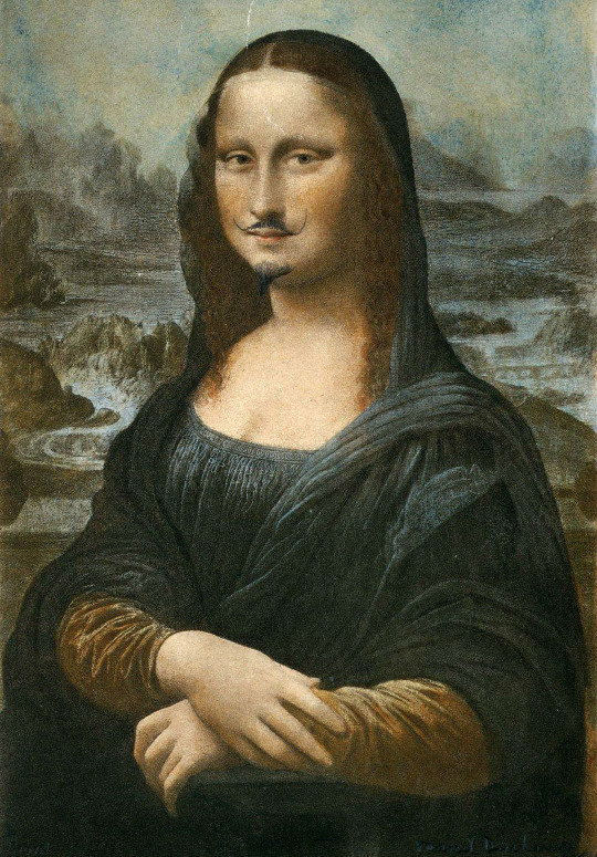 <화가 마르셀 뒤상이 모나리자 그림엽서에 낙서한 모습>