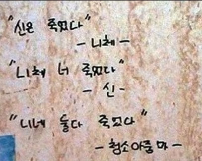 화장실의 낙서도 줄어들지만, 일반적인 낙서도 한 때 흥행하던 시기에 비해서 엄청나게 줄어들었다. 필자 금삿갓은 인간을 무언가 자기 생각을 글이나 그림 등으로 나타 내고 싶어 하는 심리를 본래 가지고 있다고 본다. 그래서 ‘낙서하는 인간’은 호모 스크리벤스(Homo Scribens), ‘그림으로 낙서하는 인간’은 호모 그라피티(Homo Graffiti)로 불러보는 것이다.(https://brunch.co.kr/@0306a641d711434/244)금삿갓이 산티아고 800Km를 걸을 때 보니까 우리와는 다르게 정말 낙서가 많았다. 심지어 길가의 가로수에 칼로 새긴 것도 부지기수였다. 다시 과거로 돌아가서, 이집트 피라미드의 건설과정에 대하여 학자들 사이에 많은 논쟁이 있었다고 한다. 그리스의 역사가 헤로도토스는, 피라미드가 무임금 노예들을 착취하여 만든 것이라고 주장했었다. 하지만, 피라미드 주변에서 많은 ‘낙서’들이 발견되면서 그 주장은 뒤집히게 된다. 피라미드의 주변에서 발견된 낙서들에는 ‘월급은 조금 주면서 일 더럽게 많이 시키네.’라는 불만부터, ‘감독관이랑 싸워서 며칠 안 나왔는데, 집에서 마누라가 하도 바가지를 긁어서 다시 일하러 나왔네.’라는 일상의 이야기까지, 생생한 그때의 삶을 전해주고 있다고 한다. 또 어떤 낙서에는 피라미드 건설 결근 사유로 ‘어제 숙취 때문에’라고도 적혀 있다고 하니, 자칫하면 자료 부족한 역사가에 의해 왜곡될 뻔했던 생생한 이집트 민초들의 역사를, 낙서가 되돌려놓은 것이다. 필자의 생각으로는 스마트 폰의 발달로 우리는 화장실에 앉아서 용변 보는 시간에 멍하니 딴생각을 하던가 낙서를 하지 않고 문명의 이기를 가지고 열심히 손장난을 하고 있기 때문이 아닐까 한다. 화장실뿐만 아니라 다른 은밀한 공간의 낙서가 줄어드는 것이 사회심리적으로 꼭 좋은 면만 있는 것을 아닐 것으로 짐작한다.(금삿갓 芸史 琴東秀)
