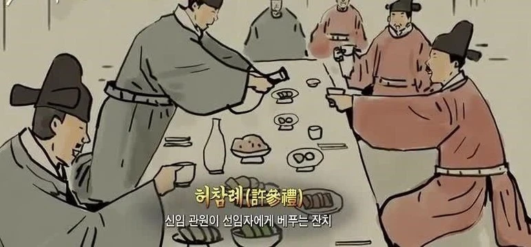 신고식은 허참례(許參禮)로 시작되어 면신례(免新禮)로 끝을 맺는다. 신고식의 음식은 품목당 홀수 단위인 3·5·7·9로 준비하여 여러 차례 치러야 했다. 이러한 통과의례를 준비하자면 부잣집 자제도 어려운데 가난한 선비들은 정말 가산을 탕진할 수준이었을 것이다. 물질적 부담 외에도 정신적·육체적 가학행위(加虐行爲)도 심했다. 초도(初度)라고 한 달가량 내리 숙직을 시키고, 희학(戲謔)이라고 해서 연회에서 별의 별짓을 시켰다. 얼굴에 먹 장난을 하는 묵희진퇴(墨戱進退), 검댕이 손을 씻은 물 마시기, 경홀(擎忽)이라는 석가래 들기, 관복 입고 연못에서 고기잡이, 순함(順銜)·역함(逆銜)이라는 벼슬이름 오르내리 외우기, 얼굴에 오물 뒤집어쓰기 등을 시키거나 행하지 못하면 집단 구타를 하였다. 관청별로 예문관의 통과의례가 기율(紀律)이 가장 엄했고 물건을 준비하는 징구(徵求)도 다른 부서보다 갑절이 넘었다.