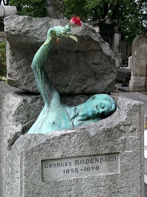 파리를 느긋하게 여행할 경우 꼭 Père Lachaise 묘지에 가보길 권한다. 200년 이상된 묘원(墓園)인데, 조각가 제이콥 앱스타인이 만든 오스카 와일드(Oscar Wilde)의 묘비도 볼 수 있다. 극성스러운 여성들의 키스로 루즈 자국이 어지럽게 나자 지금은 유리 보호막을 설치하여 비석에 직접 바른 것은 없다. 페르 라셰즈 묘지는 아름다운 영묘와 묘비로 세계적으로 유명하여 묘지라기보다는 하나의 조각공원이나 조각도시라고 할 수 있다. 여기서 눈길은 끄는 것은 19세기 벨기에 작가 조르주 로덴바흐(Georges Rodenbach)의 묘비일 것이다. 그의 묘비는 로덴바흐의 청동상이 무덤에서 막 나오는 모습이 보이며, 손에 장미 한 송이를 꼭 쥐고 있다. 극적이고 낭만적인 로덴바흐의 무덤은 그의 작품의 의미를 반영한다. 그의 가장 유명한 작품인 상징적 소설 『죽음의 브뤼허(Bruges-la-Morte)』 는 브뤼허에 사는 한 홀아비가 죽은 아내와 닮은 오페라 무용수 여인을 맹목적으로 스토킹 하다가 살인을 저지르는 슬프고 가슴 아픈 이야기이다. 이 주제는 에리히 코른콜트(Erich Korngold)가 오페라 <죽음의 도시>로 작곡하여 우리나라에서도 공연된 적이 있다.