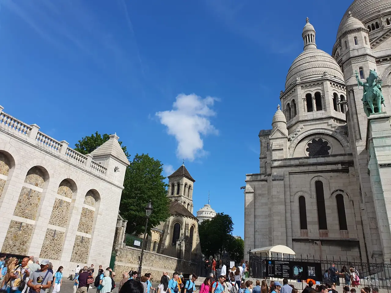 그것은 바로 파리에서 가장 높은 건물인 사크레쾨르 성당으로서 그 위용을 자랑한다. 대부분 가장 높은 건축물이 에펠탑이라고 기록되어 있는데 에펠탑은 첨탑의 높이가 높아서 제일이다. 하지만 실제 사람이 활동할 수 있는 공간이 있는 건축물로는 이 성당이 최고이다. 몽마르트르 언덕이 해발 130m 조금 못 미치지만 그 정상에 있으니 남산 타워 꼴이다.