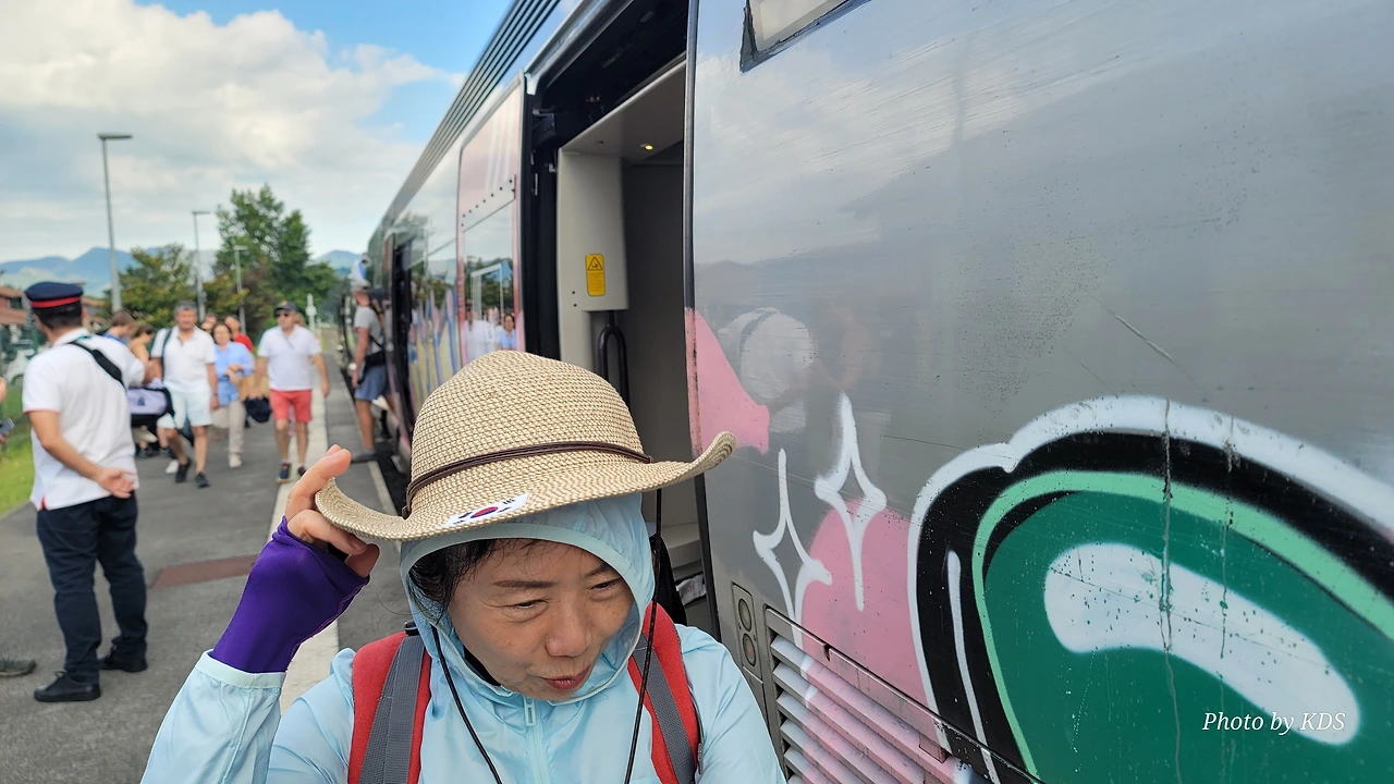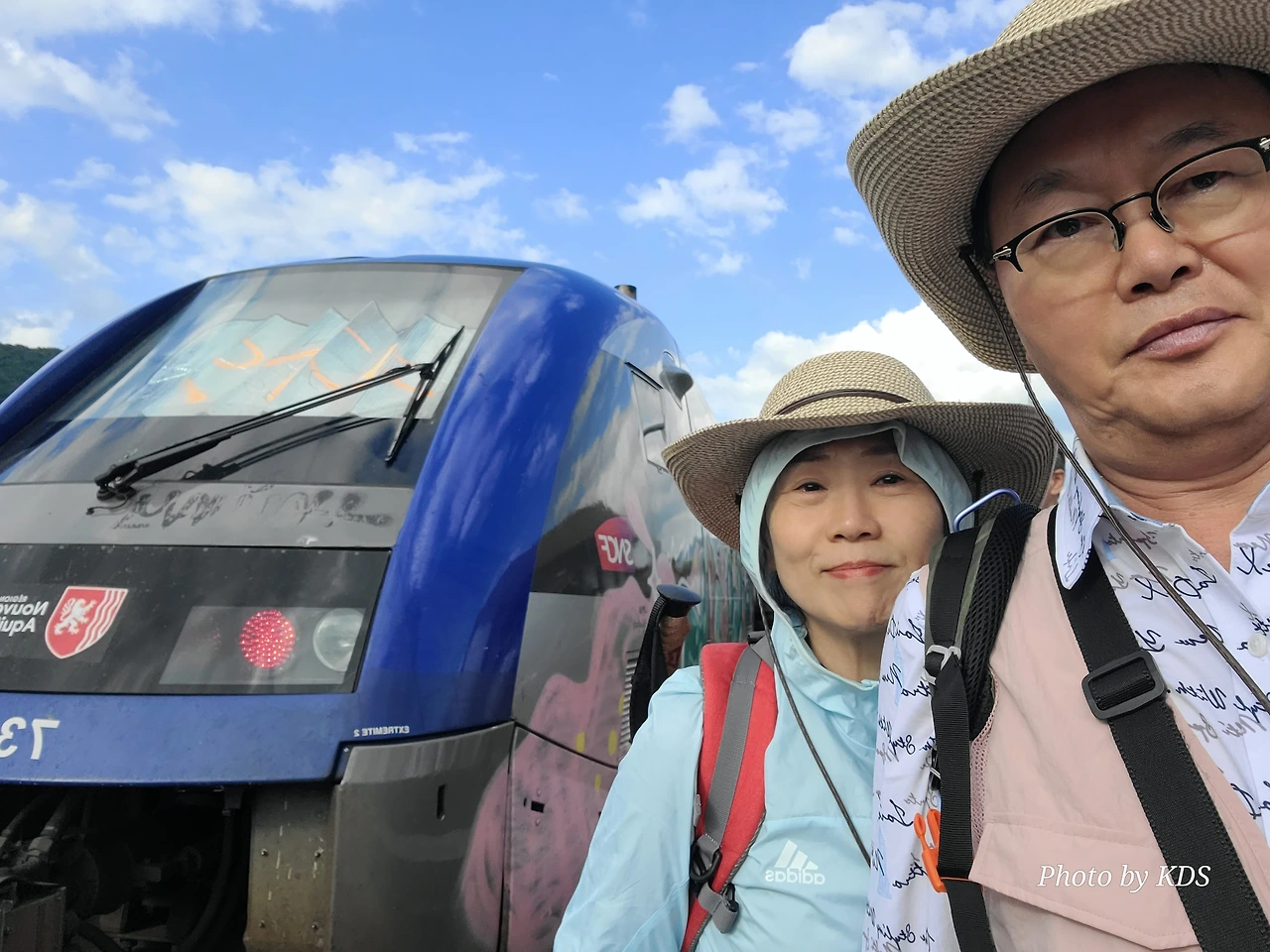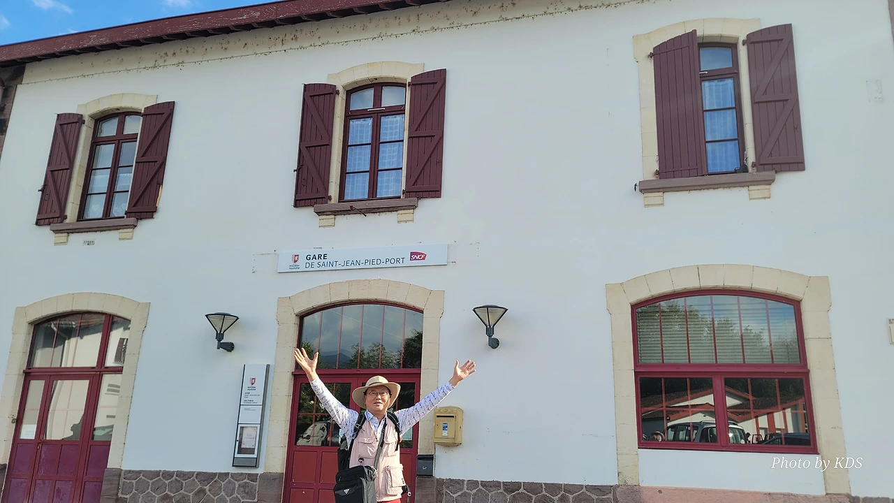 한참을 기다려 기차를 타고 생장으로 출발했다. 혹시 잠들면 생장을 지나서 다른 곳으로 갈까 봐 졸린 눈을 비비면 참고 09:25분에 생장에서 내렸다. 강원도 시골의 간이역처럼 아담한 역이다. 생장은 인구 2천 명도 안 되는 조그마한 면 소재지 정도이다. 조용하고 아담하며 아름다운 마을 같았다. 기차에서 내리는 승객 중에 우리처럼 배낭을 짊어진 순례객들이 간혹 보인다.
