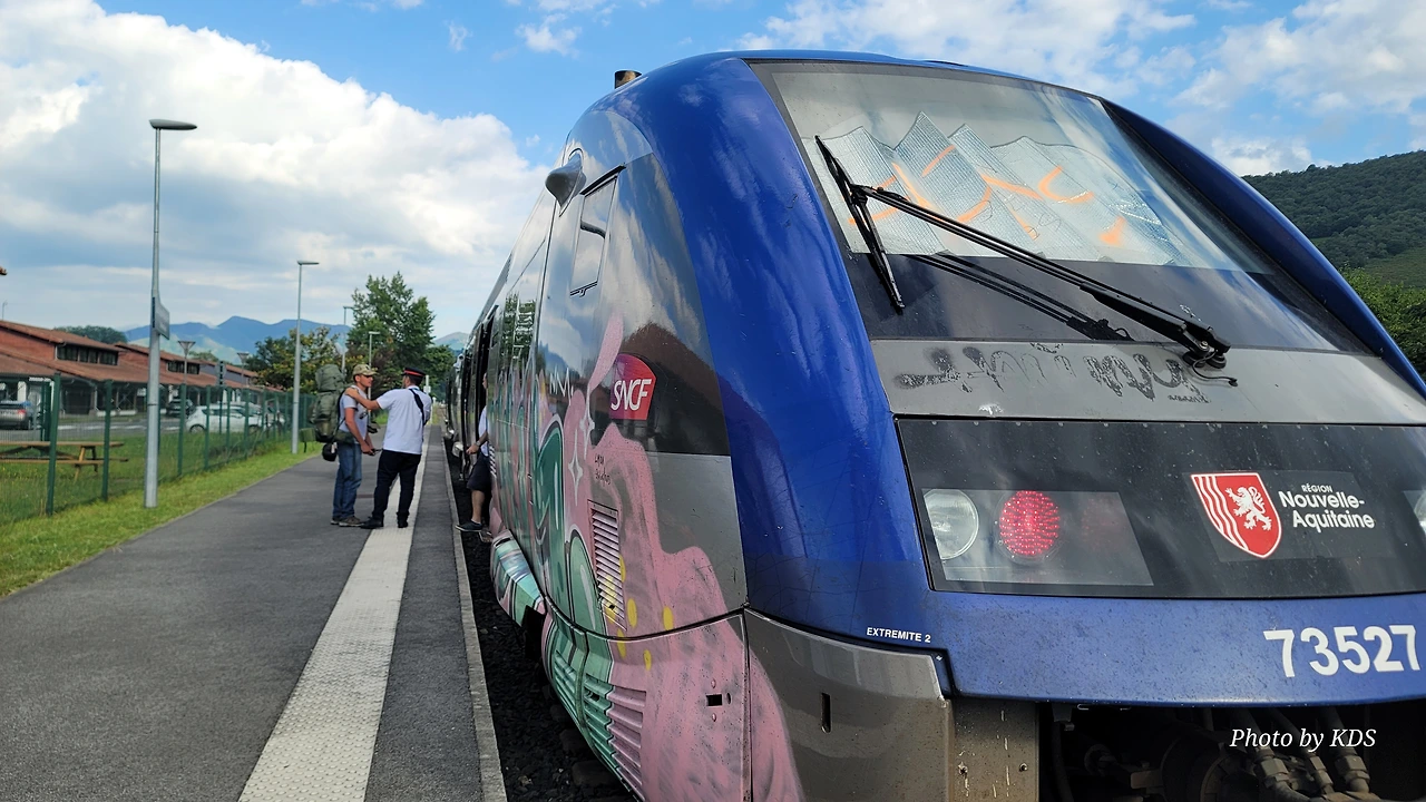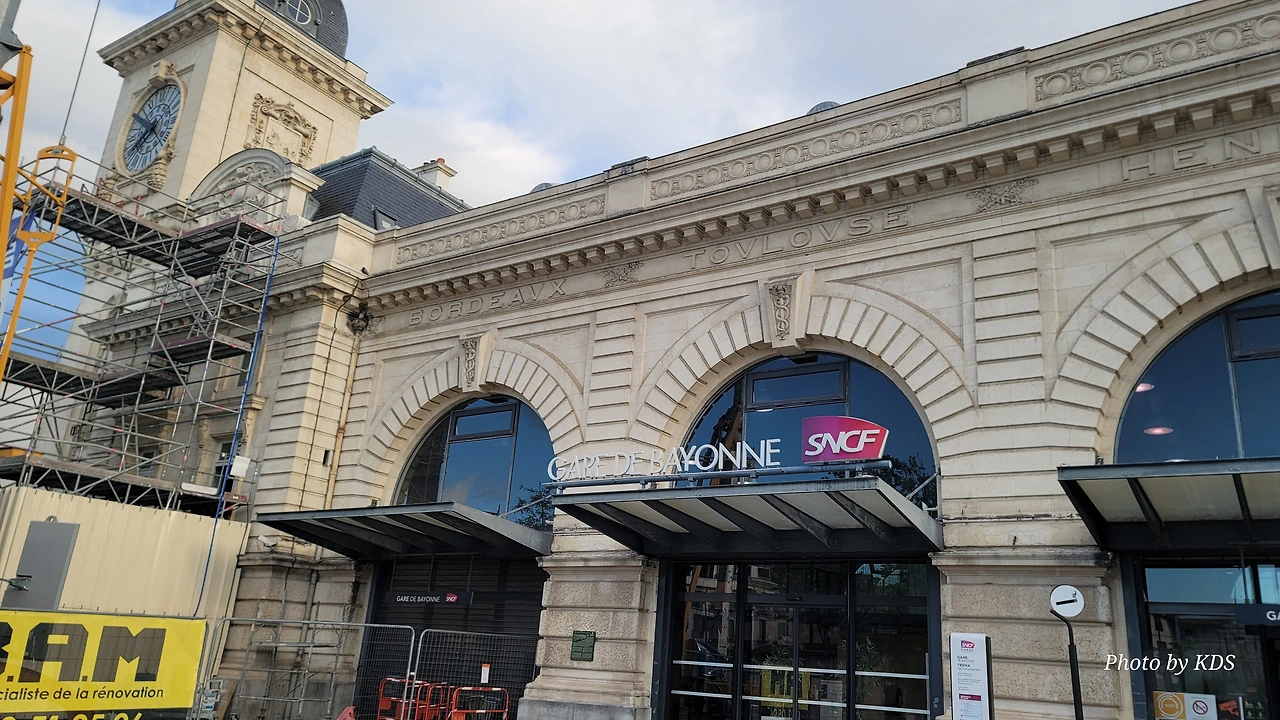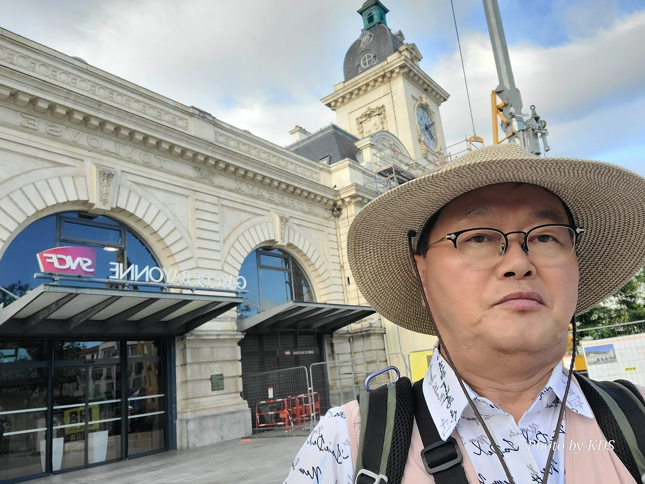 조선 과객 금삿갓은 오후 4시에 파리를 출발하는 포르투갈 리스본행 Flix Bus를 탔다. 파스칼 메르시어의 소설과 영화인 낭만적인 <리스본행 야간열차>가 아니라, 피곤하고 힘든 현실의 리스본행 야간 버스다. 보르도에서 다시 툴루즈행 버스를 갈아타고, 장장 13시간이나 걸려 프랑스 남서부 해안도시 바욘에 새벽 5시에 도착했다. 바욘은 아직 깊은 밤중이었다. 버스 정류장에서 컴컴한 거리를 더듬거리며 바욘역으로 왔으나 역사(驛舍)의 문도 잠겼다. 한 시간을 기다리니 역무원이 문을 열어놓고 사라진다. 전광판과 승차권 발매기만 대합실을 지키고 있다. 화장실 조차도 문을 잠구어 놓았다. 정말 형편이 무인지경이다. 생장행 첫차는 7시 15분이다. 자동발매기에서 차표를 사고 난 후에 역 대합실 구석의 조그마한 편의점이 열려 있기에 거기서 커피와 크루아상으로 아침을 때웠다.