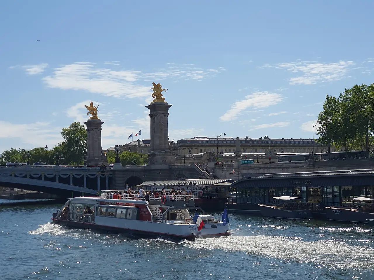 센강은 폭은 좁지만 수중보 설치 덕으로 수량은 그런대로 많아서 사시사철 유람선을 운행할 수 있고, 유람선을 운행하는 선사(船社)도 많아서 고객이 입맛대로 골라 잡을 수 있다. 그중 바토 무슈와 바토 파리지앵이 대종을 이룬다. 운행시간이나 주간 야간, 식사 유무 등에 따라 다양한 패키지가 있을 수 있다. 럭셔리 크루즈가 아닐 바에야 1시간짜리 단순한 유람선이 제일 간편하다. 센강의 다리 몇 개를 지나고 중심가의 전경을 관망할 수 있기 때문이다. 바토 무슈 선착장은 알마교와 앙발리드 다리 사이에 있는데, 알마교는 1856년 나폴레옹 3세 때 크림전쟁의 승리를 기념하기 위해 건립됐던 다리이다. 이 다리 근처에 있는 지하차도에서 파파라치에게 쫓기던 다이아나 왕세자비가 교통사고로 사망해서 세인의 이목을 집중시키기도 했다. 흥미로운 것은 크림전쟁 때 공을 세운 군인들의 동상으로 장식된 다리교각이 홍수 수위 측정용 수표(水標)로 사용된다는 점이다. 교각에 있는 용병 즉 주아브(Zouave) 동상의 발목까지 수위가 오르면 강변도로가 폐쇄되고, 허벅지에 이르면 강 위로 배가 다닐 수 없었다고 한다. 강물이 많아서 배를 안 띄우는 것은 강물의 수위와 다리 상판 사이의 공간이 좁아져서 배가 지나가지 못하기 때문이다.