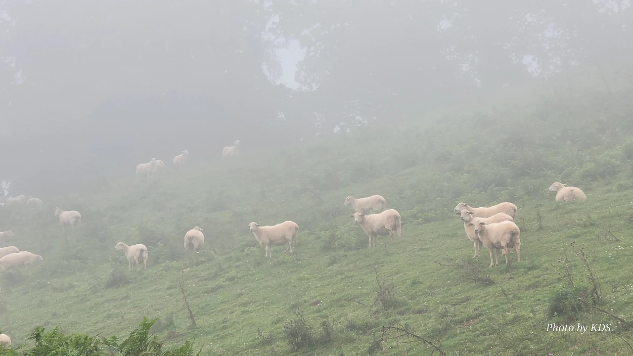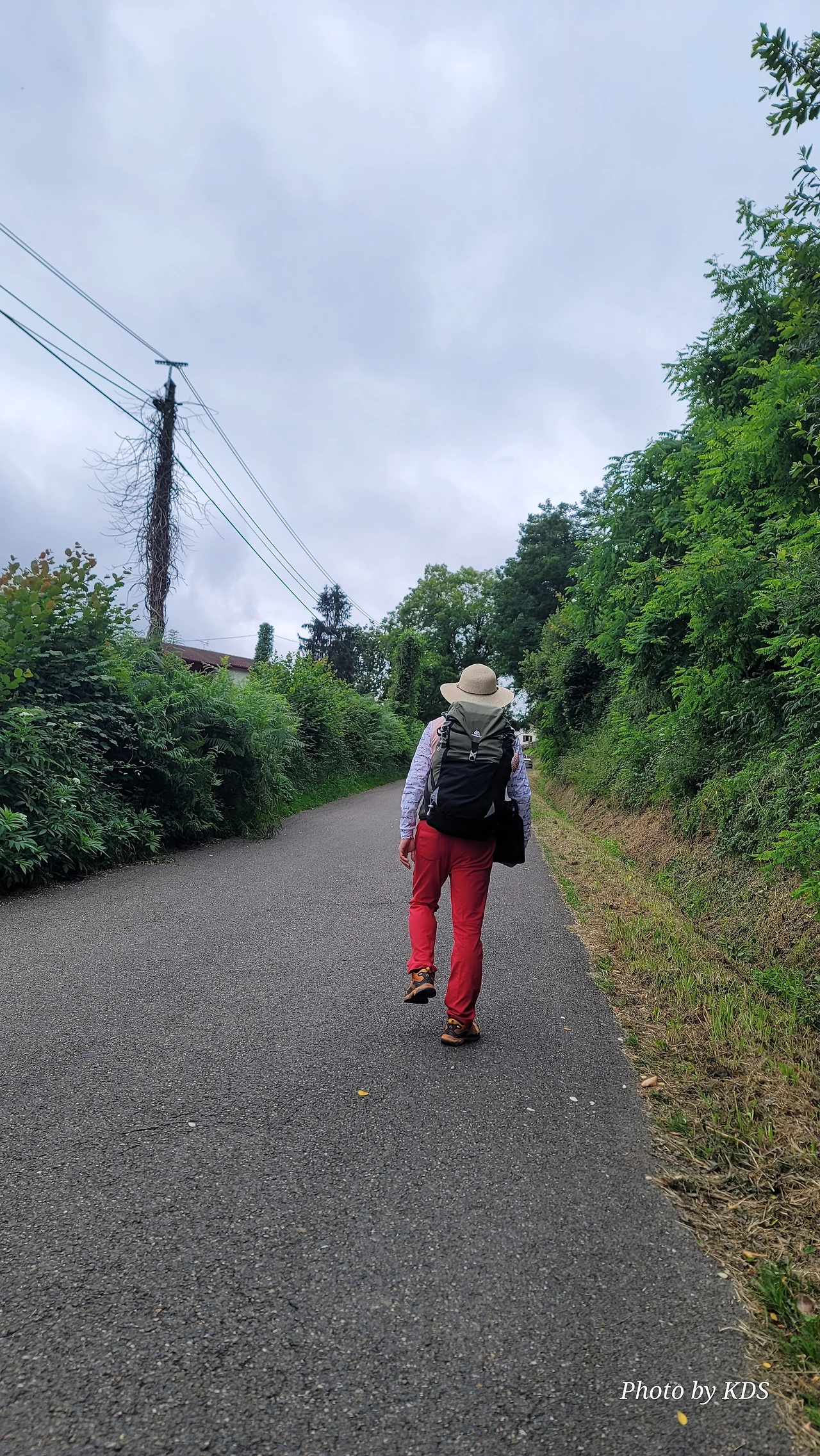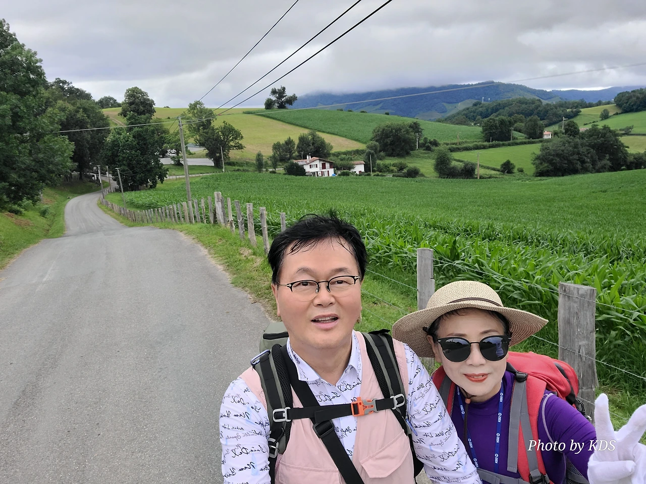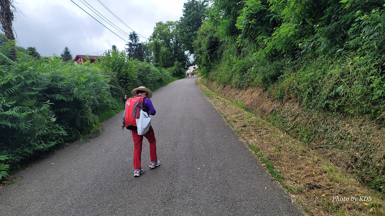 드디어 앞이 보이지 않을 정도로 안개가 자욱하더니 비가 내리기 시작한다. 배낭의 우비 커버를 씌우고, 급히 우산을 꺼내 들고 비를 가려본다. 임시방편으로 가볍고 조그마한 우산을 준비했는데, 나그네의 전신을 가리기엔 턱 없이 부족하다. 날씨가 추운 계절이 아니기에 비를 맞아도 그리 춥지 않고 감기 걸릴 위험도 적다. 피레네가 조선의 과객 금삿갓을 반기는 좋은 징조라 생각하고 걷는다. 서서히 배낭의 무게가 어깨와 다리을 압박하기 시작한다.