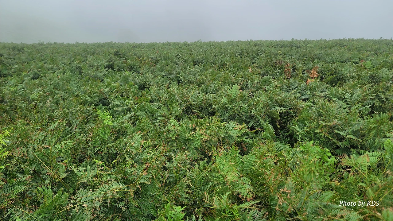 중간중간 입간판으로 도로 표지판이 있어서 남은 거리를 가늠할 수 있다. 신기하게도 풀들이 대부분 양치식물 즉 우리나라 고사리처럼 생긴 풀들이 평원처럼 깔려있다. 나무는 별로 보이지 않고 그저 넓은 초원이다. 날씨가 점차 어둑어둑해지더니 안개가 끼기 시작한다. 비가 내릴지도 모르겠다.