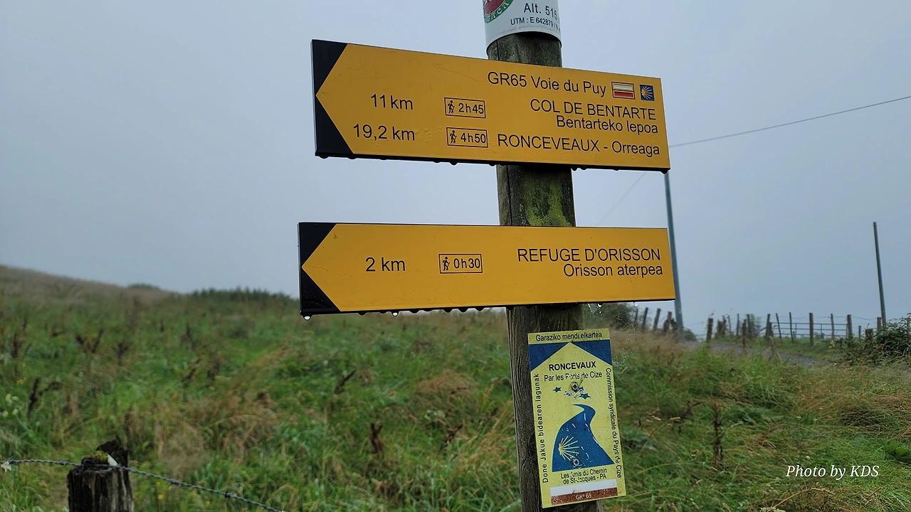 생장 마을의 언덕길을 휘적휘적 걸어 올라오니, 드디어 그 마을의 가장 높은 곳에 있는 마지막 집을 만난다. 생장에서 갈라지는 두 갈래 중 왼쪽의 시세(Cize) 언덕길을 택해야 첫날밤을 보낼 오리손 산장으로 갈 수 있다. 지금부터는 숙소로 예약한 오리손 산장까지 8km를 걸어 올라가야 한다. 그 중간에 5km 지점에 운또 산장이 있고, 또 7km 지점에 까요라 산장이 있다. 어제 야간 버스를 타고 잠도 못 잤기 때문에 오늘은 너무 무리하지 않고 8km만 걷고 산장에서 쉬기로 했다. 오리손 산장은 무조건 사전예약을 해야만 숙박이 가능하다.