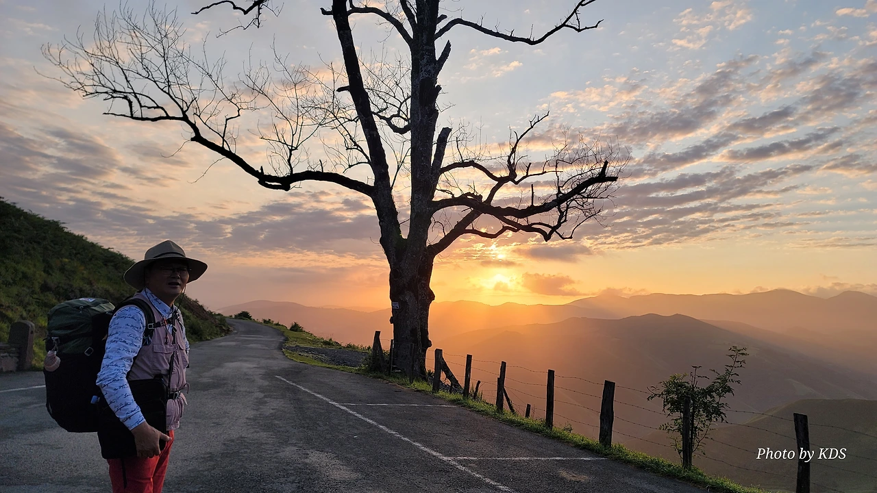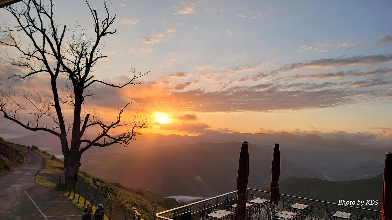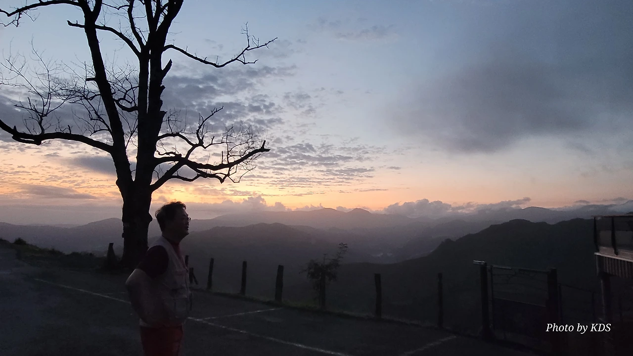 아직 시간상 일출을 보긴 어려운 때였지만 동쪽하늘이 조금씩 붉고 밝은 빛이 든다. 다행히 비는 그치고 구름도 거의 걷힌 하늘이다. 피레네 여신이 서울 촌놈의 등정길을 불쌍히 여겨서 도와주신 모양이다. 새벽 공기가 차가워 쌀쌀하다. 방으로 다시 들어왔다가 한참을 기다려 다시 스마트폰을 챙겨서 나오니까 드디어 일출이 보이기 시작한다.