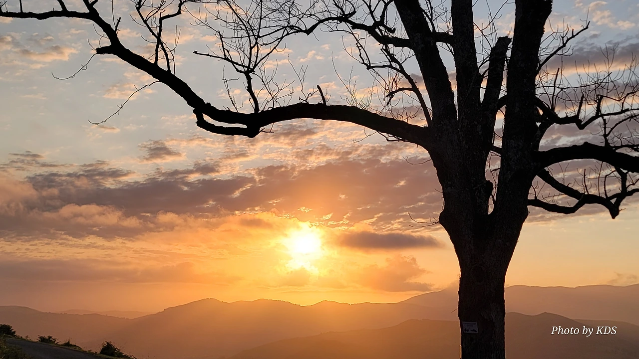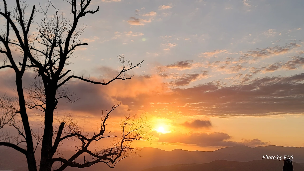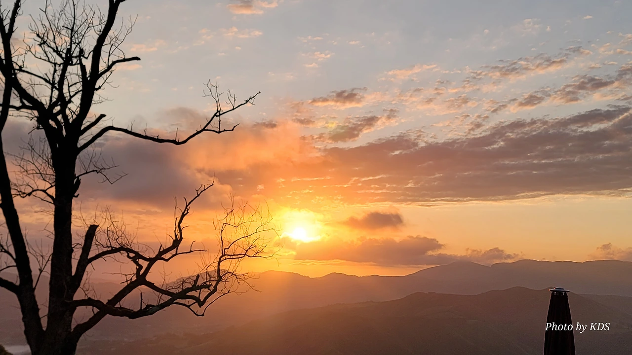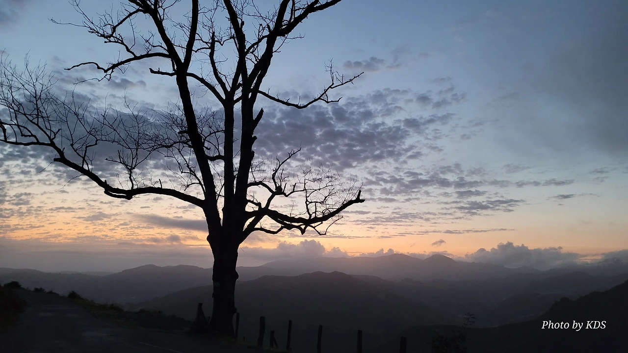 아직 시간상 일출을 보긴 어려운 때였지만 동쪽하늘이 조금씩 붉고 밝은 빛이 든다. 다행히 비는 그치고 구름도 거의 걷힌 하늘이다. 피레네 여신이 서울 촌놈의 등정길을 불쌍히 여겨서 도와주신 모양이다. 새벽 공기가 차가워 쌀쌀하다. 방으로 다시 들어왔다가 한참을 기다려 다시 스마트폰을 챙겨서 나오니까 드디어 일출이 보이기 시작한다.