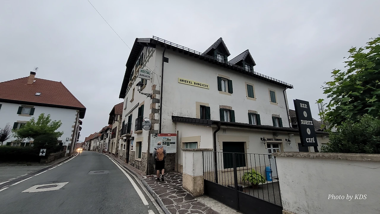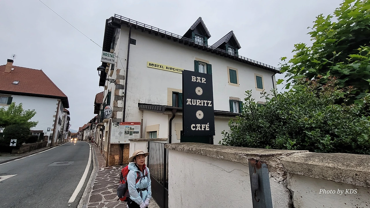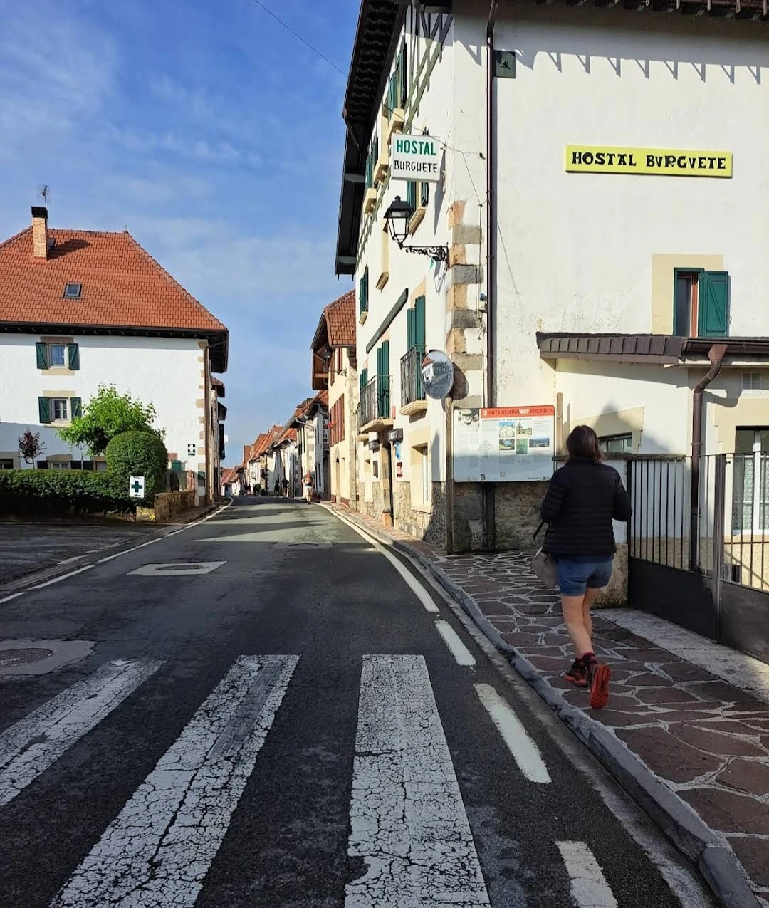 2~3km 정도의 숲길이 끝나고 순례자들은 스페인 중세 왕국인 나바라의 전통 문양을 가지고 있는 붉은색의 커다란 창문과 돌로 만들어진 저택들이 있는 부르게떼 마을을 만나게 된다. 부르게떼 마을은 신비로우면서도 조용하다. 그래서 순례자와 여행자들이 휴식을 취하기에 완벽한 장소로 보인다. 실제 역사적으로도 이곳으로 도시의 번잡함을 피해 머물렀던 유명한 인사들이 한 둘이 아니다. 론세스바예스에서 아침 식사를 하지 않은 순례객들이 주로 이 마을에서 아침을 해결한다. 우리도 여기서 아침을 해결했다. 아침이라야 빵조각에 카페콘레체 즉 우유를 탄 커피가 일반적이다. Leche(레체)가 스페인 말로 우유이다.