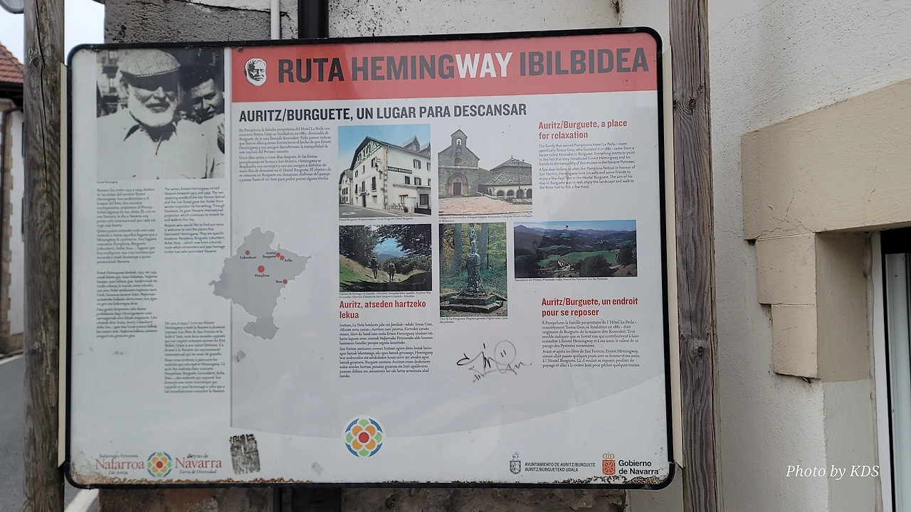 순례자들은 까미노 데 산티아고를 지나면서 길 양 옆으로 늘어선 건물들과 주택들이 있는 부르게떼 마을의 주 거리를 지나게 되는데 헤밍웨이가 묵었던 조그마한 호텔이 눈길을 끈다. 고등학교 때 헤밍웨이 전집을 월부로 사서 읽은 적이 있다. 같은 반의 친구가 아르바이트로 월부 책 장사를 하던 때라서 없는 돈에 도와주기 위해 샀다가 1년 동안 굶어 죽는 줄 알았다. 그 덕에 책값이 아까워서 헤밍웨이를 읽었고, 지금도 헤밍웨이를 좋아한다. 수년 전 플로리다의 키웨스트와 쿠바에 갔을 때 헤밍웨이가 묵었던 곳을 찾아가서 지내기도 했던 것이 아마 그 친구 덕택이리라. 너무 이른 시간에 도착해서 그런지 아직 호텔의 바(Bar)가 문을 열지 않아서 커피 한 잔도 마시지 못하고 지나갈 수밖에 없었다.