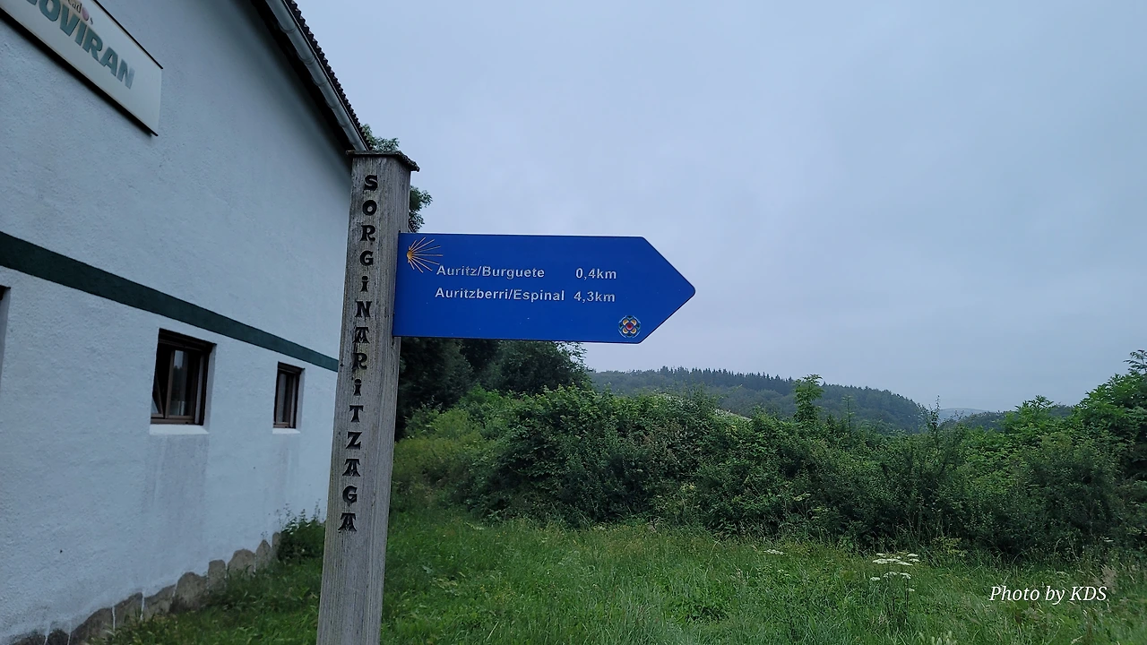 오늘의 여정은 수비리까지 21.5km를 걷는다. 지도상의 거리이고 실제 사진을 찍으면서 우왕좌왕하면 더 긴 거리를 걸어야 할 것이다. 정확히 해발 950m인 론세스바예스를 아침 6시 30분에 출발했다. 높고 깊은 산중이라서 칠월의 이른 아침이지만 제법 쌀쌀한 날씨다. 성당의 공립 알베르게를 나와서 도로에 들어서면 산티아고 까지 790km라는 거리 표지판이 반긴다. 아직 멀고도 험한 여정이 앞에 도사리고 있는 것이다. 처음은 평지이지만 이내 내리막길로 이어지고, 이 숲길은 부르게떼까지 너도밤나무, 떡갈나무, 낙엽송이 우거진 정말 근사한 숲의 터널로 이어져 있다.