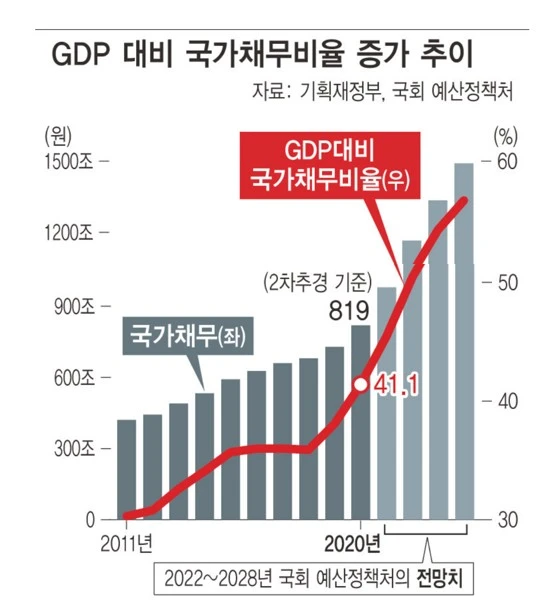 수치상으로 봐서 우리나라가 조금 나은 것으로 보이지만 지금 정치권에서 100조 원 규모의 자영업자 손실보상제와 추가로 제4차 재난지원금의 시행을 논의 중이다. 선거를 앞두고 선심용·인기영합용 무상복지가 더 나올 수가 있다. 그러면 올 말의 국가 부채는 1,100조 원 대에 이르고 국가부채비율도 OECD 평균에 육박할 전망이다. 수치상 미국과 일본이 더 심각하다 하겠지만 그들은 기축통화국이고 일본의 국채는 많은 부분은 국내의 기업과 개인이 보유하고 있어서 우리와 사정이 다르다. 야당 대표 시절 국가부채가 40%를 넘으면 위험하다고 주장하더니 정작 본인이 집권하고부터 나라 빚이 가파른 상승곡선을 그으면서 집권 4년 말에는 60%(연금충당부채 제외)로 전망된다. 미래세대의 등에 무거운 짐을 지워 허리가 휘게 하는 것이다. 더욱이 2020년 인구가 전년보다 2.8만 명 감소한 결과를 볼 때 인구절벽(Demographic Cliff)과 부채함정(Debt Trap)이 동시 다발로 올까 두렵다. 가계부채나 국가부채에 있어서 가장 치명적인 게 무엇인가? 바로 금리이다. 금리가 오르면 무너지지 않은 장사가 없다. 더구나 금리 수준을 주도적으로 결정할 권리가 없는 우리나라는 바람 앞의 등불일 수밖에 없다. 따라서 정치권에서 미래에 대한 아무 생각 없이, 선거용 인기 영합적 정책이나 입법 활동은 마구잡이로 시행하는 것을 적극 근절(根絶)하여야 할 것이다. 독일의 앙겔라 메르켈(Angela Merkel) 총리를 보라. 독일이 코로나19로 293조 원의 나라 빚을 냈지만 그는 2023년부터 이를 갚는 계획을 국민들께 분명하게 밝혔다. 그가 15년 이상 장기 집권한 이유이다. 모든 정책과 입법은 철저하게 수입 대책을 동시에 강구하는 페이고(PayGo : Pay as you go) 제도와 실명제(實名制)를 실시하여야 할 것이다.