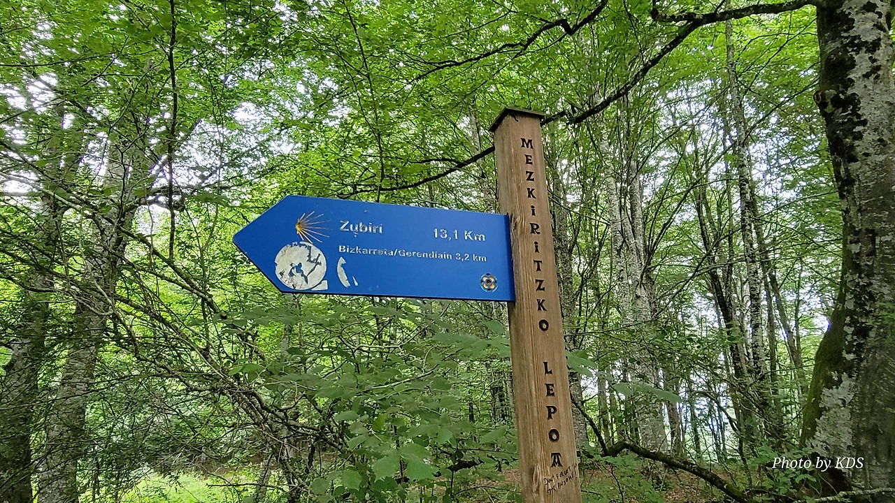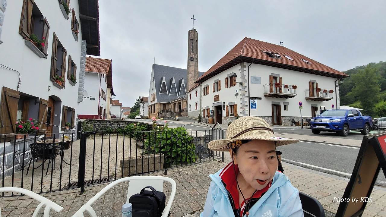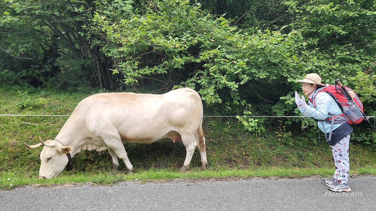 피레네의 프랑스 목장과 다른 게 있다면, 프랑스 농장들의 동물(소, 말, 양)들은 농장 밖으로 몰려나와서 아스팔트 도로에 대변을 무더기로 보곤 하는데, 스페인 농장은 동물들은 그런 경우가 없었다. 그래서 순례객이 걷는 길에서 똥을 밟을 일이 없는 것이다. 우연히 소 한 마리가 농장을 뛰쳐나와서 길섶에서 열심히 아침 식사로 풀을 뜯고 있다.