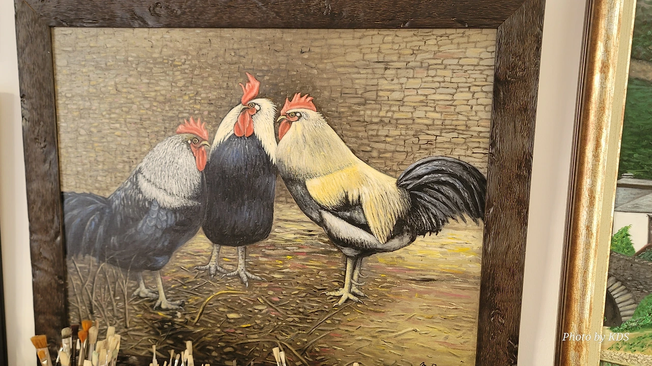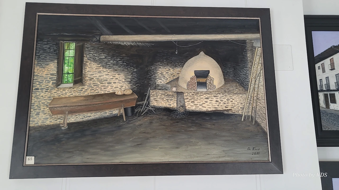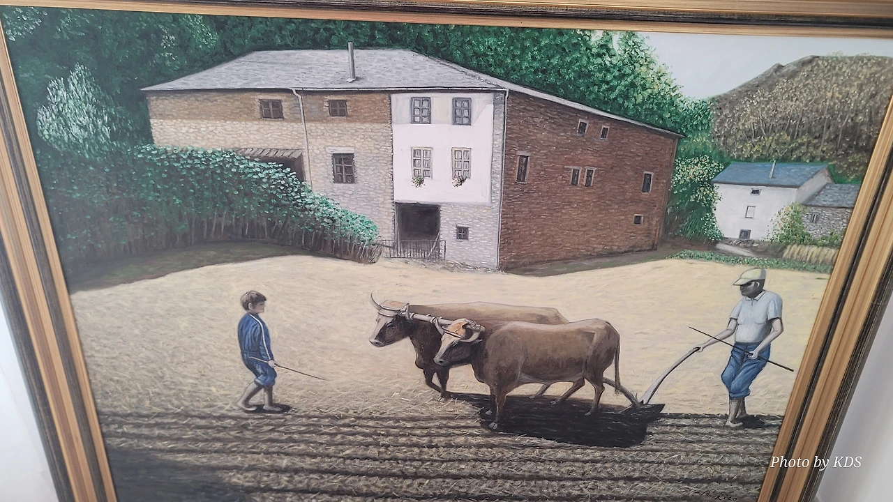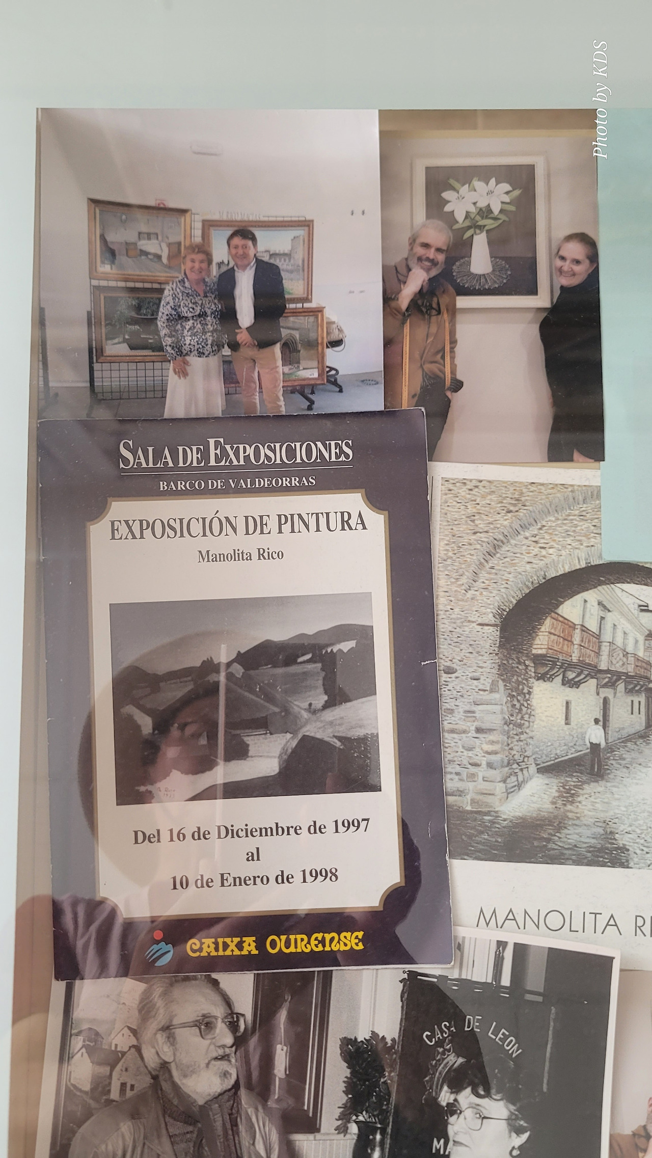 비야프랑카 델 비에르조(Villafranca del Bierzo)에 도착하여 숙소를 잡은 후에 마을을 둘러보다가 우연히 아담한 화실을 발견하고 그곳으로 들어갔다. 화가는 이 마을 출신으로 마놀리따 리꼬(Manolita Roco)로 주로 유화를 즐겨 그린다. 이 마을에서 독학으로 50년 이상의 경력을 쌓은 화가로 마드리드, 폰페라다, 이곳 등지에서 수 차례 개인전을 개최한 경력을 가지고 있었다. 그녀는 남편과 한가롭게 앉아서 그리다가 쉬고, 쉬다가 그리고 하는 작업을 매일 이어간다고 한다. 화실의 전체적인 큐레이터는 그녀의 달이 담당한다고 한다. 본인 스스로 가장 강점이 있고 좋은 작품을 꼽으라고 하자, 시골 마당에서 놀고 있는 닭들을 그리는 것 좋아하고 그 작품이 가장 본인 마음에 뛰어나다고 생각한단다. 다른 정물화도 있었지만 닭이나 오리 등 새들의 그림이 많은 분포이다. 그림도 보고 화가의 이야기도 듣고, 차 한잔도 얻어 마시면서 순례길의 피로를 풀면서 문화생활을 만끽한 시간이었다.