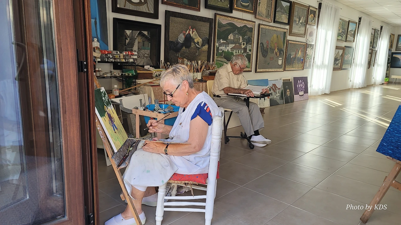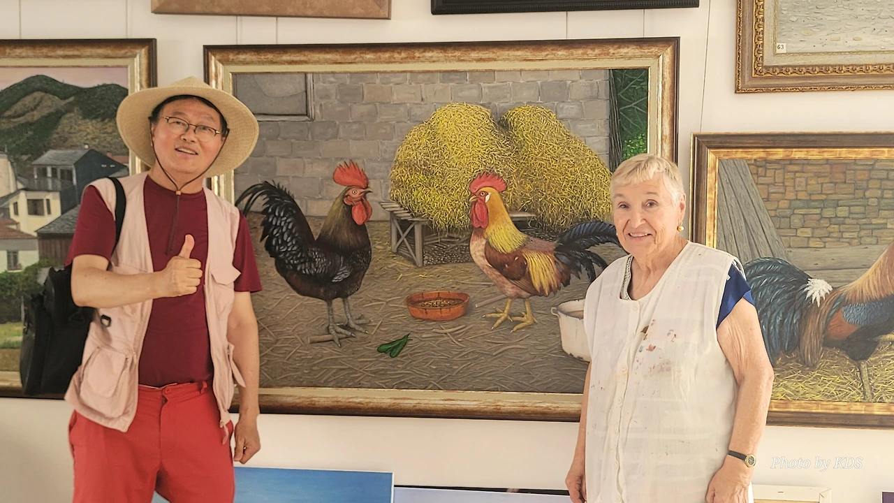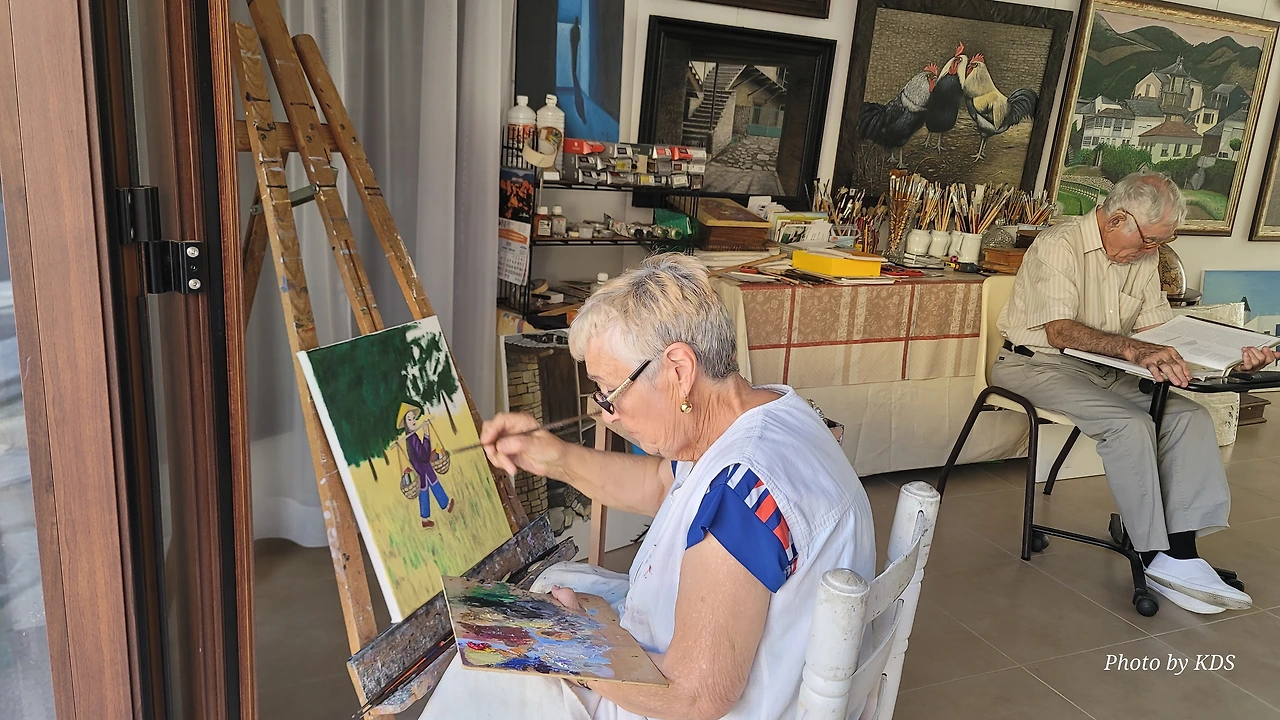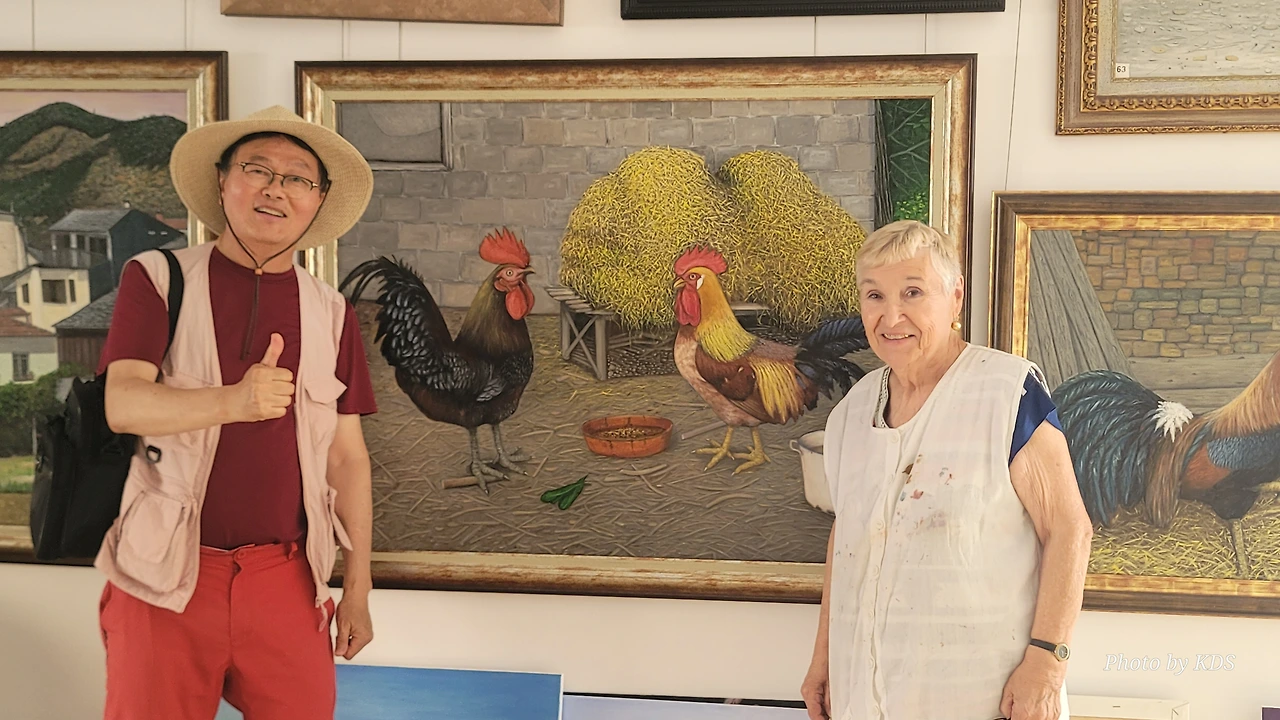 비야프랑카 델 비에르조(Villafranca del Bierzo)에 도착하여 숙소를 잡은 후에 마을을 둘러보다가 우연히 아담한 화실을 발견하고 그곳으로 들어갔다. 화가는 이 마을 출신으로 마놀리따 리꼬(Manolita Roco)로 주로 유화를 즐겨 그린다. 이 마을에서 독학으로 50년 이상의 경력을 쌓은 화가로 마드리드, 폰페라다, 이곳 등지에서 수 차례 개인전을 개최한 경력을 가지고 있었다. 그녀는 남편과 한가롭게 앉아서 그리다가 쉬고, 쉬다가 그리고 하는 작업을 매일 이어간다고 한다. 화실의 전체적인 큐레이터는 그녀의 달이 담당한다고 한다. 본인 스스로 가장 강점이 있고 좋은 작품을 꼽으라고 하자, 시골 마당에서 놀고 있는 닭들을 그리는 것 좋아하고 그 작품이 가장 본인 마음에 뛰어나다고 생각한단다. 다른 정물화도 있었지만 닭이나 오리 등 새들의 그림이 많은 분포이다. 그림도 보고 화가의 이야기도 듣고, 차 한잔도 얻어 마시면서 순례길의 피로를 풀면서 문화생활을 만끽한 시간이었다.