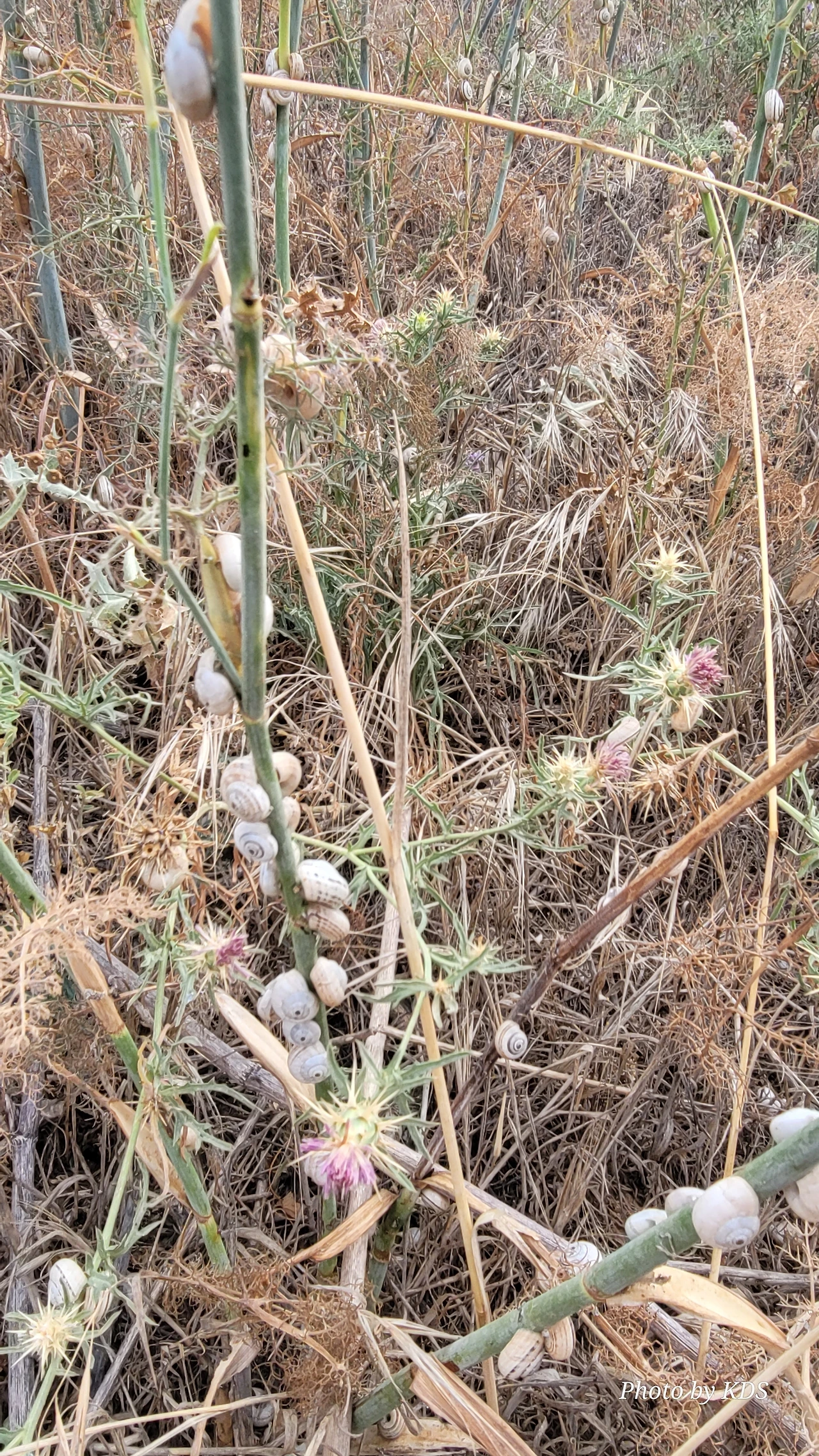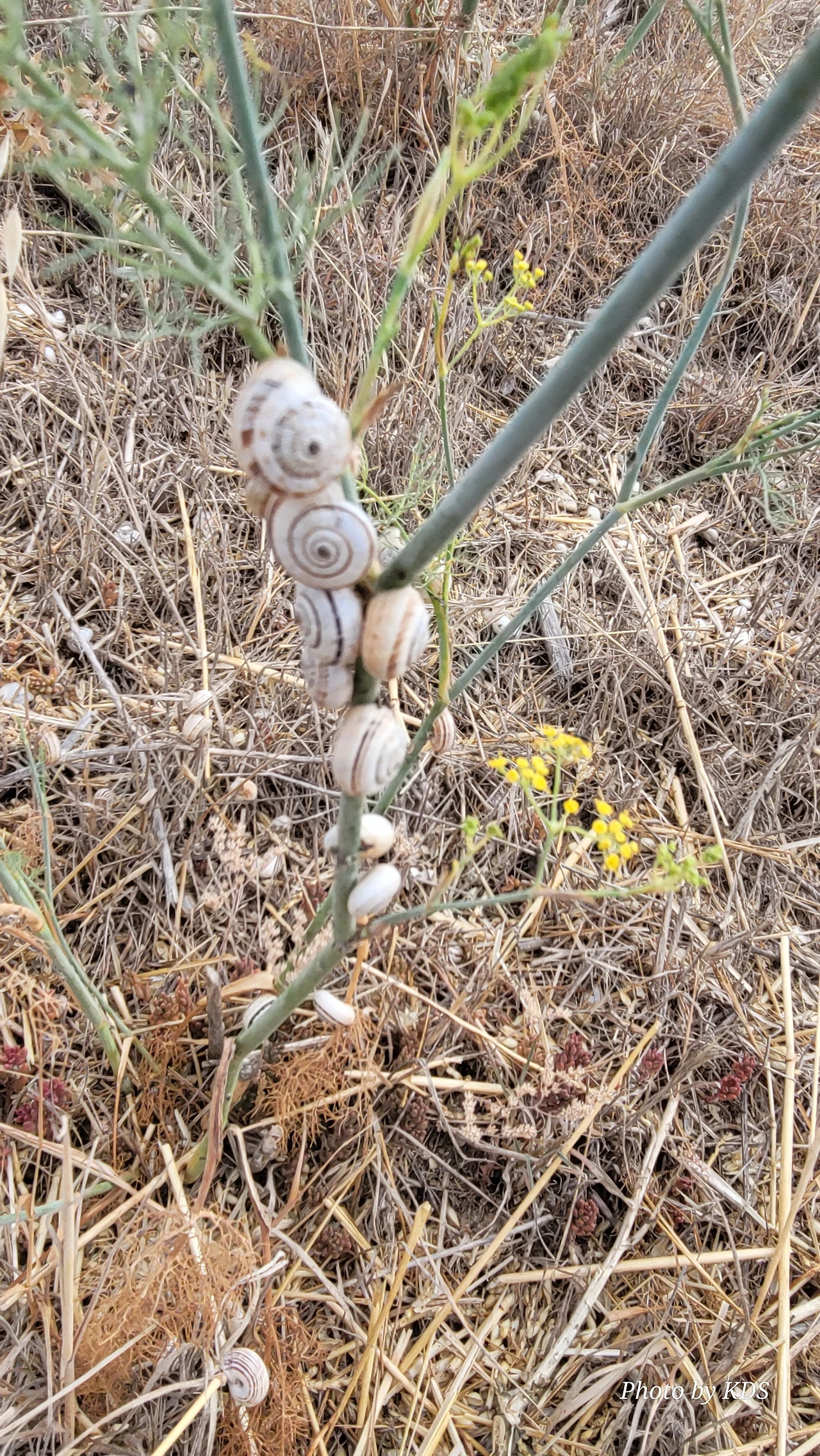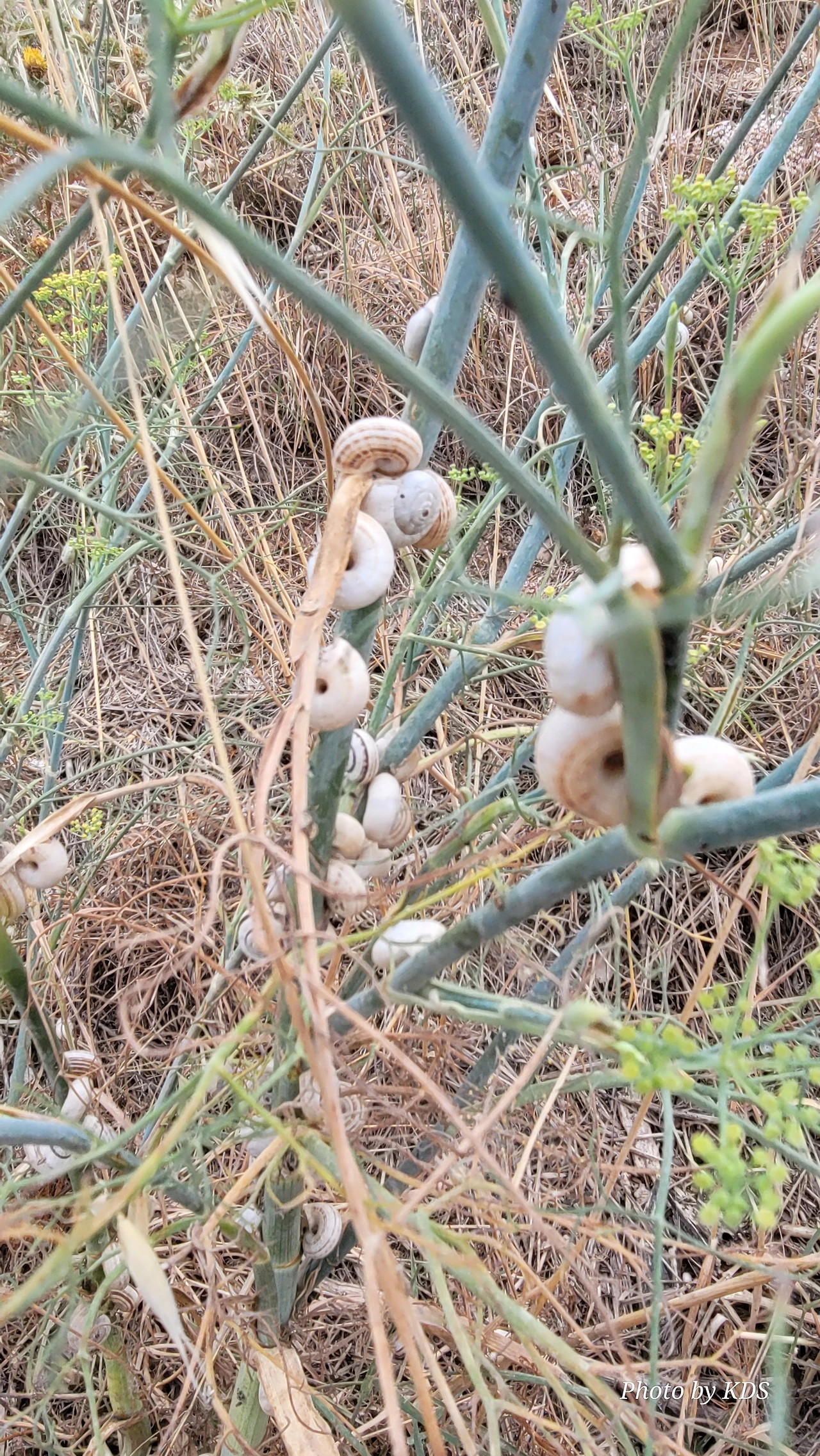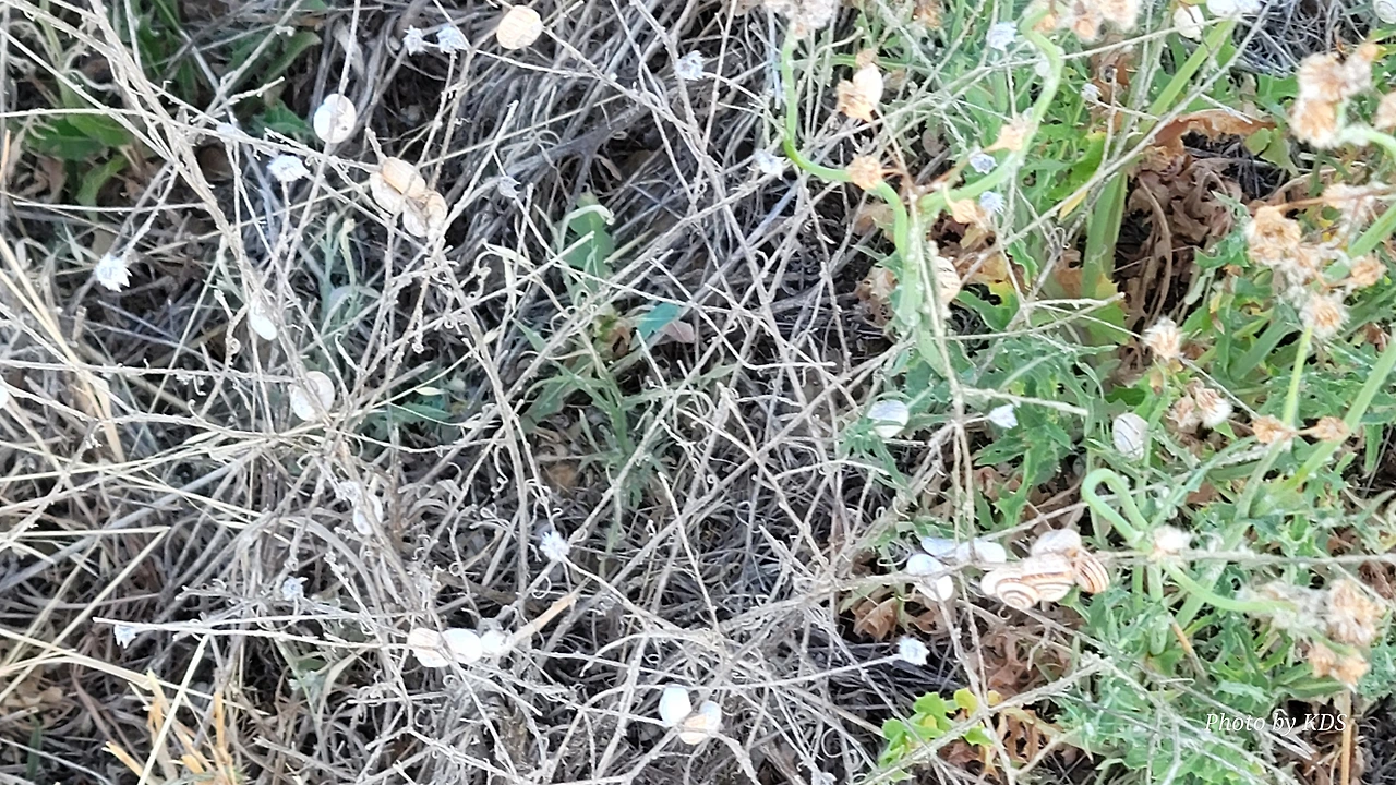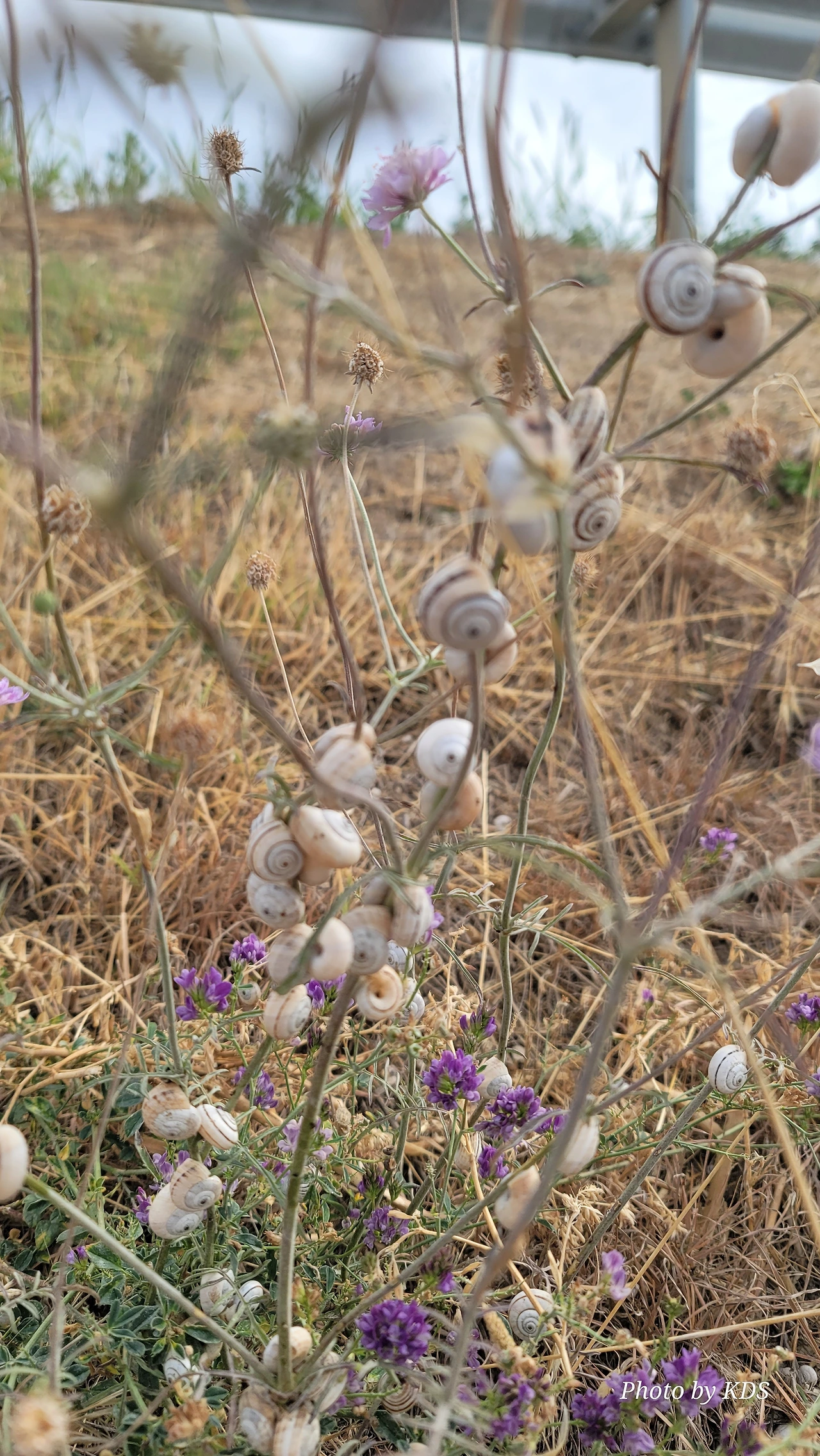 산티아고 순례길을 걸으면서 이런저런 상념에 젖어 걸을 때도 있지만 아무런 생각도 없이 그냥 스쳐 지나가는 사물들을 관찰할 경우도 많다. 이번의 글도 바로 그런 글의 한 종류이다. 달팽이꽃이란 식물은 아마 없을 거다. 조선 과객 금삿갓이 임의로 붙인 이름이다. 순례길을 걸으면서 몇 번인가 마주친 달팽이들에 대한 이야기이다. 한 여름의 뙤약볕을 받은 순례길의 바닥을 힘겹게 천천히 기어가는 달팽이도 있는 반면에 길가의 꽃이 핀 식물들에 옹기종기 올라가서 붙어 있는 달팽이가 더 많았다. 처음에 자세히 보지 않고 그냥 스쳐 지나갔으면 이게 달팽이인지 모르고 그냥 처음 보는 종류의 꽃이 피었다고 생각하기 쉽다. 조금만 관심을 가지고 자세히 보면 꽃이 아니고 바로 달팽이들이다. 달팽이 크기나 꽃의 크기가 비슷하여서 잘 못 알아볼 수 있다. 달팽이들이 일종의 보호색을 발현하여 포식자로부터 자기 몸을 보호하기 위한 방편인지는 알 수가 없다. 하지만 어떤 곳은 식물들이 건조하여 모두 말라죽었는데도 달팽이들은 그 식물에 달라붙어 있는데, 죽었는지 살았는지 꼼짝도 하지 않는다.