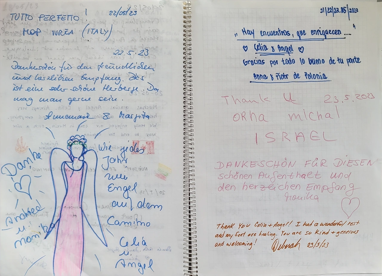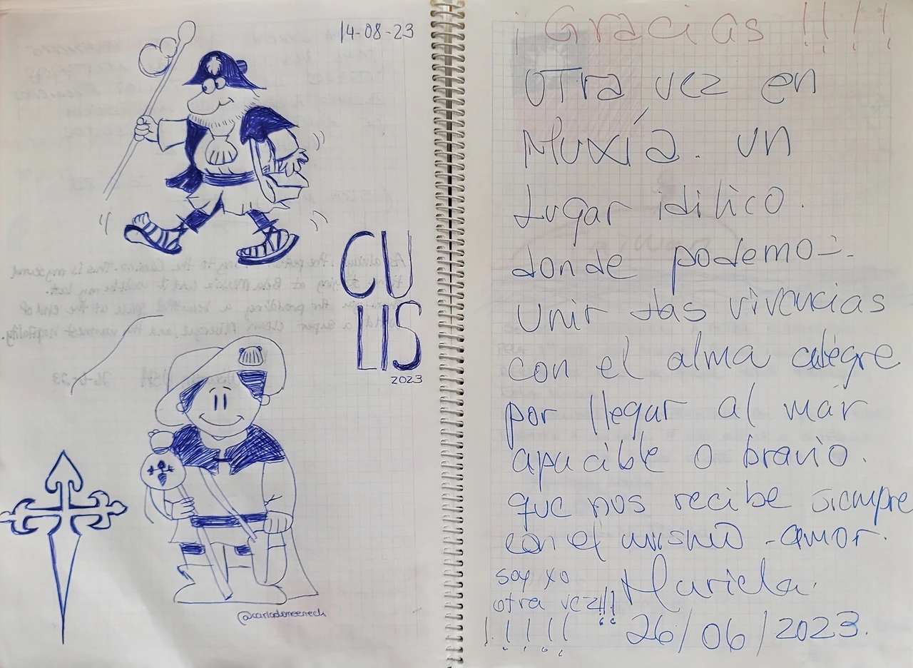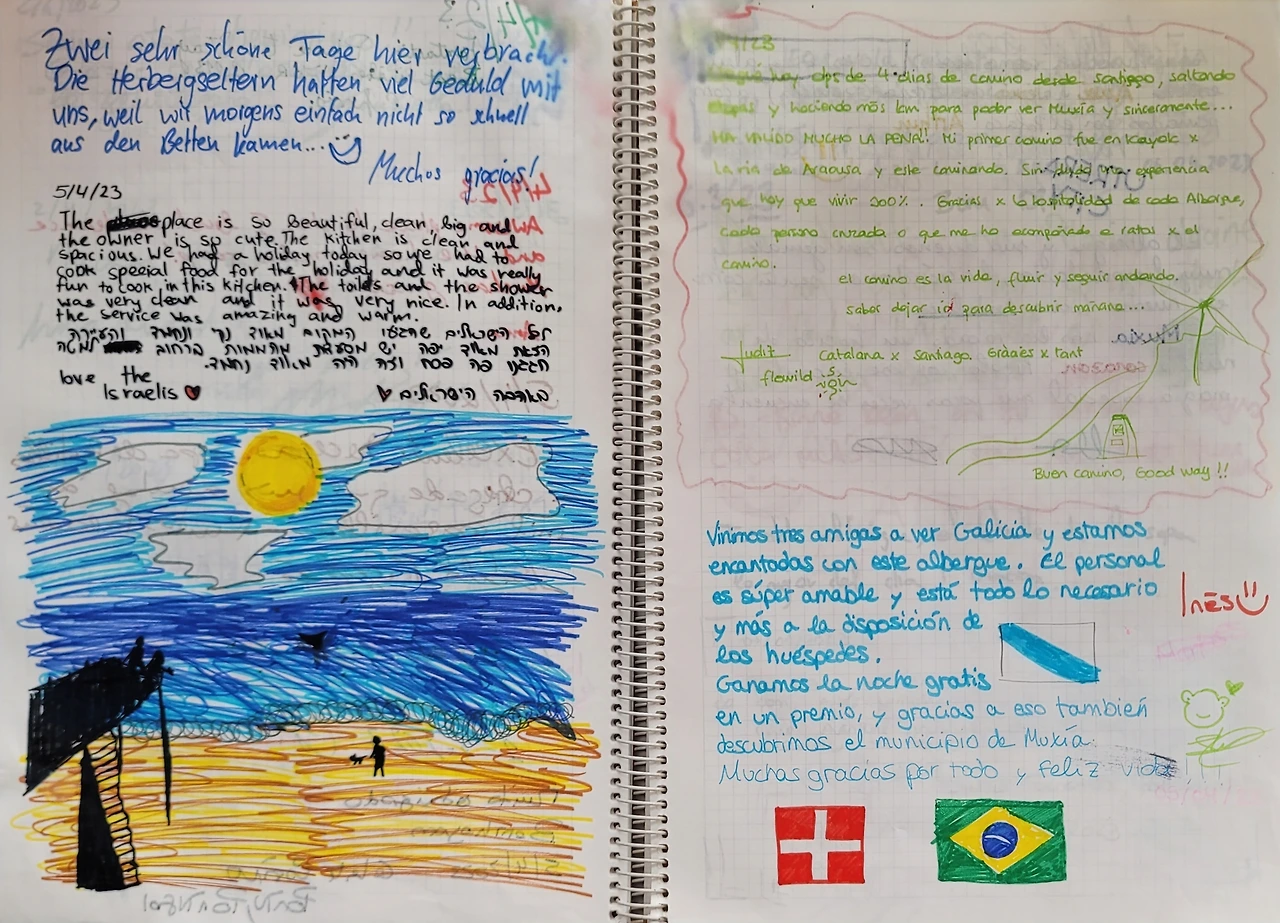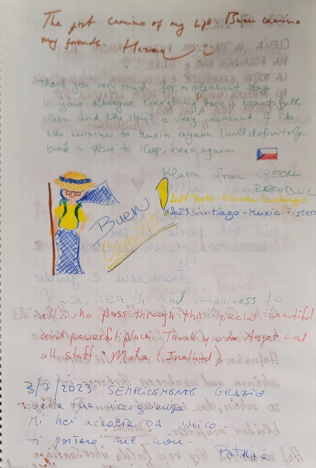 인간이 자기의 생각이나 감정을 나타내는 수단에는 얼굴의 표정이나 몸의 제스처 같은 것이 있을 수 있지만, 가장 효율적인 것이 말하기와 쓰기일 것이다. 문명의 이기가 발명되기 이전 옛날에는 말은 일회성으로 입 밖에 나오는 순간 사라져 버렸다. 그러나 글은 기록성으로 시간과 공간을 극복하여 전달되고 보존된다. 물론 요즘이야 과학의 도움으로 말의 기록과 전달도 가능하니까 별문제이지만. 산티아고 순례길을 걸으면서 길 가에 각종 낙서나 기록을 무수히 볼 수 있다. 자기가 여기를 지나갔다는 기록, 이곳에 왔었다는 기록이 주를 이루고, 더러는 낙서에 가까운 것들도 많다.