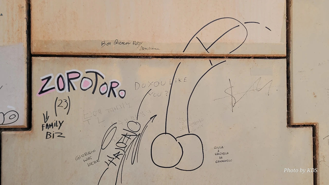 그래서 산티아고 순례길 옆의 가로수나 조형물의 벽면에 마구 낙서하거나 생채기를 내서 써놓은 것들을 보면 현생 인류는 라틴어로 말해서 <호모 스크리벤스(Homo Scribens)> 즉 "기록하는 인간"이라고 부를 수 있다. 기록한다고 해서 남이 불러 주는 것을 받아쓰거나 남의 것을 베껴서 쓰는 것이 아니라 자기의 생각을 쓰는 인간이다. 자기의 생각이나 흔적을 남기고 싶어서 기록하는 인간이다. 하지만 이런 단편적인 쓰기나 기록은 다른 사람과의 소통이나 공감을 이룰 수가 없다. 길가의 나무나 벽면이나 담벼락에 자기 이름을 기록하거나 자기 생각을 기록해서 얼마 큼의 의사를 소통할 수 있겠는가. 괜히 뒤에 와서 보는 사람의 눈살만 찌푸리게 만드는 것이다. 기록과 낙서는 수준이나 격(格)의 차이가 있는 것이다. 그래서 기록이 아니라 떨어진 글자인 낙서(落書)인 것이다. 격이 떨어지고, 수준이 땅에 떨어진 글인 것이다. 낙서라는 용어는 원래 문서에 있어야 할 글자가 빠진 것을 뜻했고, 필자가 아는 바로는 일본의 "라쿠쇼(落書)"가 오래된 기원이 아닐까 한다. 14세기 시절부터 이 용어를 썼다고 한다. 서양에서는 그라피티(Graffitti)라고 해서 스프레이 같은 것으로 공공기물에 마구 낙서를 하는 것을 볼 수 있다. 이것도 하나의 전위 예술로 취급되는 경향이 일정 부분 있어서 우리네 시각으로는 영 마땅하지가 않다. 기록도 좋지만 다른 사람들의 눈도 좀 신경 써 주었으면 좋겠다.