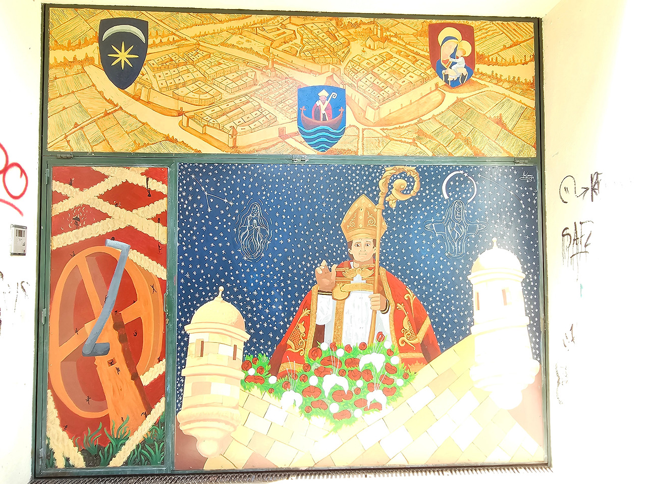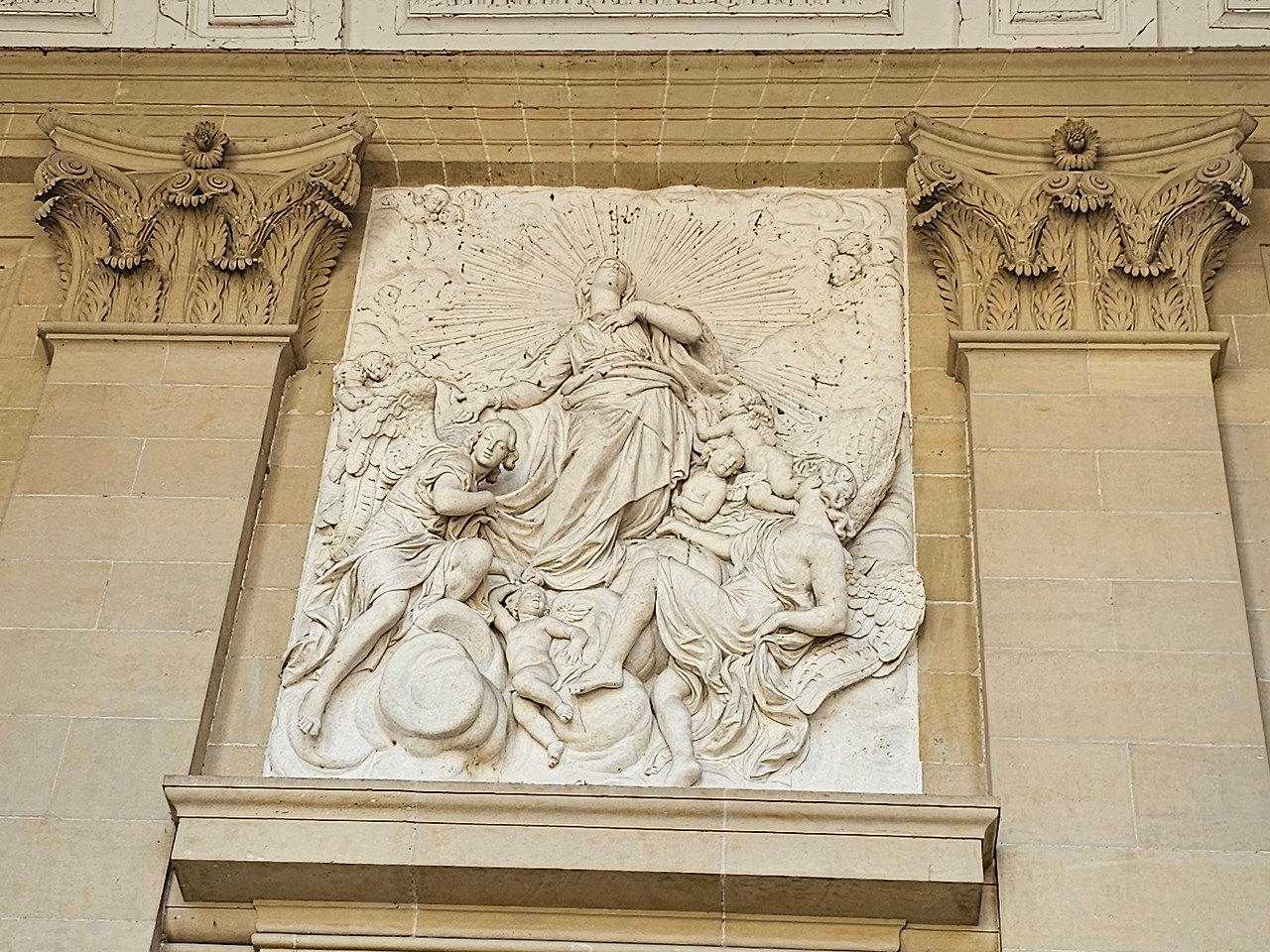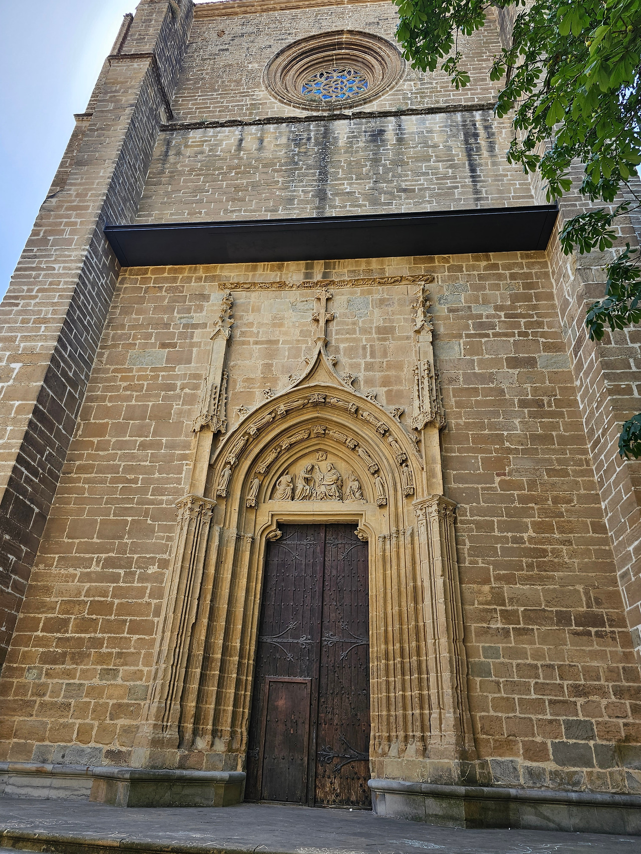 성당에서부터 회랑으로 가는 입구는 암빠로의 문(Puerta del Amparo)이라고 하며 팀파눔(Tímpano)엔 역동적이고 표현주의적으로 표현된 ‘성모의 영면(La ‘dormición’ de la Virgen)’ 이 있다. 팀파눔에는 성모의 죽음에 대한 이야기가 조각되어 있다. 쁘레시오사의 문(Puerta Preciosa)이라고 부르는 회랑의 다른 문은 오래된 기숙사로 향하는 문이다. 정원의 복도가 있는 공간을 나누는 아케이드가 고딕 양식의 우아함과 수직성이 잘 나타난다. 여러 개의 작은 아치들이 모여 커다란 아치를 이루고, 뾰족한 박공은 회랑의 난간을 지나가도록 건축됐다.