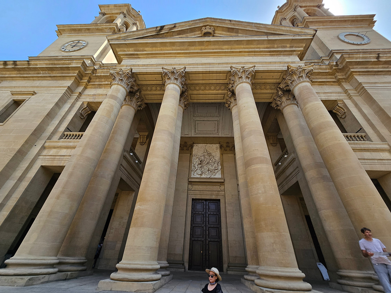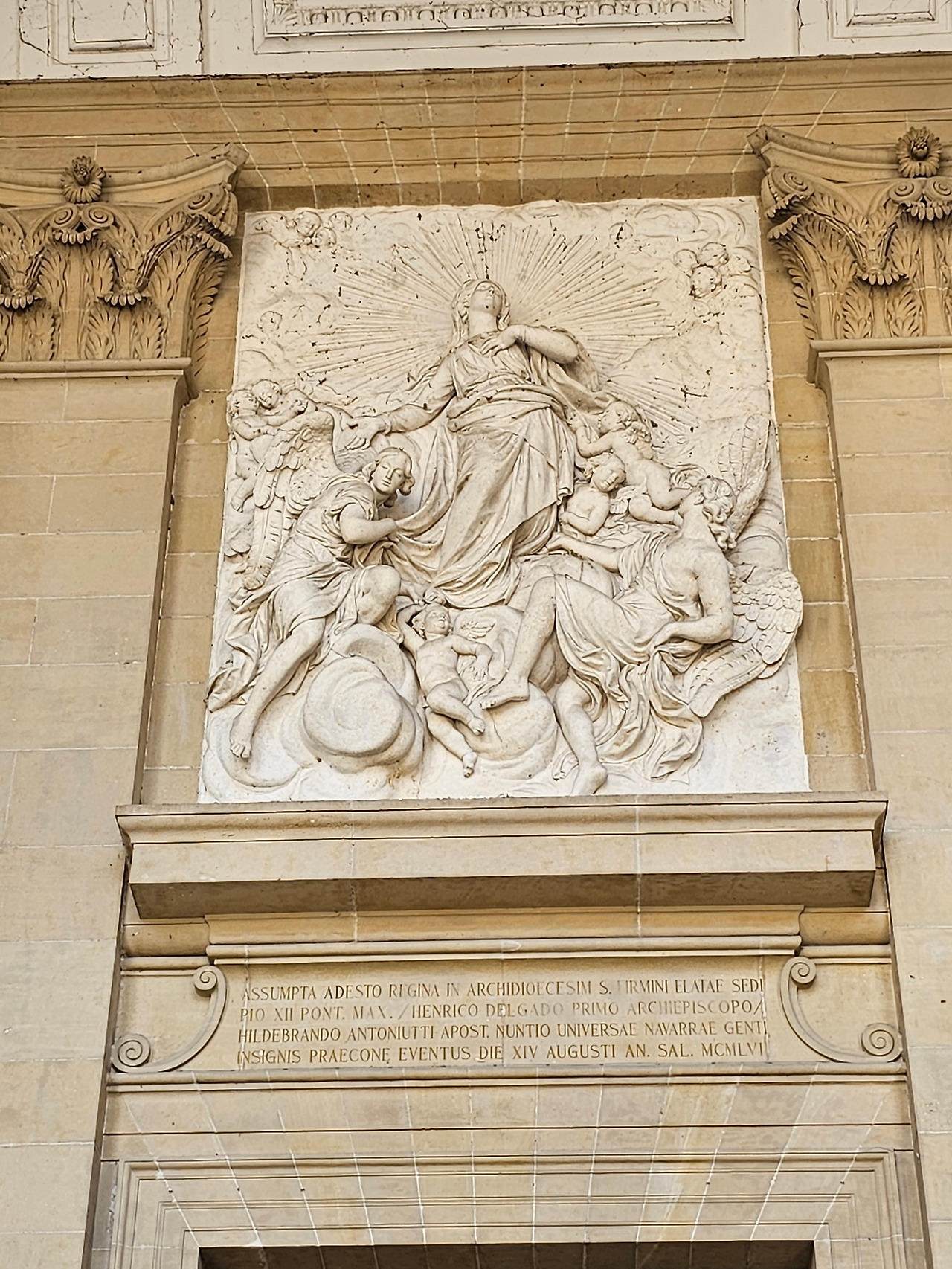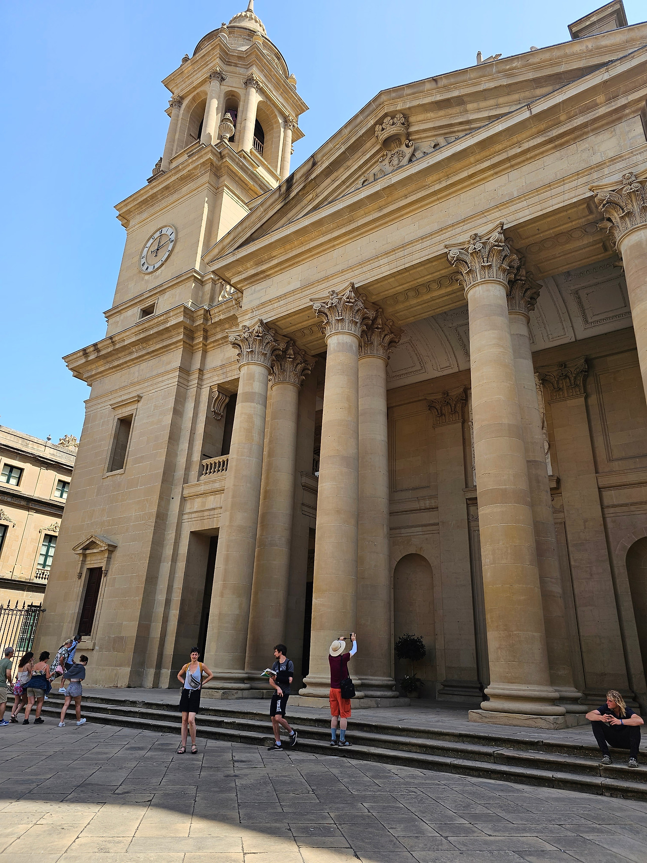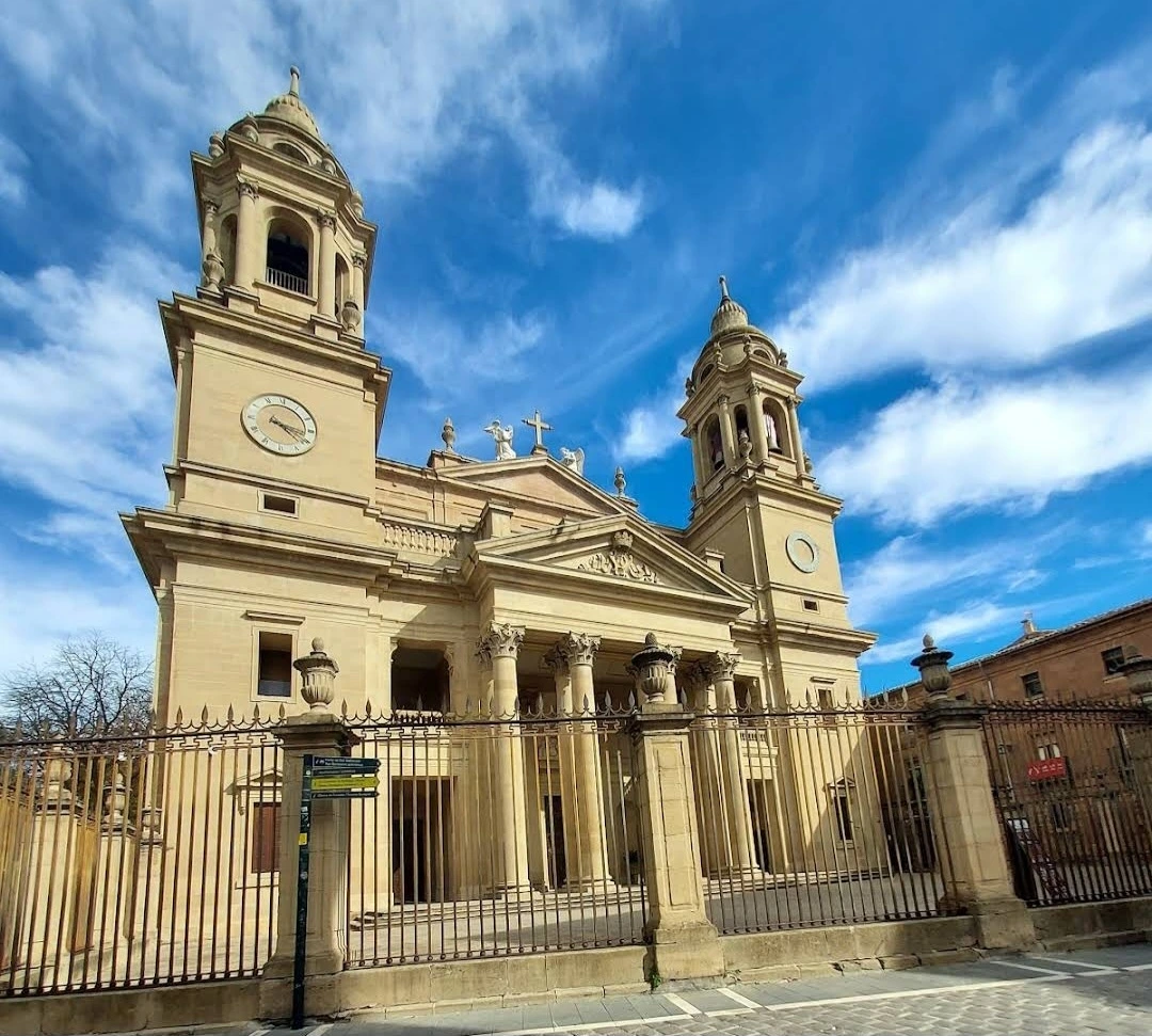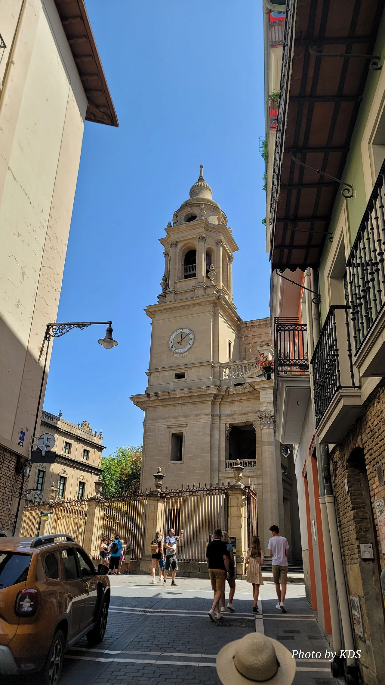 팜플로나 성문 즉 프랑스문 또는 수말라까레기 문 (Portal de Zumalacárregui)을 들어오면 골목길을 올라가서, 왼편으로 꺾어서 조금 위 언덕 쪽으로 더 가면 팜플로나 대성당이 나온다. 마치 우리나라 명동 성당이 명동의 언덕배기에 있듯이. 산따 마리아 대성당(La catedral de Santa María)이라고도 불리는 팜플로나 대성당은 정확히 말해서 팜플로나의 구시가지인 까스꼬 비에호(Casco Viejo)에 있다. 1397년에 건축이 시작되어 1530년에 세워진 고딕 양식의 성당인 이 건축물은 오래된 로마네스크식 성당 위에 추가로 지어졌는데, 정면은 신고전주의 양식이고 프랑스의 영향을 받은 회랑이 정말 아름답다.