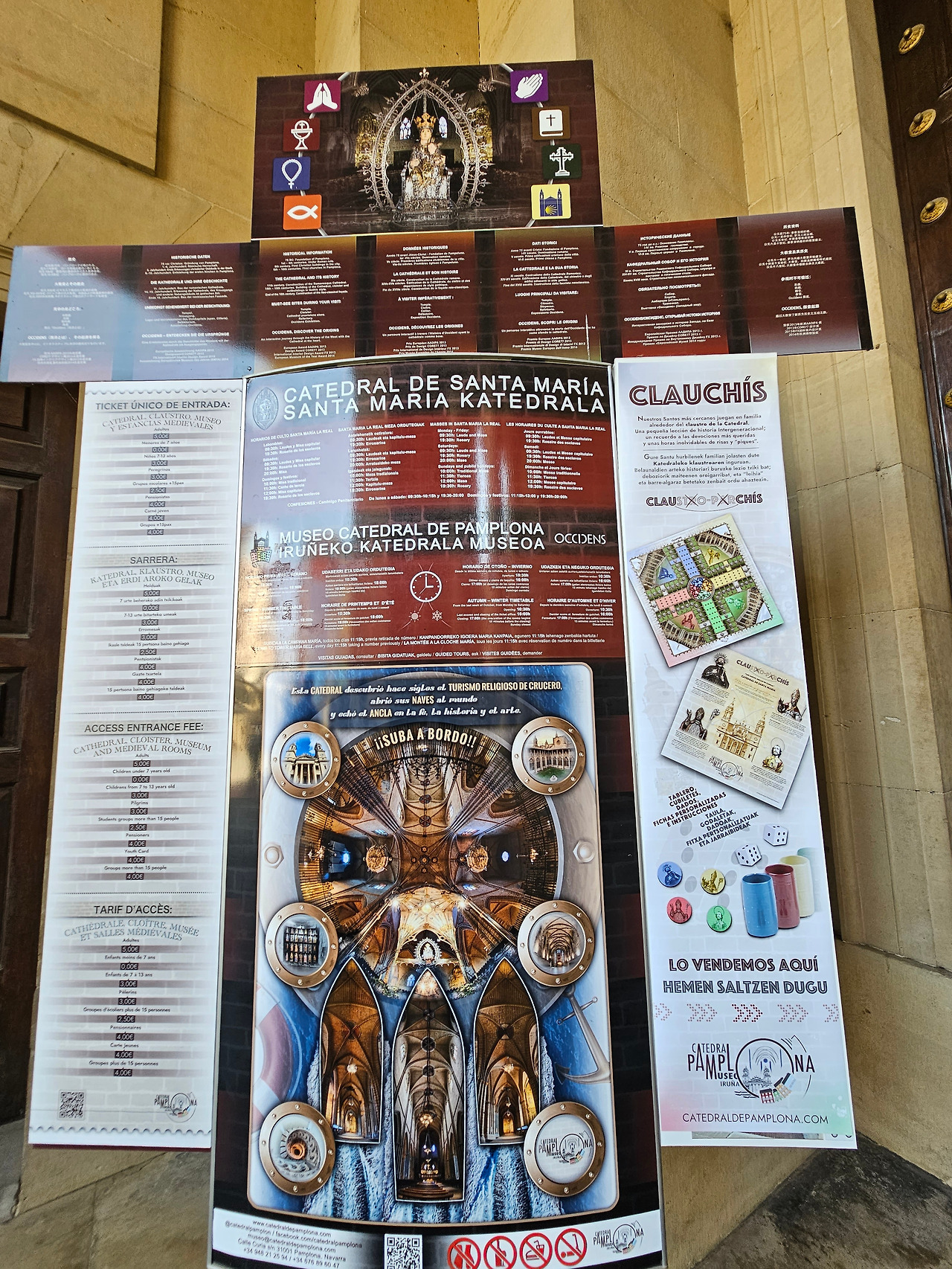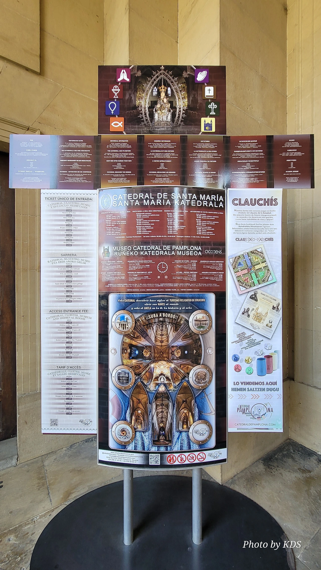 성당의 입장은 시간제로 운영하며 최소 금액의 입장료가 1인당 5유로이다. 과거에 면죄부도 팔았는데 이 정도는 하느님의 은총을 볼 생각이 있는 분들은 기꺼이 내고 구경하셔야 팜플로나에서 본전을 뽑는 거다.