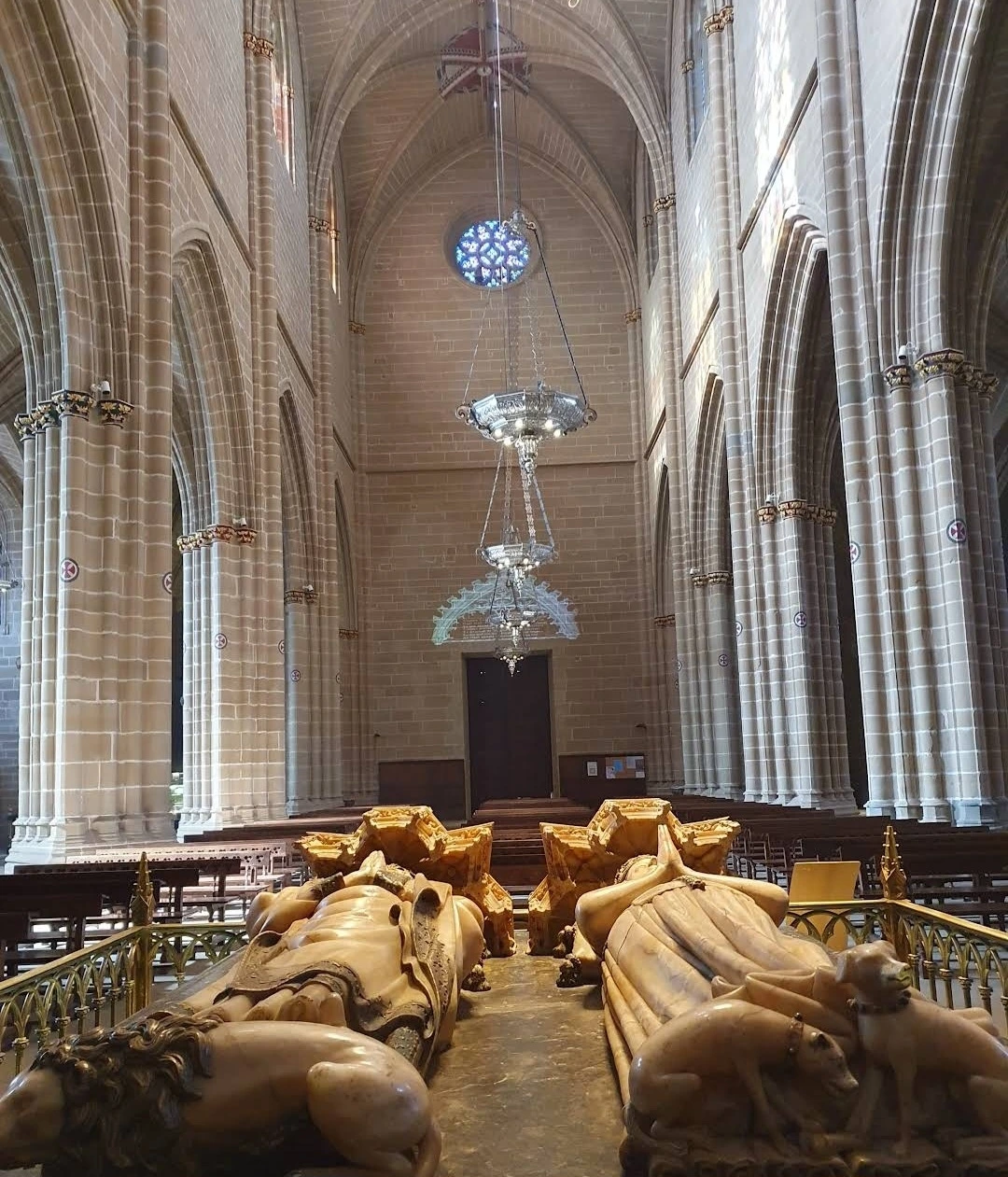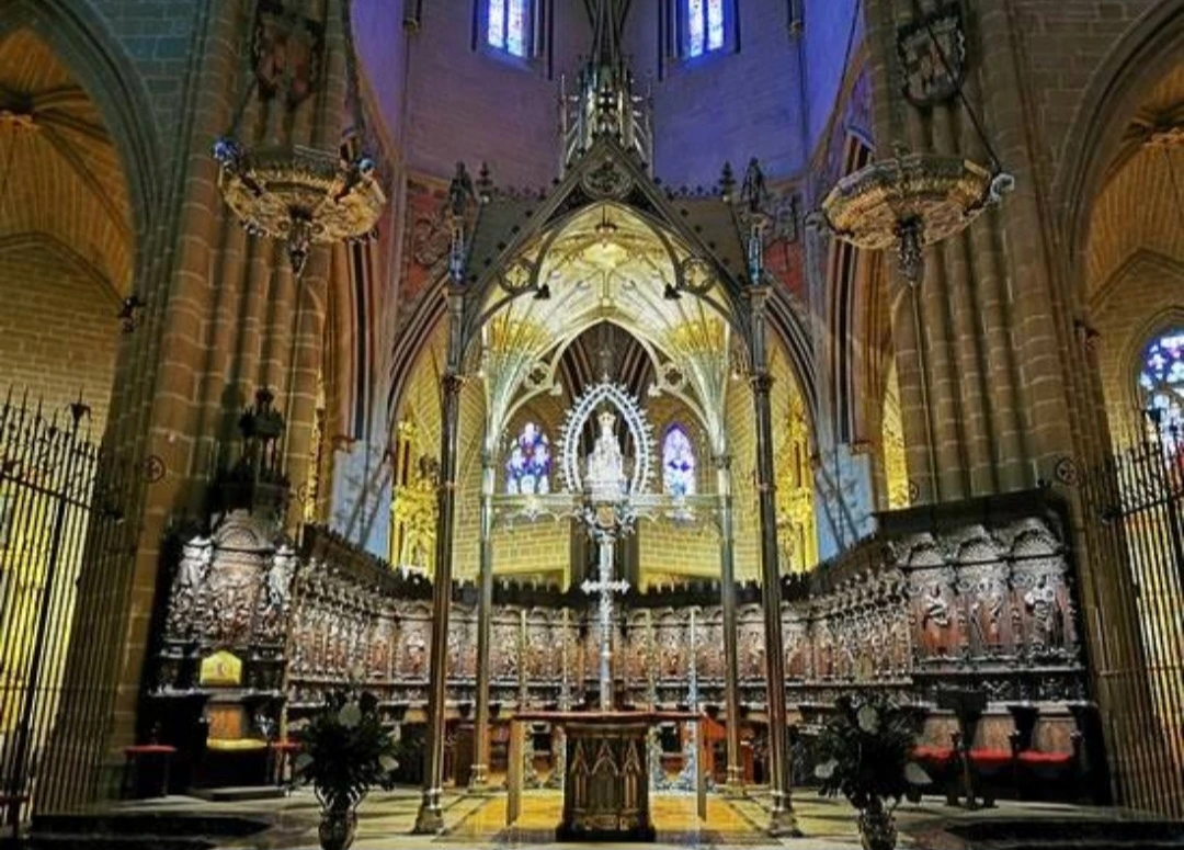 18세기 후반에 대성당 정문이 원래의 프랑스식 고딕 양식보다 수수한 신고전주의 양식으로 교체되었단다. 성당의 평면은 라틴 십자가의 형태이고, 내부에는 로마네스크식 성모상이 있다. 까를로스 3세(Carlos III)와 왕비 레오노르의 환상적인 고딕 양식 무덤이 있다.