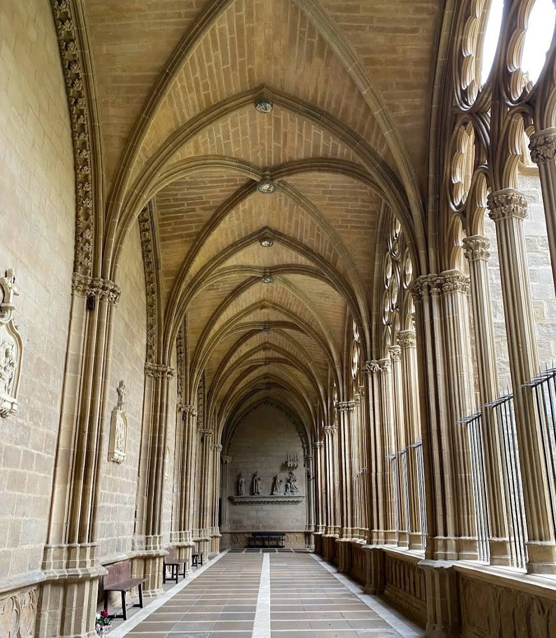그러나 대성당에서 가장 아름다운 부분은 의심할 여지없이 회랑이다. 미술 전문가들에 따르면 팜플로나 대성당의 회랑은 유럽의 고딕 양식 건축물 중에서도 가장 상징적인 곳이라고 한다. 필자가 보기엔 대부분의 성당들은 첨탑에서 다양한 기교를 뽐내는데, 이 성당은 첨탑보다 입구 회랑의 원주가 가장 압권이라고 생각한다. 마치 부석사 무량수전 배흘림기둥처럼 이라고 할까? 조선 과객(過客) 금삿갓의 국뽕적인 비유가 심했나? 독자들은 양해하시라.