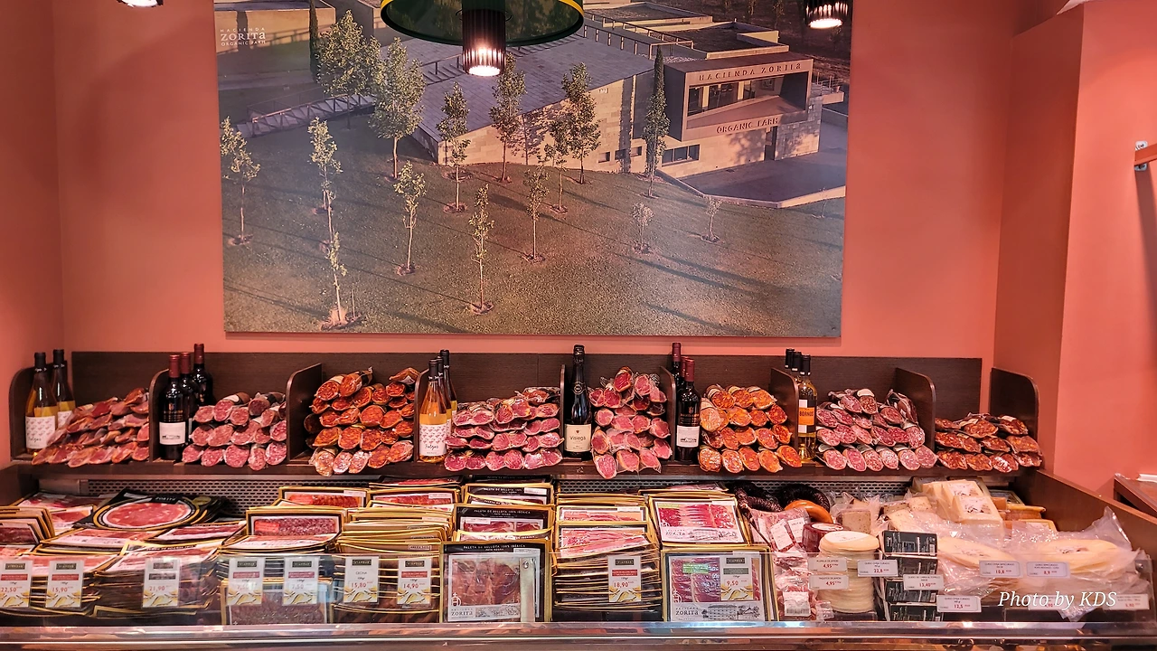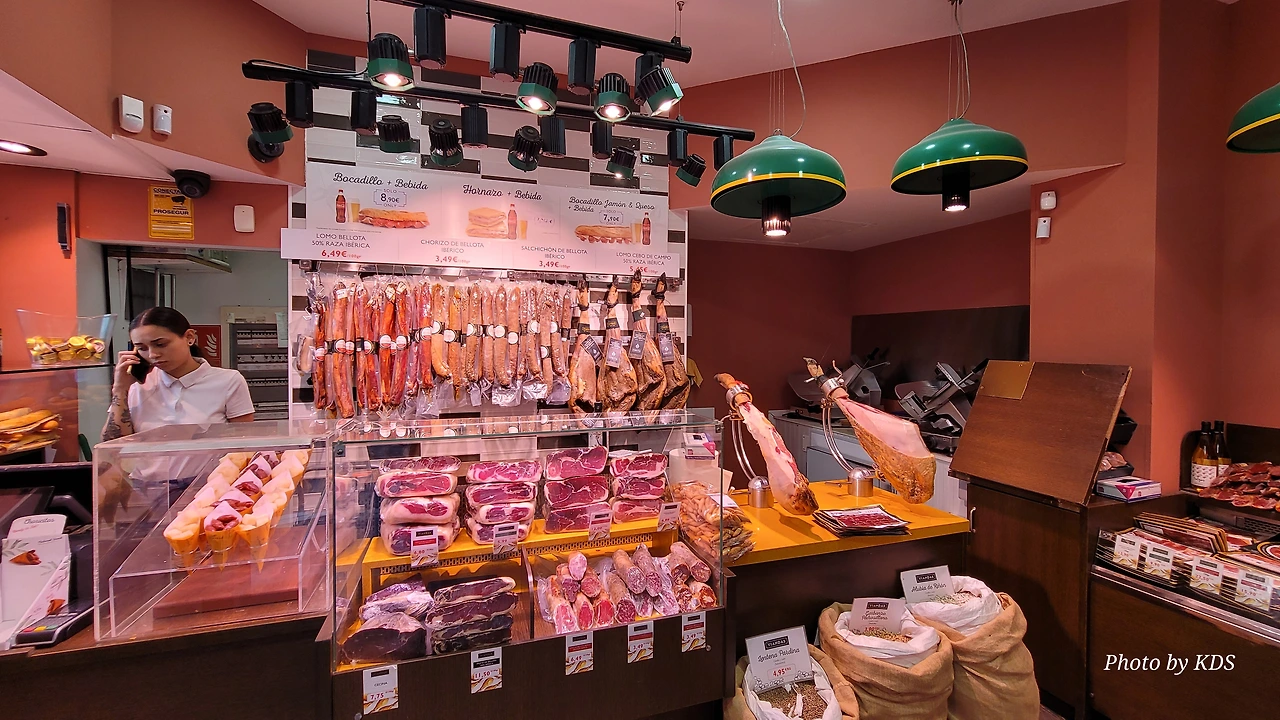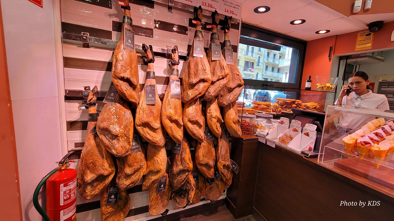 하몽을 걸어놓고 파는 가게도 있다.