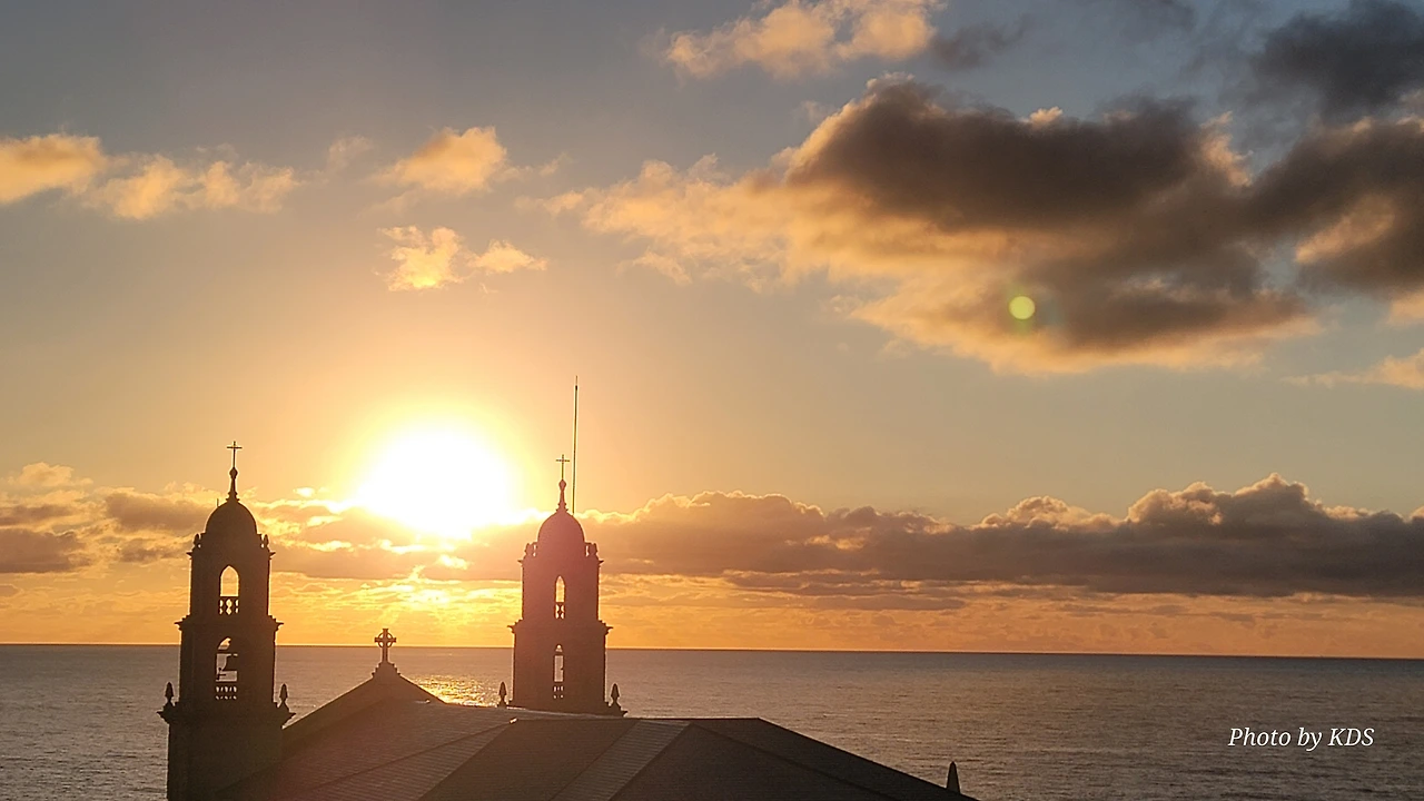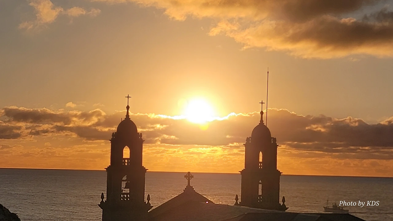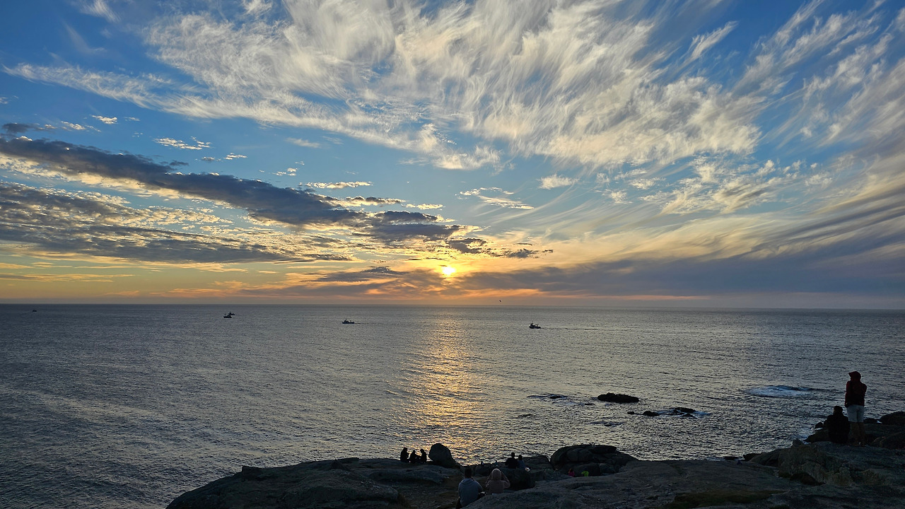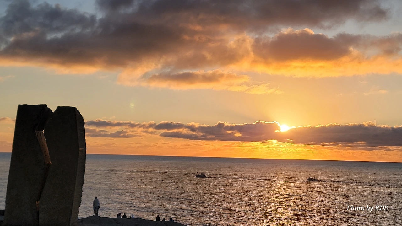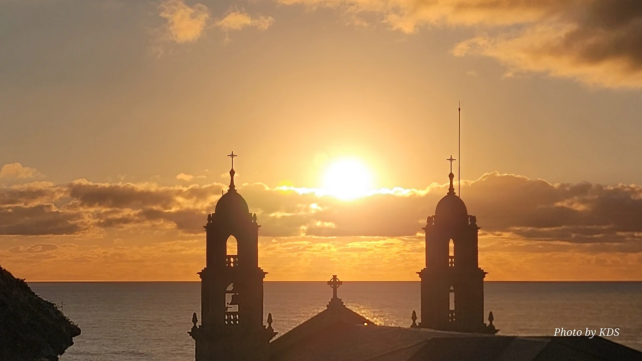 아, 조선과객 금삿갓의 산티아고 순례길 800Km 도보 여행과 산티아고-묵시아 간 90Km 버스여행이 오늘로써 대단원의 막을 내리는 순간이다. 마침 땅끝 마을 해안선 바위 위에서 대서양으로 떨어지는 태양의 모습을 바라보면서 마무리하는 마음속 감회는 도리어 섭섭한 기분이다. 한 달간의 고행이라면 고행인 여정을 끝내고 이곳을 떠나야 하는 것이 어쩌면 아쉬운 마음이다. 교회의 첨탑 사이로 바라보면 저 멀리 바다 위에 구름띠를 두른 하늘 끝에 붉은 태양이 잘 가라고 손짓을 하면서 얼굴을 가리기 시작한다. 저녁을 맞아서 고기잡이를 마친 어선들이 다시 포구를 찾아 조용히 밀려오고, 갈매기는 둥지를 찾아 날아들 것이다. 방랑객 금삿갓도 오늘 밤을 지내면 묵시아를 출발하여 다시 포르투갈과 스페인 중부, 동부, 남부 지방 그리고 프랑스 지중해 연안과 피레네 산속의 안도라 등을 떠돌 예정이다. 그런데 왠지 바위에서 붙은 발걸음이 쉬이 떨어지지 않는다. 이제 떠나면 언제 걸어서 이곳을 다시 올진 기약도 없고 기회도 없을지 모른다. 스스로를 찾아 떠난 순례길에서 조선 과객 금삿갓은 정녕 스스로를 찾았을까? 마음 한 구석이 아직 미진하다면 스스로를 찾지 못한 것일 게다. 더 방랑하며 더 찾아보아야 할지도 모르겠다. 그런다고 찾아질지도 모르지만. 두 다리와 두 발이 성한 그 시간까지는 끊임없이 움직이고 찾는 게 방랑객의 숙명이니까.
