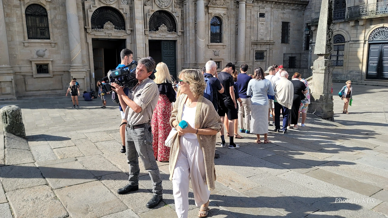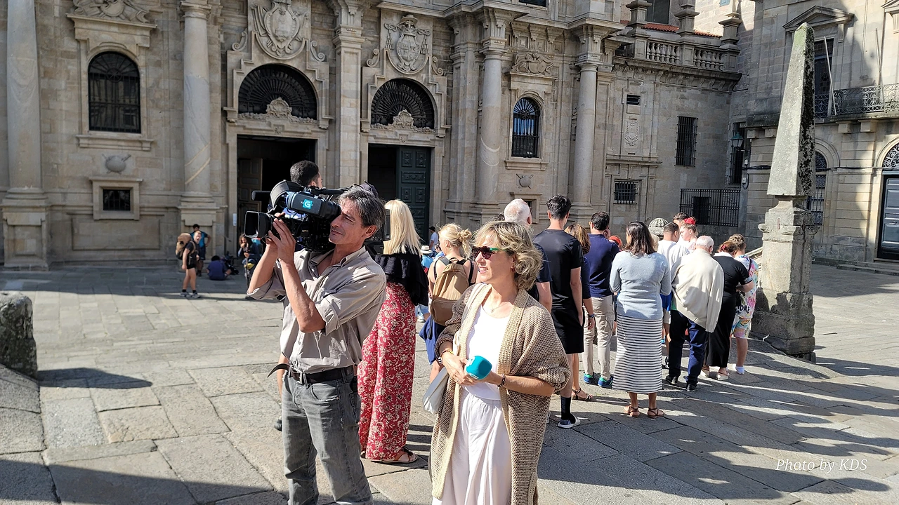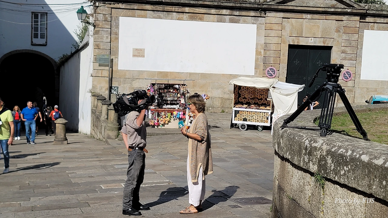 산티아고 대성당에 들어와서 성당의 구역의 여기저기 둘러보는데 마침 이 지역의 방송사에서 리포터와 카메라맨이 나와서 휴일의 표정을 스케치하고 있었다. 전직이 방송 분야에서 밥 먹고 살던 버릇이 그냥 발걸음을 지나치지 못하고 기웃거리게 되었다. 이들은 갈리시아 TV에서 나온 뉴스 촬영팀이었다. 갈리시아 TV(GTV)는 산티아고 데 콤포스텔라에 본사를 두고 있는 지상파 방송사로서 방송을 대부분 갈리시아어로 방송하고 있단다. 1985년 7월 25일에 설립되어, 현재 방송국은 방송프로그램 중 거의 70%를 자체 제작 담당하며 주당 168시간을 방송하고 있단다. 국제 채널이 위성을 통해 미국과 유럽에서 방송도 하고, 인터넷을 통해 완전한 서비스를 제공하고 있단다. 스페인의 다른 지역과 포르투갈에서도 여러 케이블 TV 제공업체를 통해 제공된다.