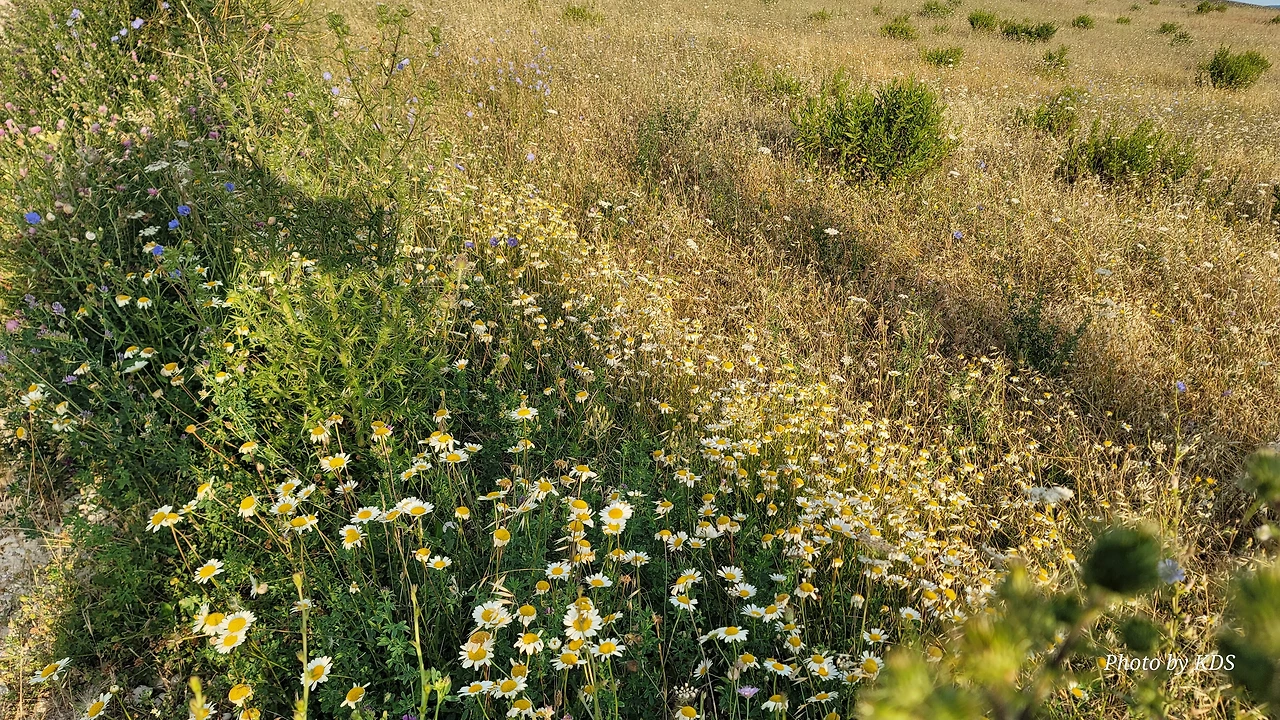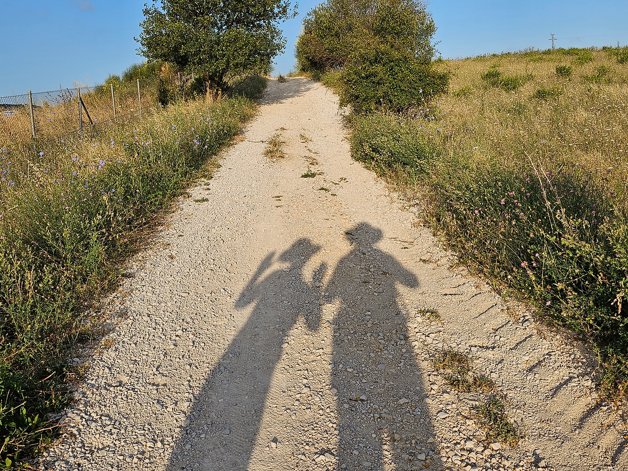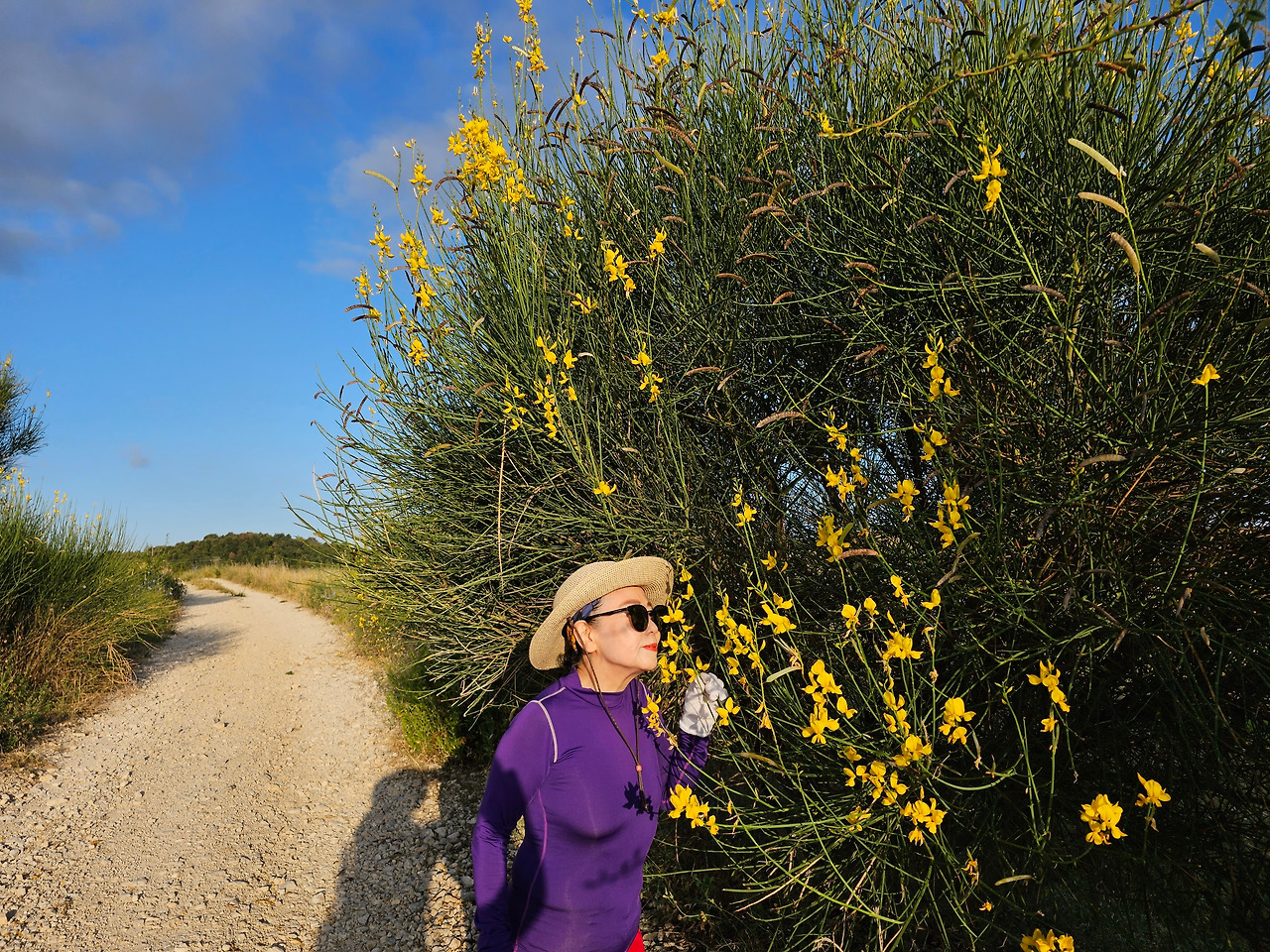 <아침 햇살에 그림자 놀이도 해본다.>무슨 꽃인지 모르지만 길섶에 향기로운 꽃들이 지천이다. 피곤한 발걸음을 꽃향기에 빌어서 잊어 보기도 한다.
