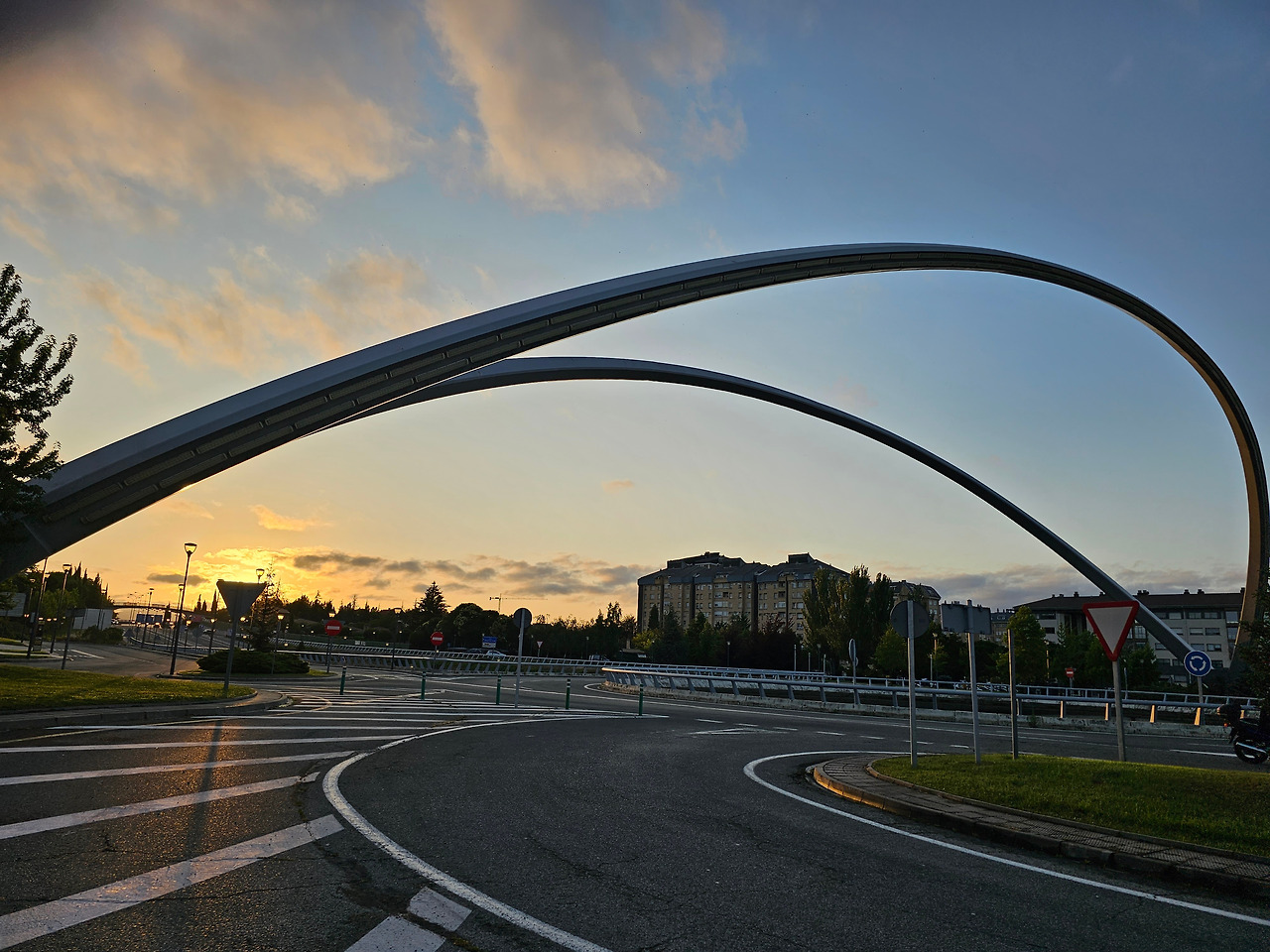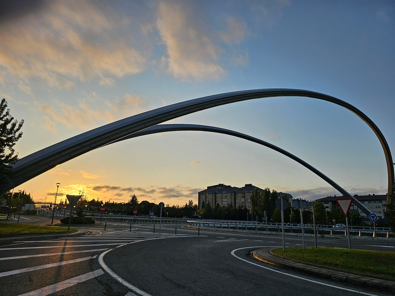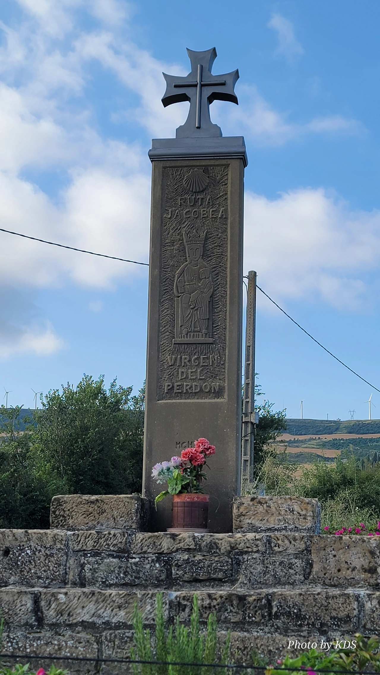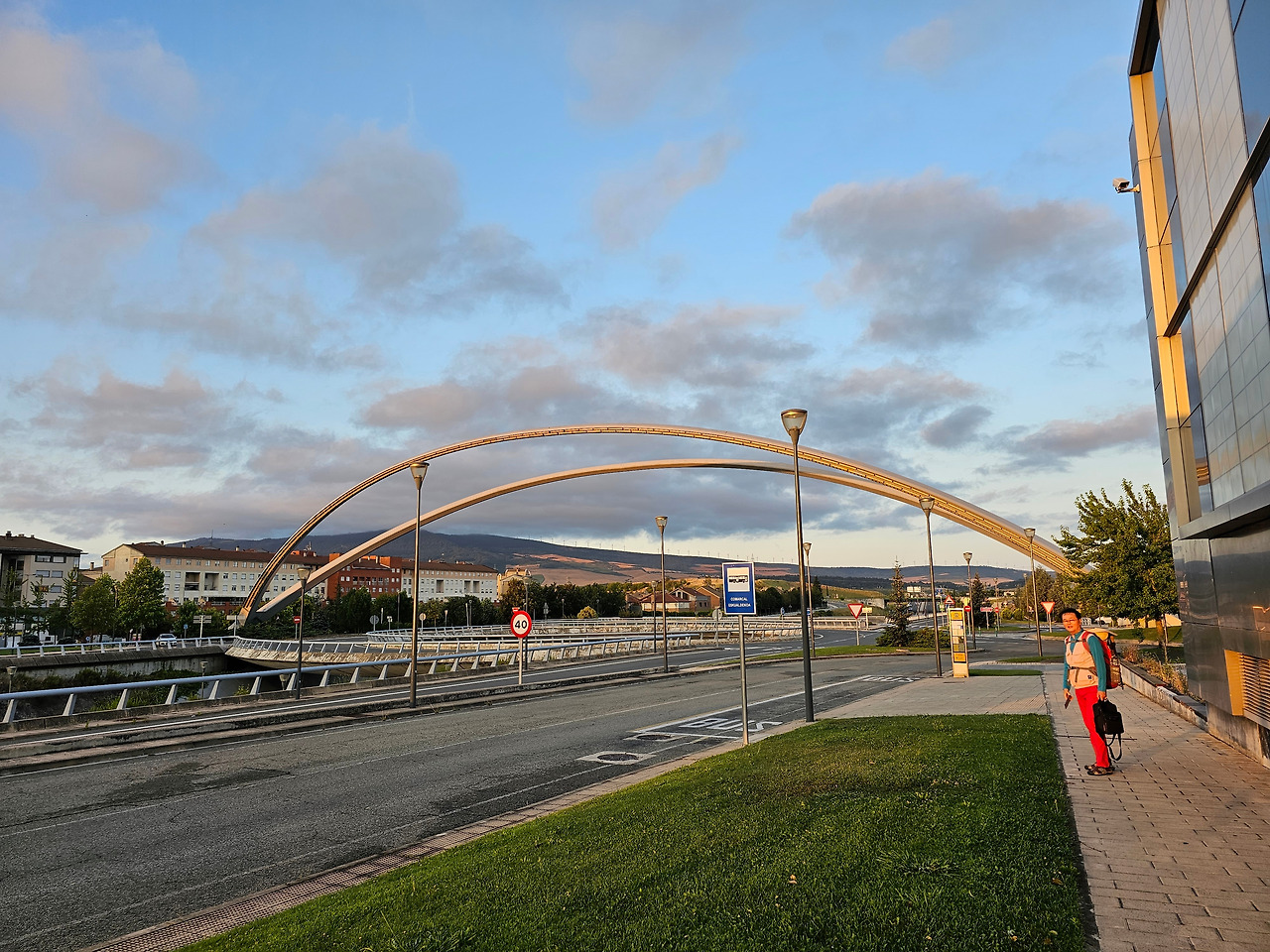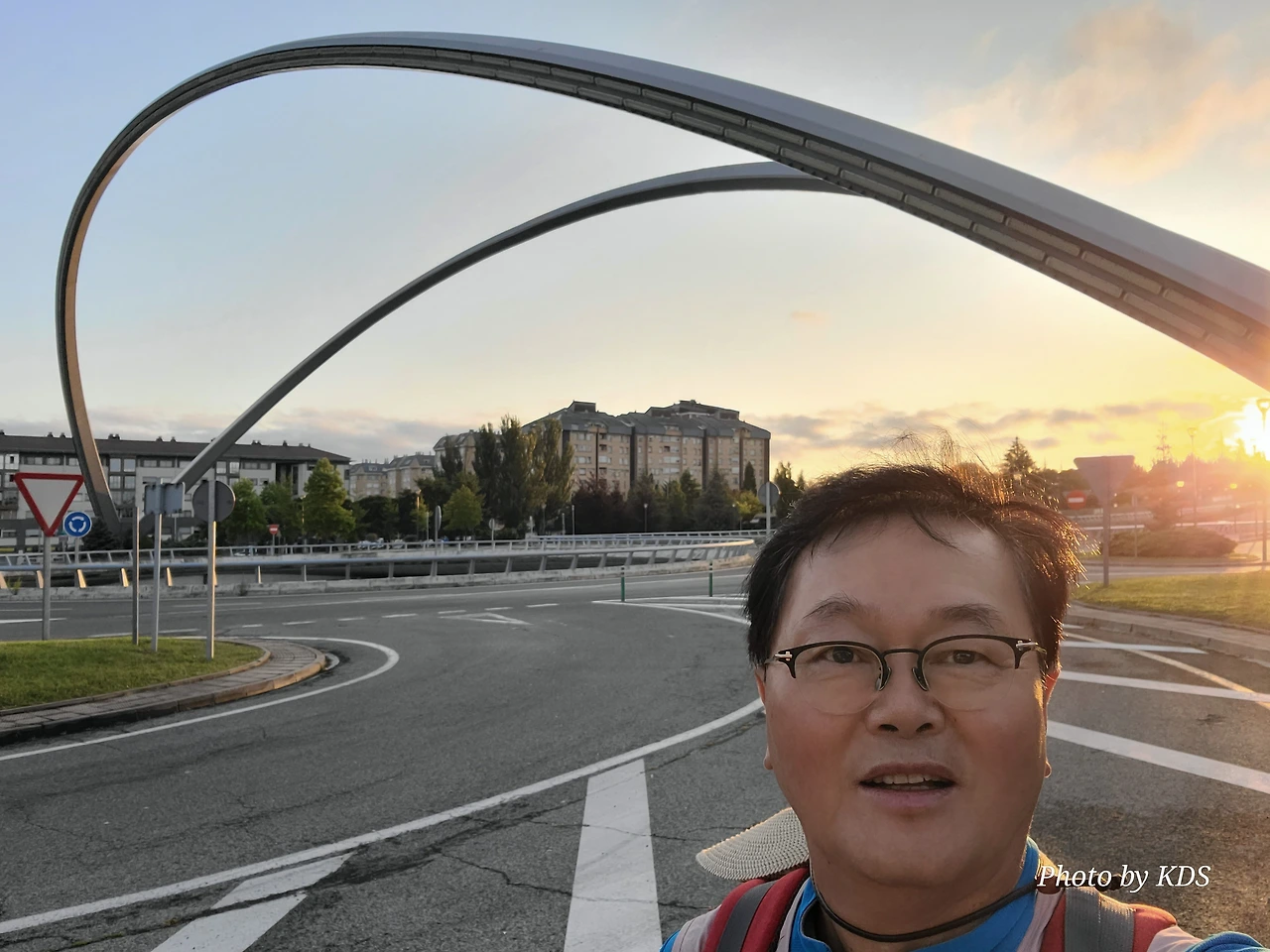 그나마 도로의 커다란 조형물과 길섶의 예쁜 꽃들만이 참견 않고 웃으면서 순례길을 재촉해 주는 것 같다. 늘 일출이 되기 전에 출발을 하다 보니 일출이 되면 조선 길손의 그림자 길이 즉 키가 정말 길고 크다. 어릴 적 시골 냇가의 미루나무처럼 길다. 어린이 대공원의 키다리 아저씨는 상대도 안 된다.