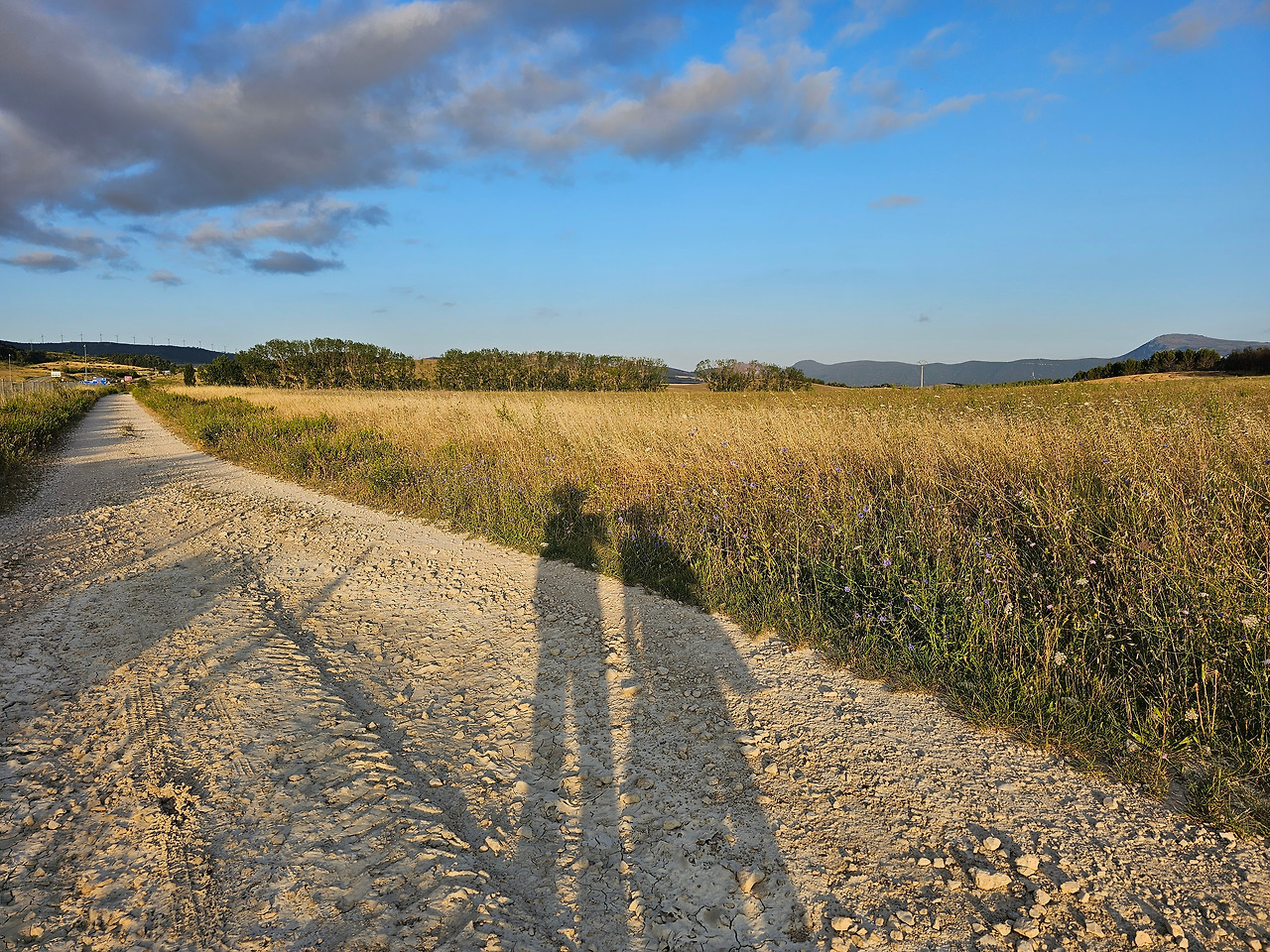 그래서 돌부리와 자갈이 촘촘한 고행의 순례자 전용길을 가자니 너무 힘들게 뻔하다. 어차피 자동차나 자전거, 오토바이, 말 등 탈 것을 이용하지 않고 온전히 걸어서 다음 숙영지(宿營地)로 도착하면 어느 길이든 되는 것이 아닌가? 하느님도 눈 감아 주시겠지. 그래서 거리의 길고 짧음을 떠나서 자동차가 다니는 아스팔트 포장도로를 순례길로 택하기로 했다. 숙소를 나와서 다음 목적지까지 가는 방향을 잡아서 부지런히 아스팔트 갓길을 걸어갔다.