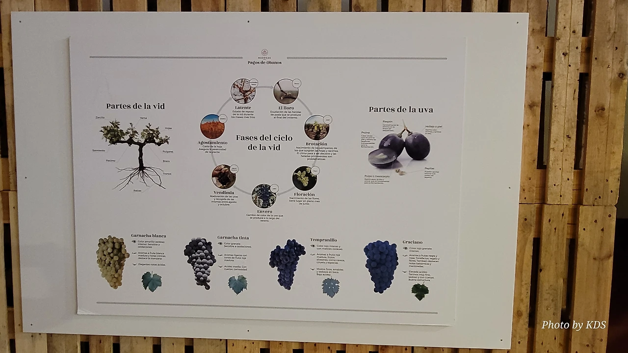 템쁘라닐요(Tempranillo), 카베르네 쇼비뇽(Cabernet Sauvignon) 그리고 메를롯(Merlot) 등 다양한 포도를 기본으로 하여 와인을 만든다. 이 포도들은 이 근처 지방인 시에라 델 페르돈(Sierra del Perdón) 언덕으로부터 경사진 구릉 지대를 배경으로 거대한 포도원으로부터 조달이 된단다. 주변은 거대한 포도원을 형성하여 끝없이 포도밭이 보인다.