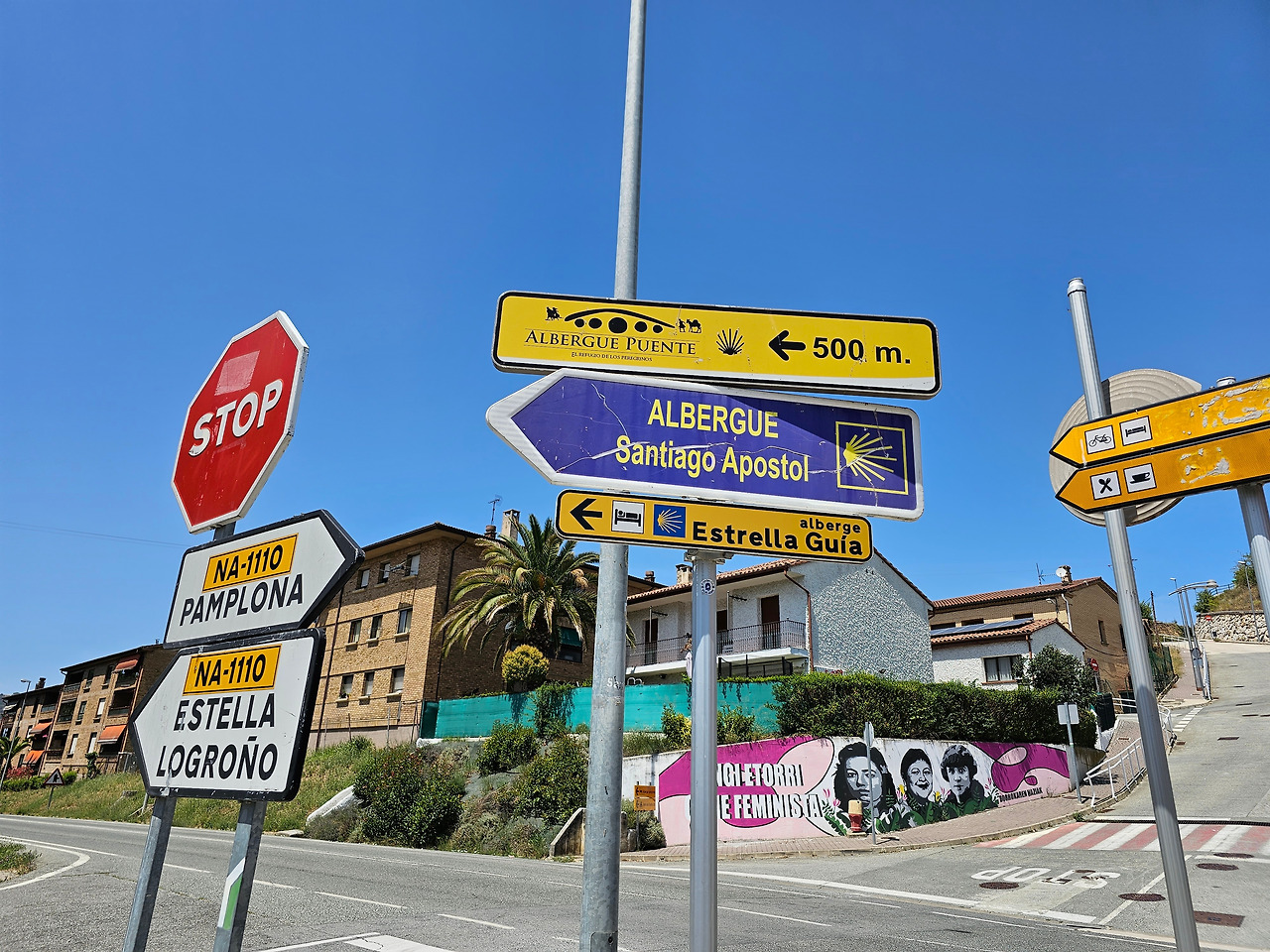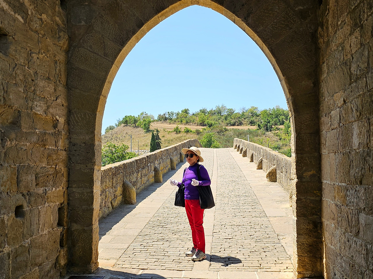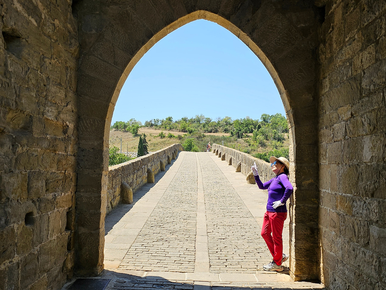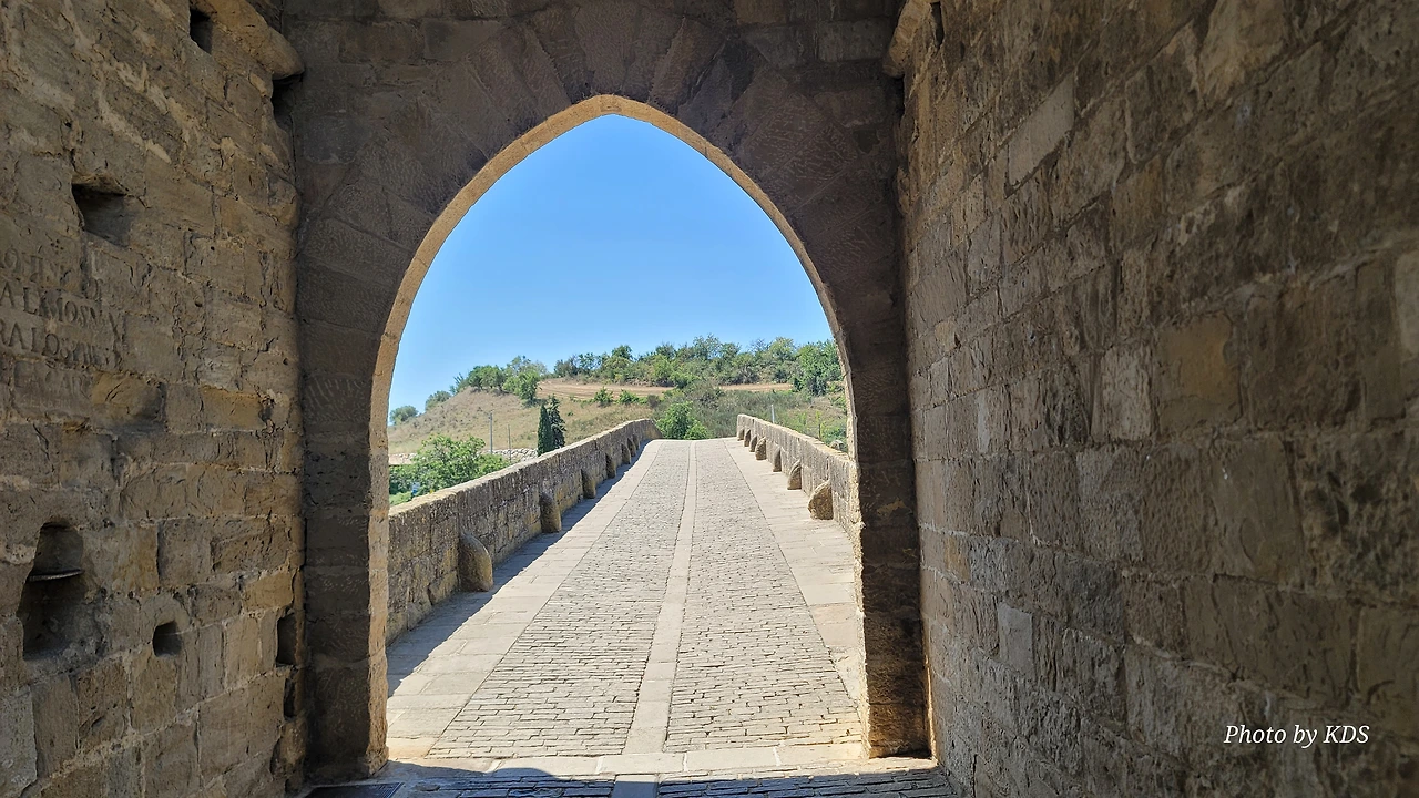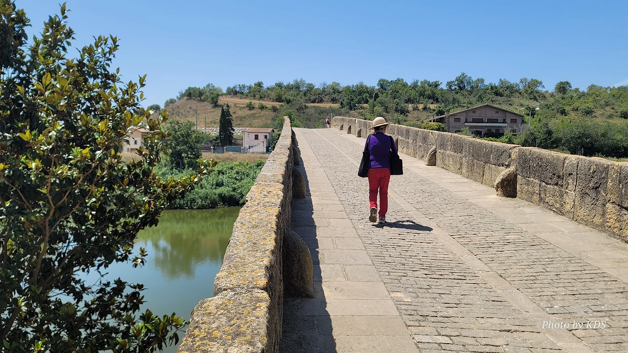 뿌엔테 라 레이나는 나바라지역에서 까미노의 상징적인 마을 중의 하나이다. 마을의 입구부터 출구까지 직선으로 이어지는 도로가 마을을 관통한다. 나바라와 아라곤의 왕들에 의해 만들어진 이 마을에는 중세에 만들어진 전형적인 사각형의 건축물들을 볼 수 있고, 마을 이름에서도 알 수 있듯이 7개의 아치로 만들어진 아름다운 중세의 다리가 최고이다. 이 다리를 짓도록 한 사람은 나헤라의 왕 산초 엘 마요르의 부인인 도냐 마요르라고 알려져 있다. 그래서 여왕의 다리이다.