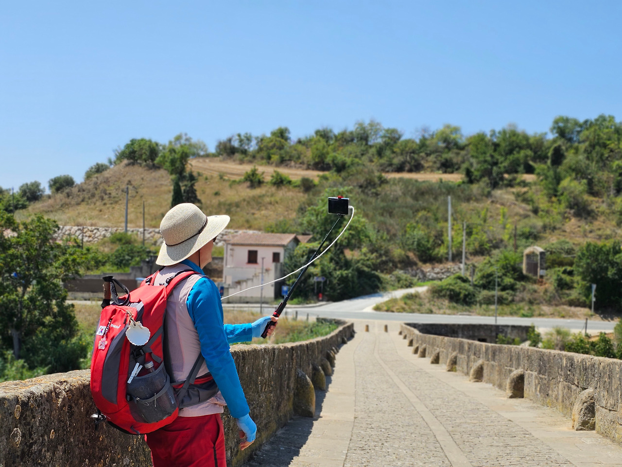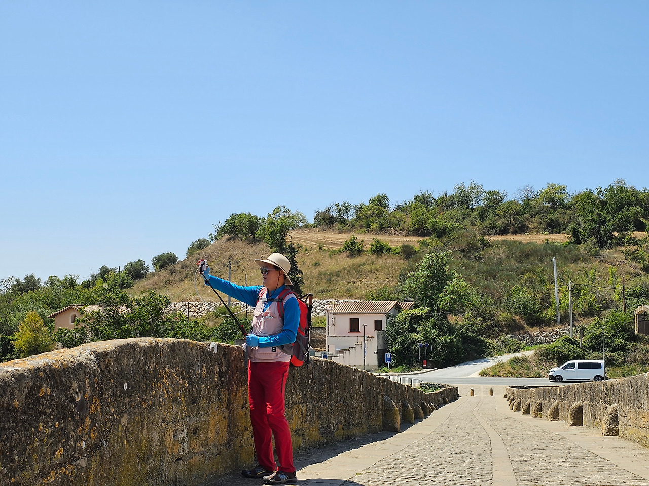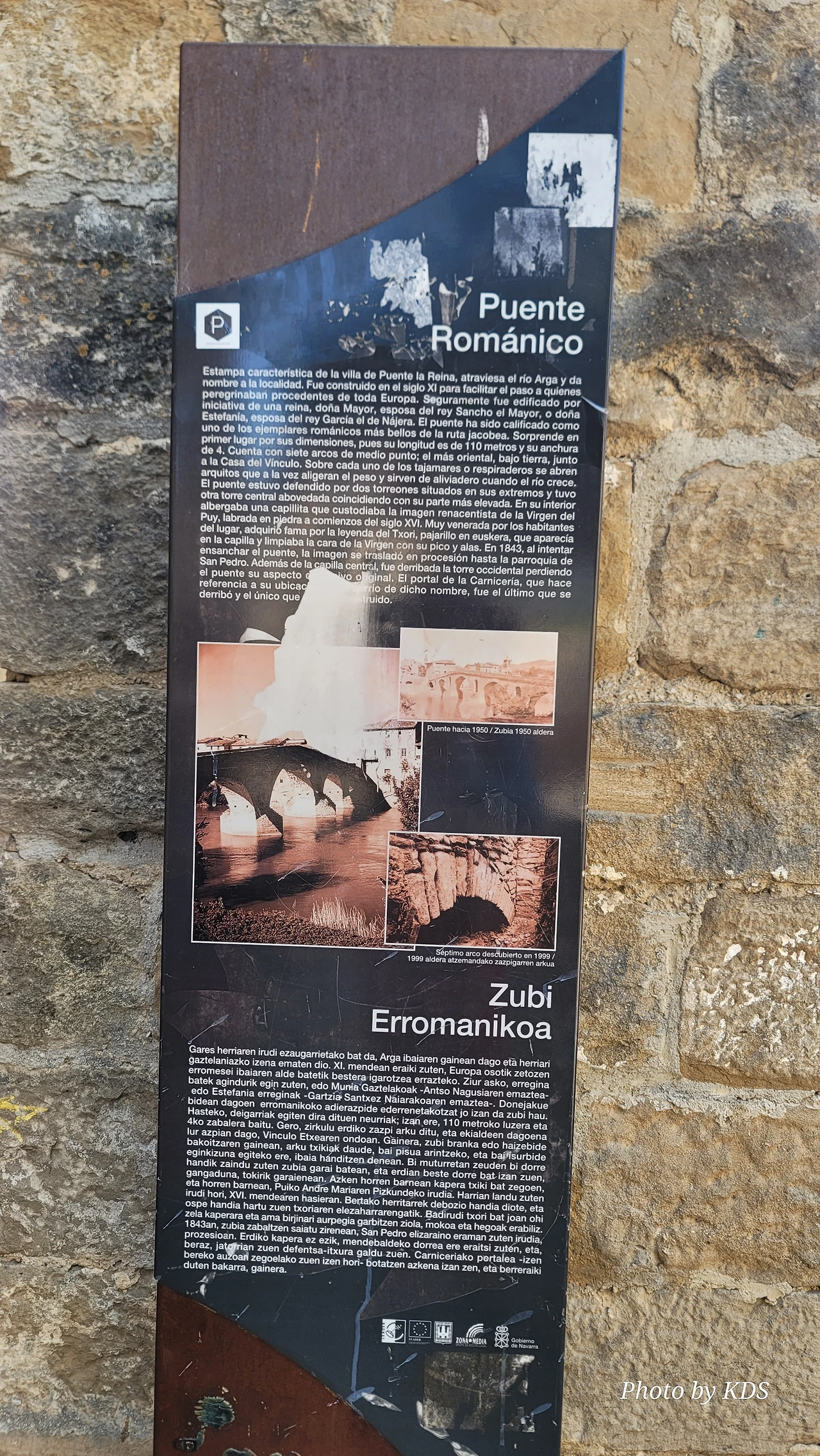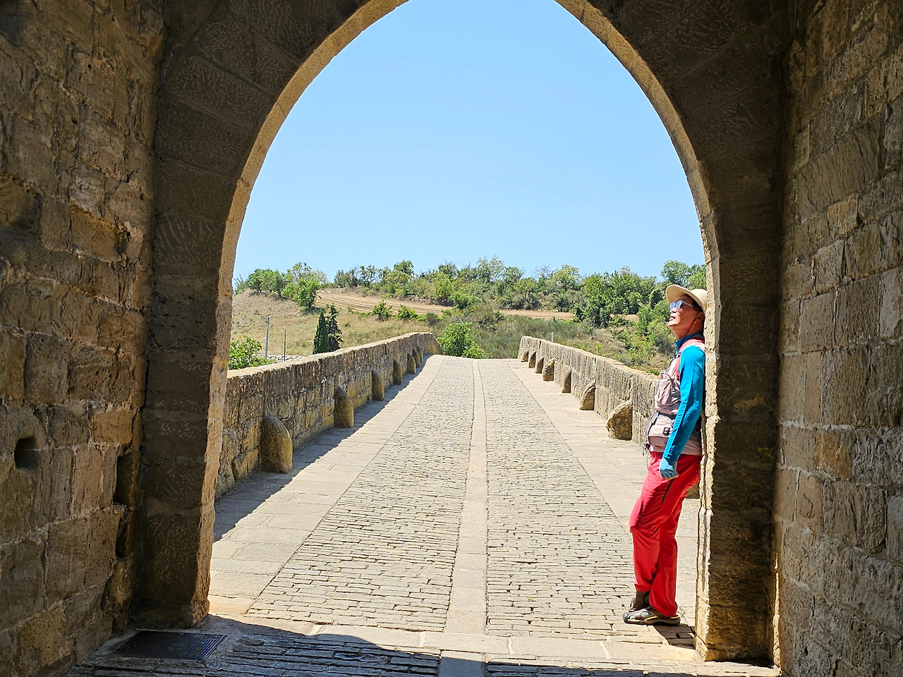 뿌엔테 라 레이나는 나바라지역에서 까미노의 상징적인 마을 중의 하나이다. 마을의 입구부터 출구까지 직선으로 이어지는 도로가 마을을 관통한다. 나바라와 아라곤의 왕들에 의해 만들어진 이 마을에는 중세에 만들어진 전형적인 사각형의 건축물들을 볼 수 있고, 마을 이름에서도 알 수 있듯이 7개의 아치로 만들어진 아름다운 중세의 다리가 최고이다. 이 다리를 짓도록 한 사람은 나헤라의 왕 산초 엘 마요르의 부인인 도냐 마요르라고 알려져 있다. 그래서 여왕의 다리이다.