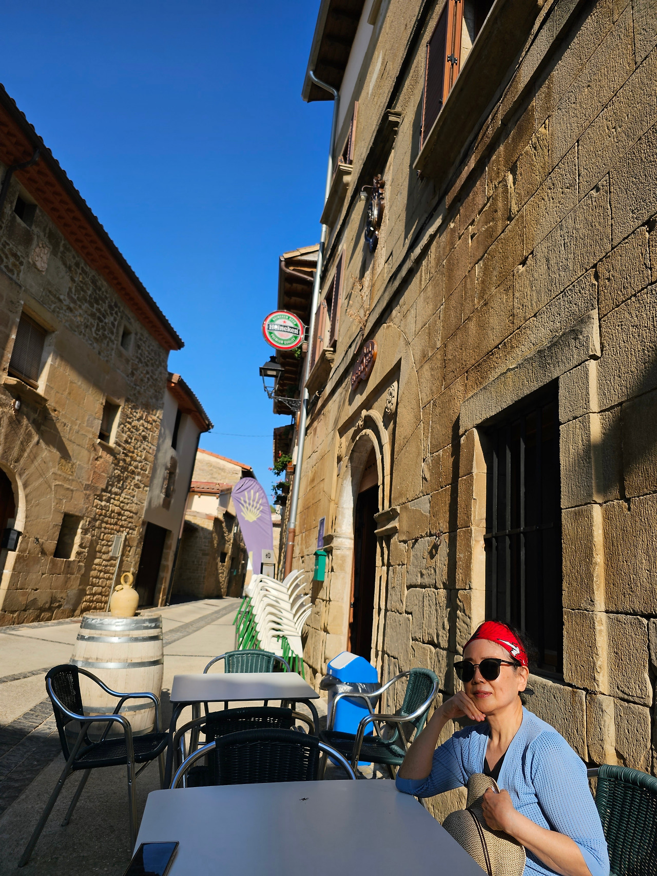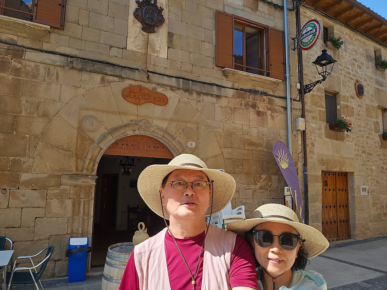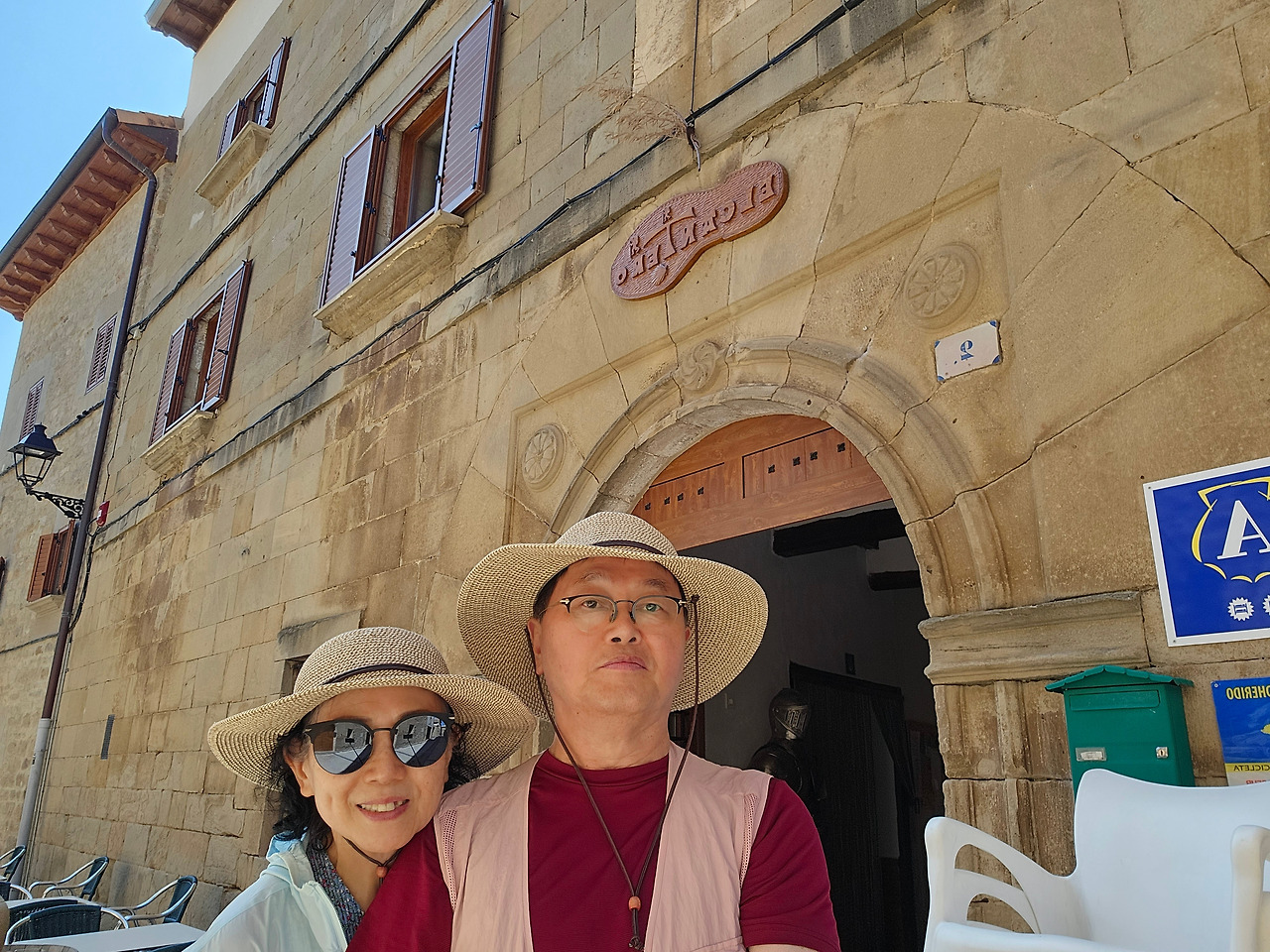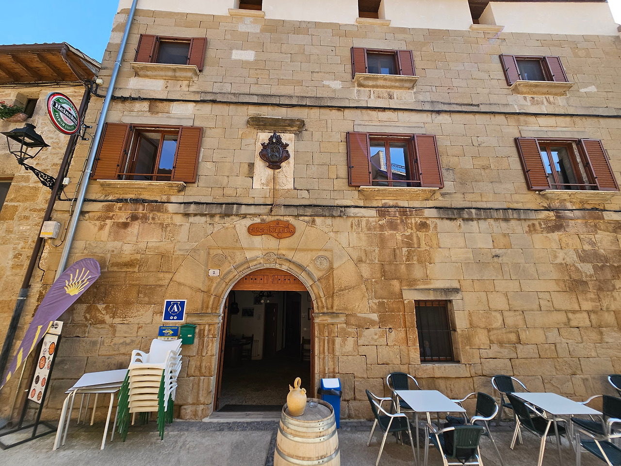 드디어 오늘의 종착지인 마네루에 도착했다. 공식적인 순례길로 29km를 걸은 것이다. 마네루(Maneru)는 지금은 아주 조그마하고 조용한 마을이지만 옛날 고대 로마인들이 정착했던 마을이다. 특이한 대부분은 집 대문마다 붙어있는 가문의 문장(紋章)들이 이 마을의 전통스러우면서도 고상한 성격을 드러낸다. 마네루에서는 이 지역에서 생산되는 특별한 로즈 와인을 맛볼 수 있다. 이 마을의 전통 수프도 맛볼 수 있다. 마을을 벗어나면 넓은 포도밭과 양 떼를 모는 목동이 등장하는 근사한 풍경이 순례객들을 맞이한다.