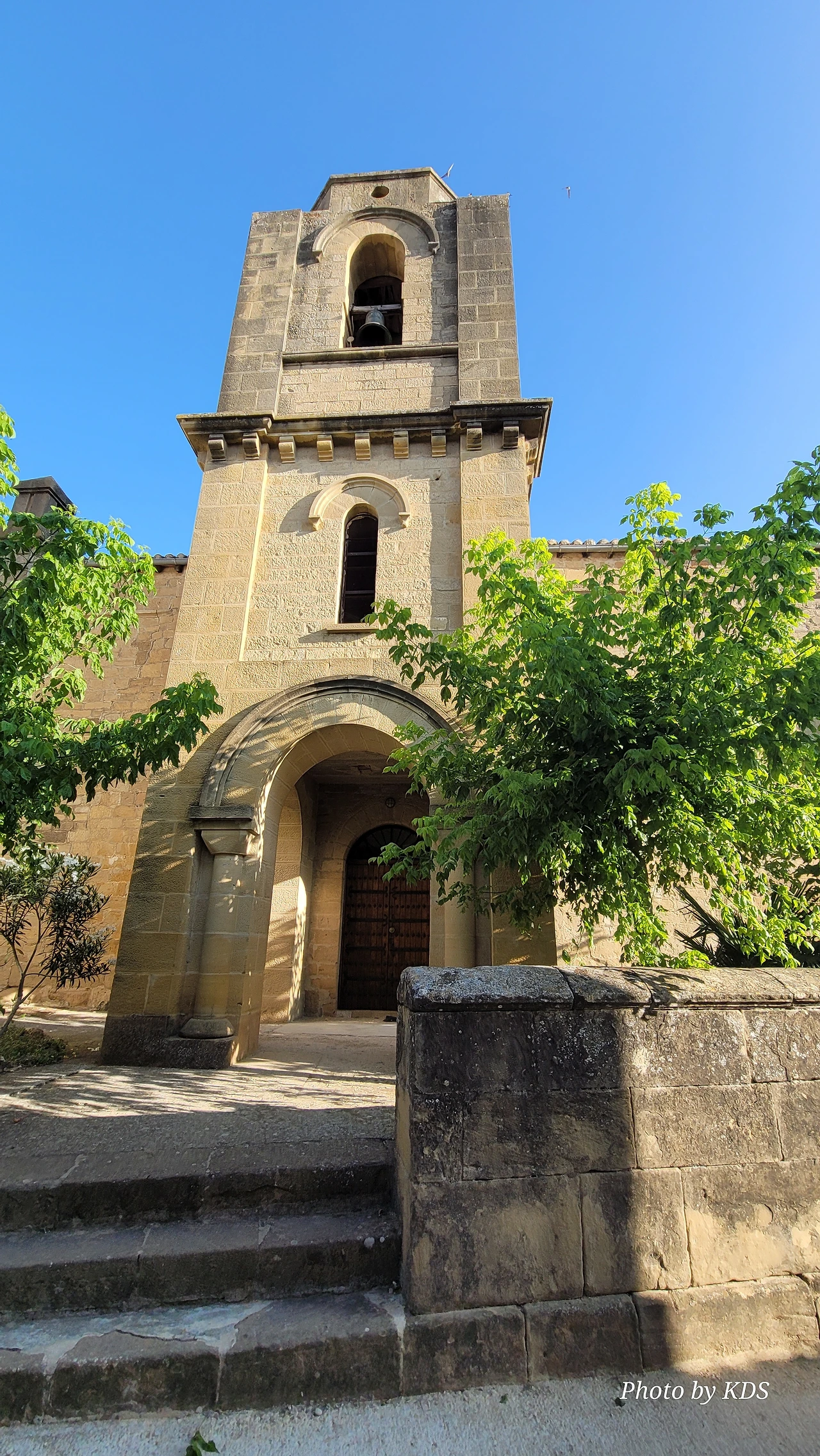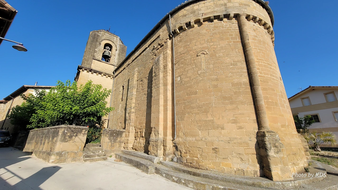 이것은 산 살바도르 교구 성당 (Iglesia Parroquial de San Salvador)이다. 롬바르디아 양식의 로마네스크 성당으로 내부는 13세기 고딕 양식으로 되어있다. 신랑(身廊)은 크기가 다른 구획으로 이뤄져 있다. 신랑이란 교회당 건축에서, 좌우의 측랑 사이에 끼인 중심부를 이르는 말이다. 건물 내에서 가장 넓은 부분이며 일반적으로 예배를 위한 목적으로 쓰인다. 제단(祭壇) 부분은 반원형으로 되어 있다. 창문 위는 아치, 제단 위에는 원형 궁륭(穹窿)으로 덮여 있다. 18세기에 증축된 성구실은 외벽에 붙어 있다. 정문과 탑은 20세기에 지어진 현대 건축물로 보인다. 여기에 18세기 바로크 양식으로 만든 순례자 야고보 성인의 제단화가 있다.
