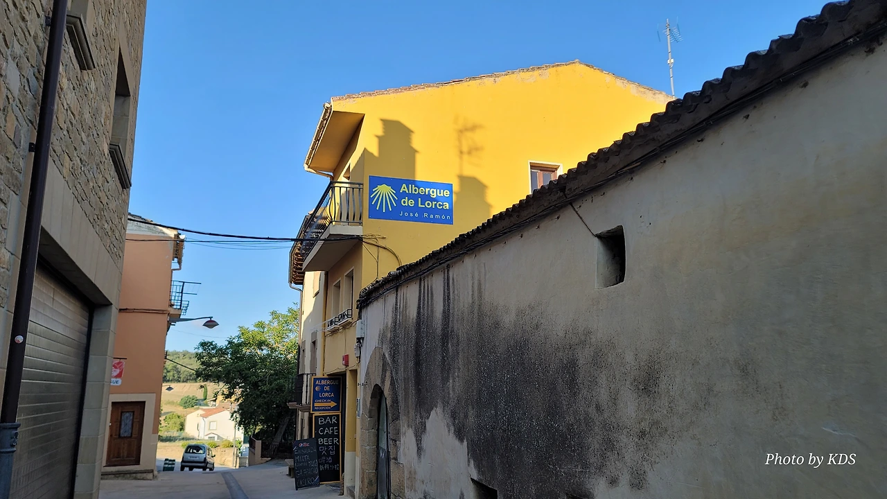 과거 중세시대에 로르까의 약삭빠른 주민들은 돈벌이를 위해 소금기가 많은 강물을 독이 있는 강물이라고 순례자들을 속여 그 물을 못 마시게 했단다.대신 목을 축이려면 포도주를 사서 마시라고 했단다. 목마른 자가 샘을 판다고, 독이든 물을 마시기보다 포도주라도 돈을 주고 사서 마셔야 걸을 수 있다. 지금은 순례길에 마실 물의 인심은 대체로 좋다. 5~6km 정도에 마을이 있고 마을마다 순례객들이 받아 마실 수 있는 음수대가 멋진 조형물과 함께 설치된 곳이 많다. 그곳 공무원이 아침 일찍 나와서 측정기를 가지고 음수용으로 적합한지 검사를 하는 모습도 보였다. 로르까 마을의 현재는 맛 좋은 포도주 인심이 좋은 친절한 마을이란다. 인심 좋은 마을이라고 여기서 퍼질러 눌러 쉴 수는 없다. 오늘 갈길을 내일로 미루지 말라고 김삿갓 선배가 말씀하지는 않았지만 갈 길 먼 조선 과객은 발길을 움직인다.