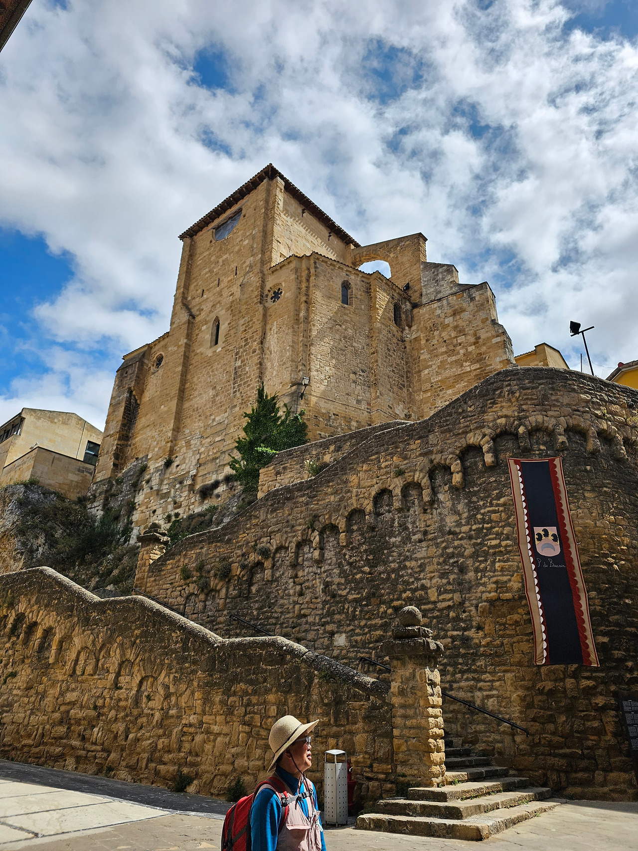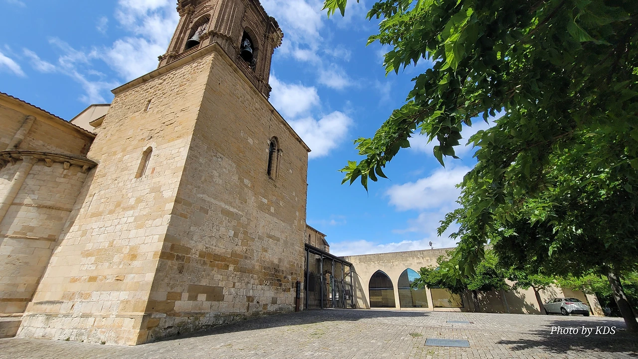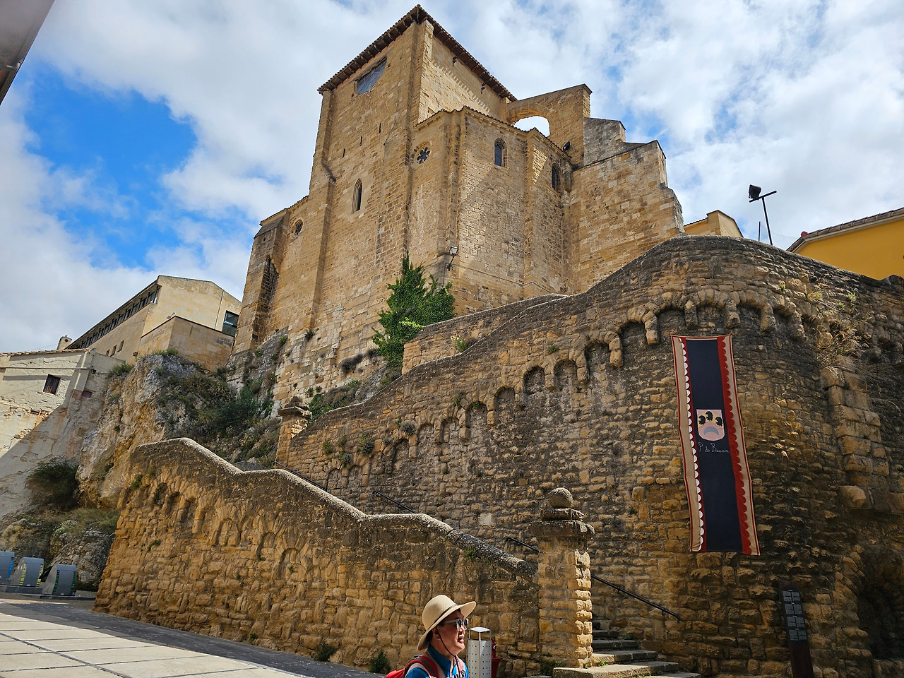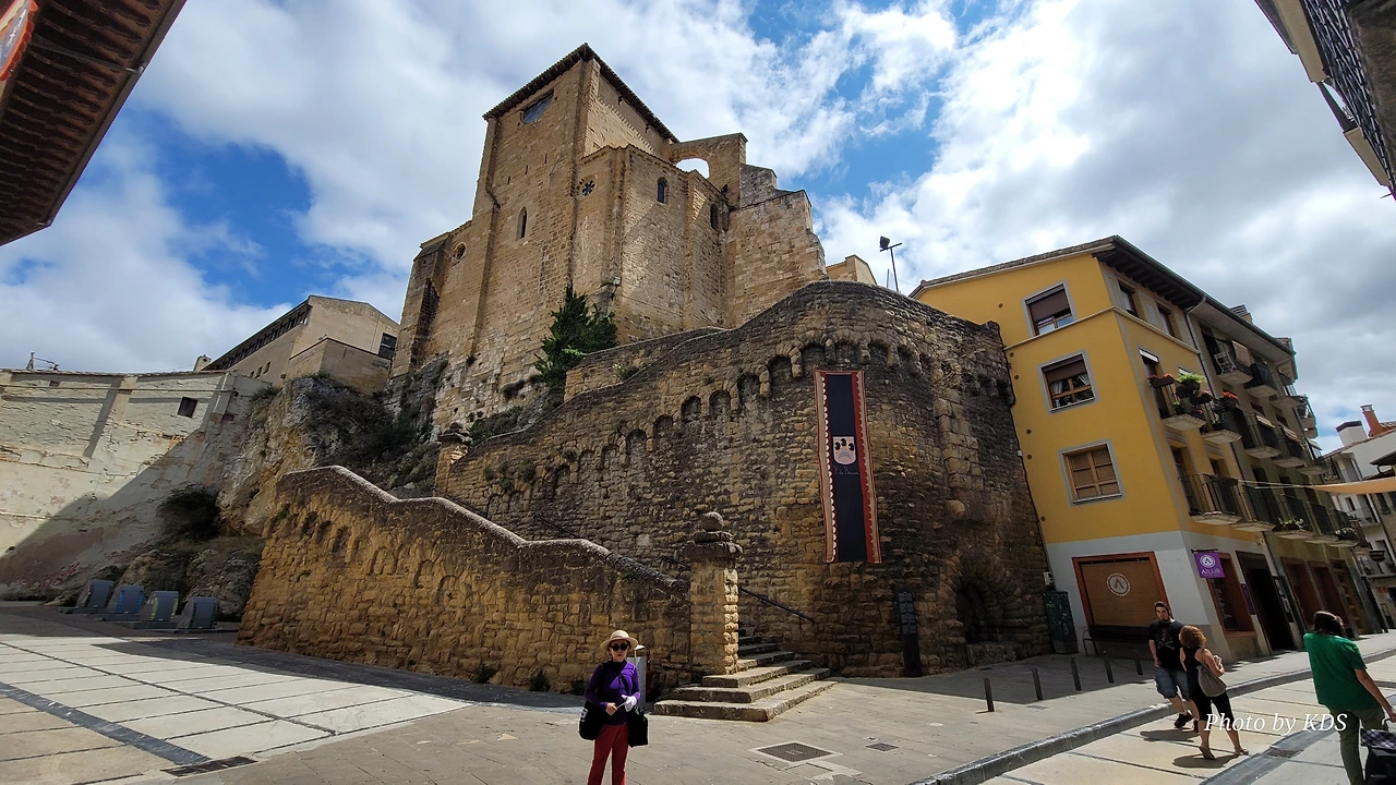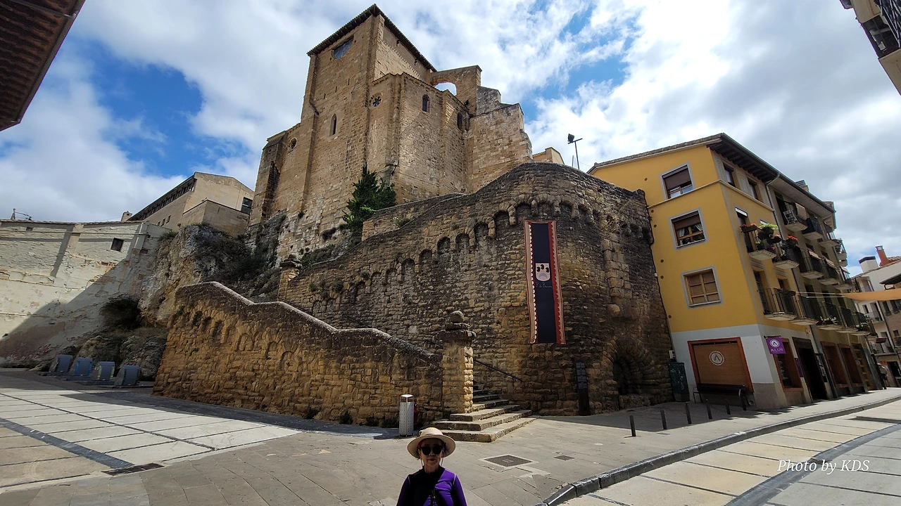 산따 마리아 후스 델 까스띠요 성당 (Iglesia de Santa Maria Jus del Castillo)이다. 지금은 사라진 왕실의 성 근처, 언덕 위에 있는 성당이다. 후스 델 까스띠요는 후스는 아래이고 까스띠요는 성이므로 ‘성의 아래’라는 뜻이다. 예전 유대교 회당이었던 자리에 지은 성당으로, 가르시아 라미레스 왕이 성모 마리아와 모든 성인들이 기독교 성전을 보호해 주도록 1145년 빰쁠로나의 주교 돈 로뻬 데 다르따호나에게 선물했다고 한다. 성당의 신랑(身廊)은 세 구역으로 나뉘어 있으며, 후진은 반원형에 궁륭(弓隆)이 얹어져 있다.