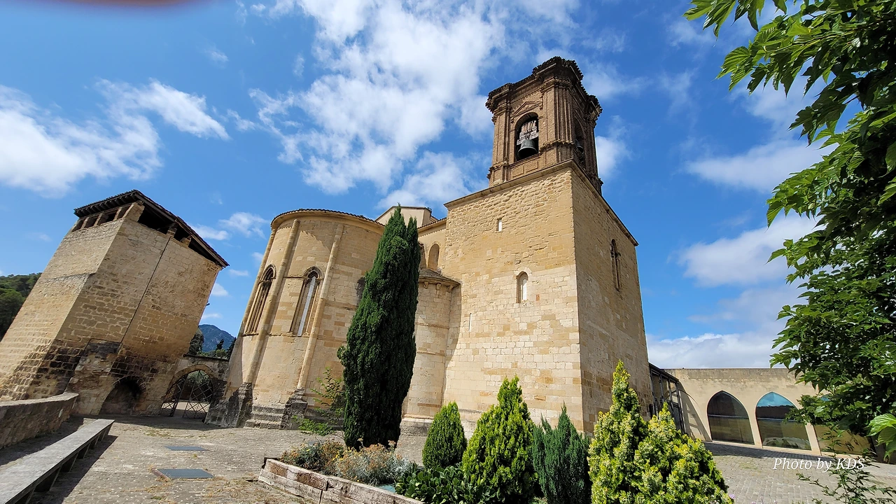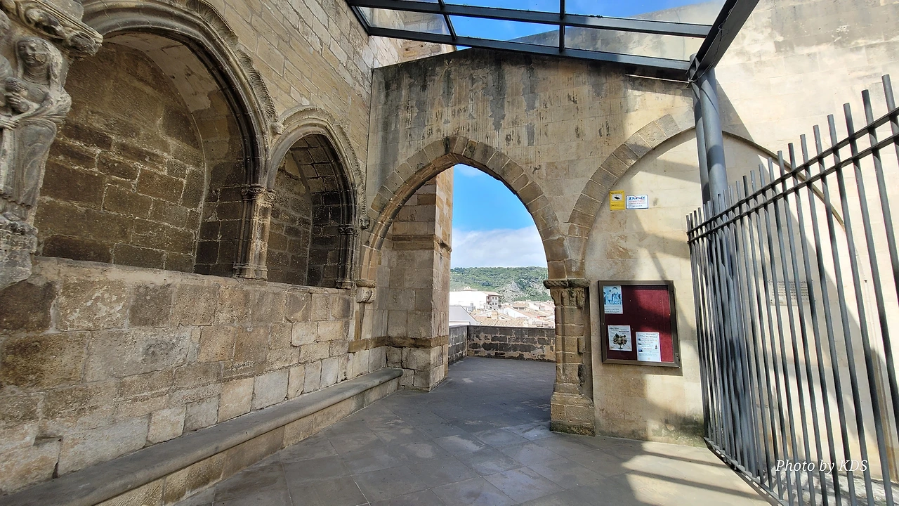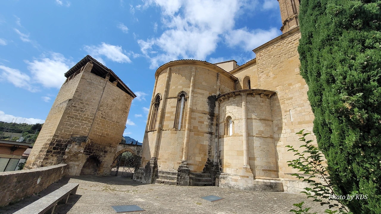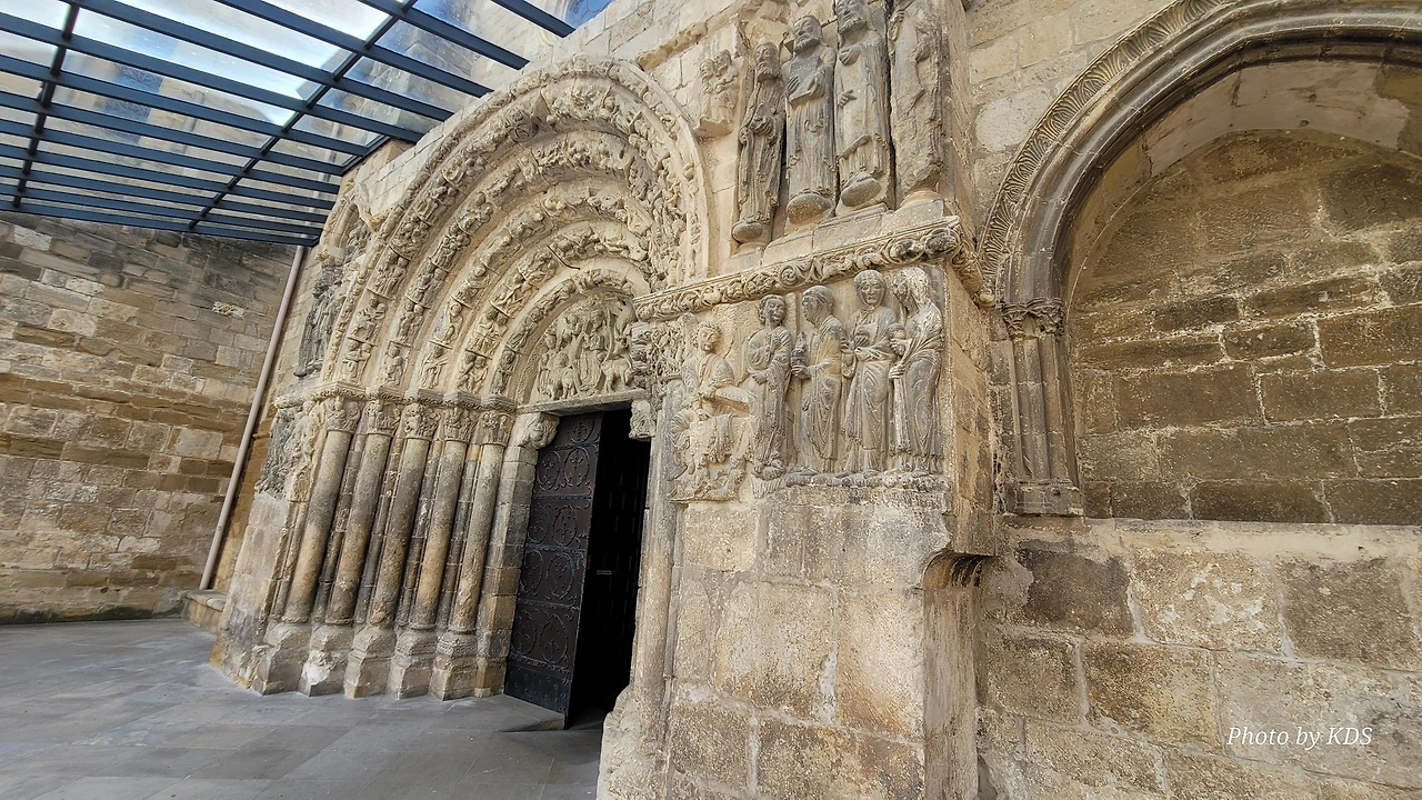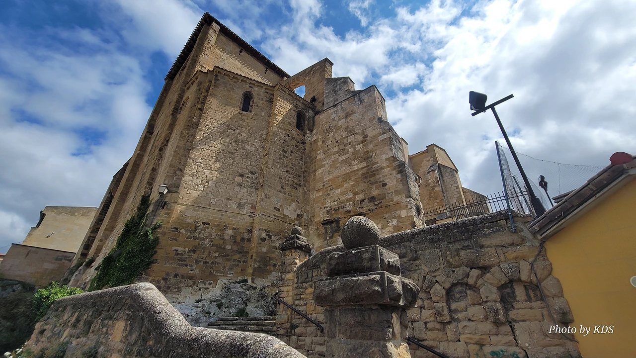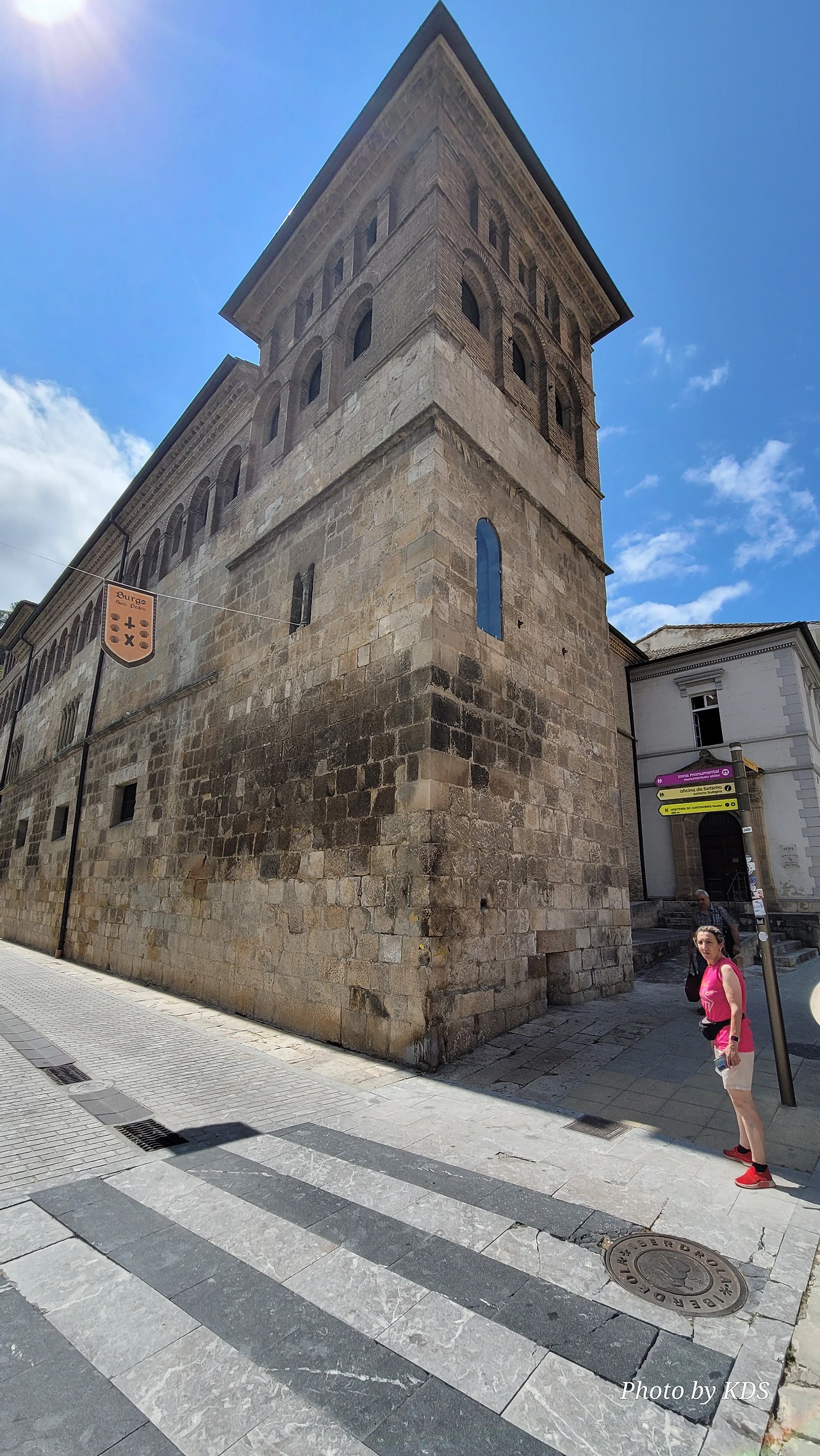 산따 마리아 후스 델 까스띠요 성당 (Iglesia de Santa Maria Jus del Castillo)이다. 지금은 사라진 왕실의 성 근처, 언덕 위에 있는 성당이다. 후스 델 까스띠요는 후스는 아래이고 까스띠요는 성이므로 ‘성의 아래’라는 뜻이다. 예전 유대교 회당이었던 자리에 지은 성당으로, 가르시아 라미레스 왕이 성모 마리아와 모든 성인들이 기독교 성전을 보호해 주도록 1145년 빰쁠로나의 주교 돈 로뻬 데 다르따호나에게 선물했다고 한다. 성당의 신랑(身廊)은 세 구역으로 나뉘어 있으며, 후진은 반원형에 궁륭(弓隆)이 얹어져 있다.