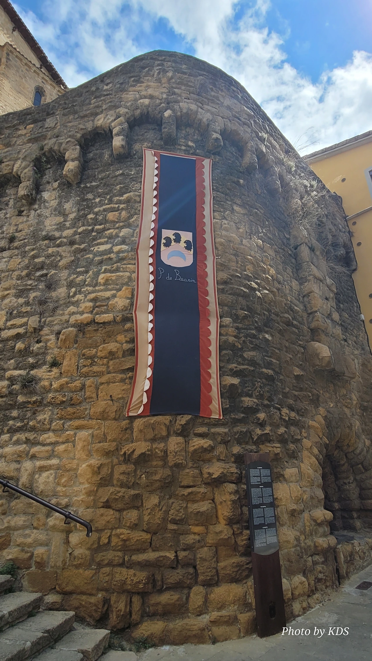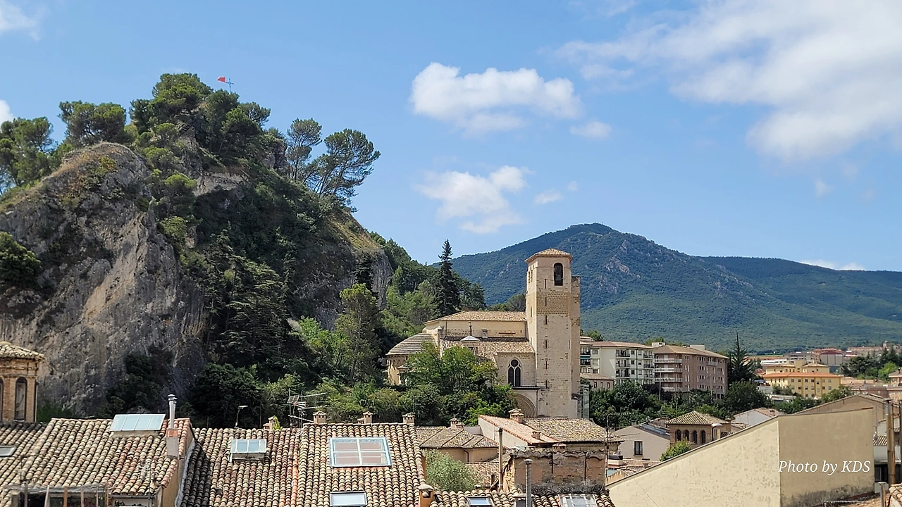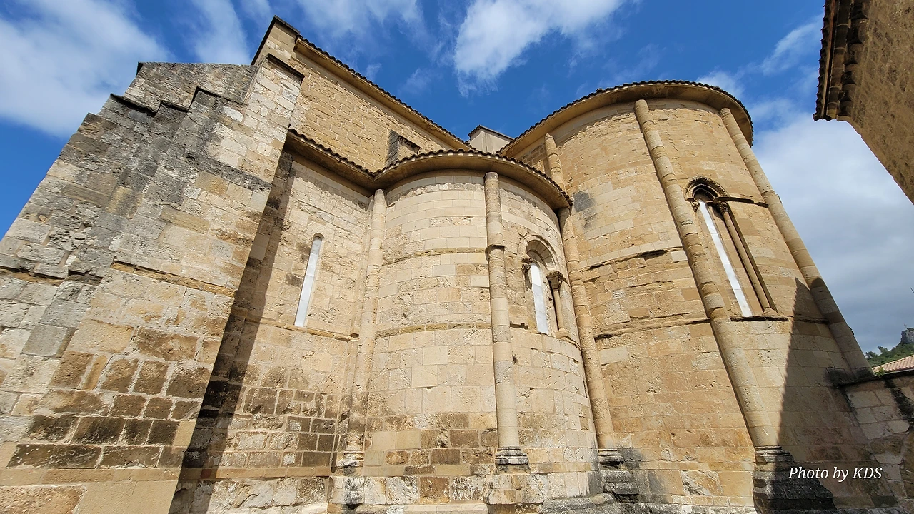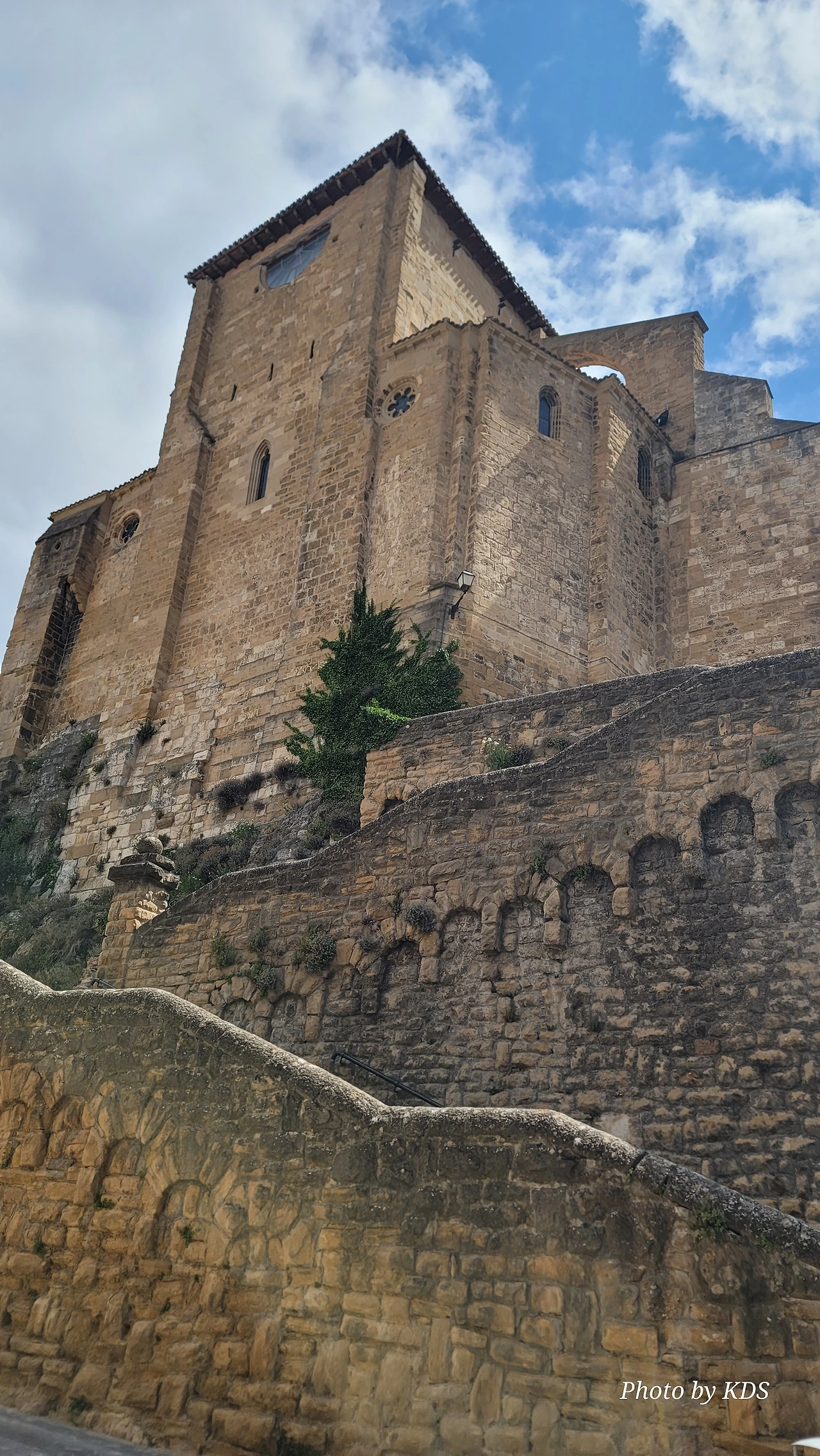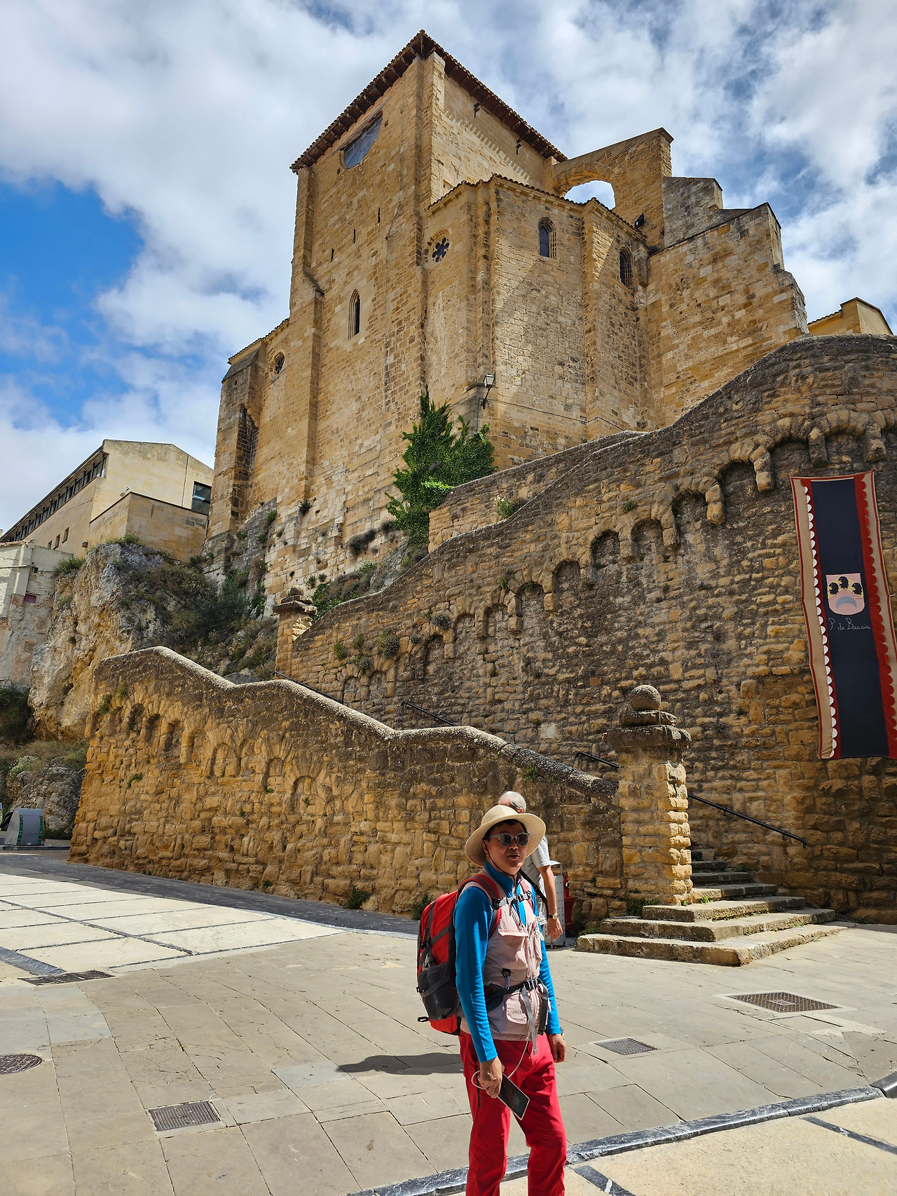 산따 마리아 후스 델 까스띠요 성당 (Iglesia de Santa Maria Jus del Castillo)이다. 지금은 사라진 왕실의 성 근처, 언덕 위에 있는 성당이다. 후스 델 까스띠요는 후스는 아래이고 까스띠요는 성이므로 ‘성의 아래’라는 뜻이다. 예전 유대교 회당이었던 자리에 지은 성당으로, 가르시아 라미레스 왕이 성모 마리아와 모든 성인들이 기독교 성전을 보호해 주도록 1145년 빰쁠로나의 주교 돈 로뻬 데 다르따호나에게 선물했다고 한다. 성당의 신랑(身廊)은 세 구역으로 나뉘어 있으며, 후진은 반원형에 궁륭(弓隆)이 얹어져 있다.