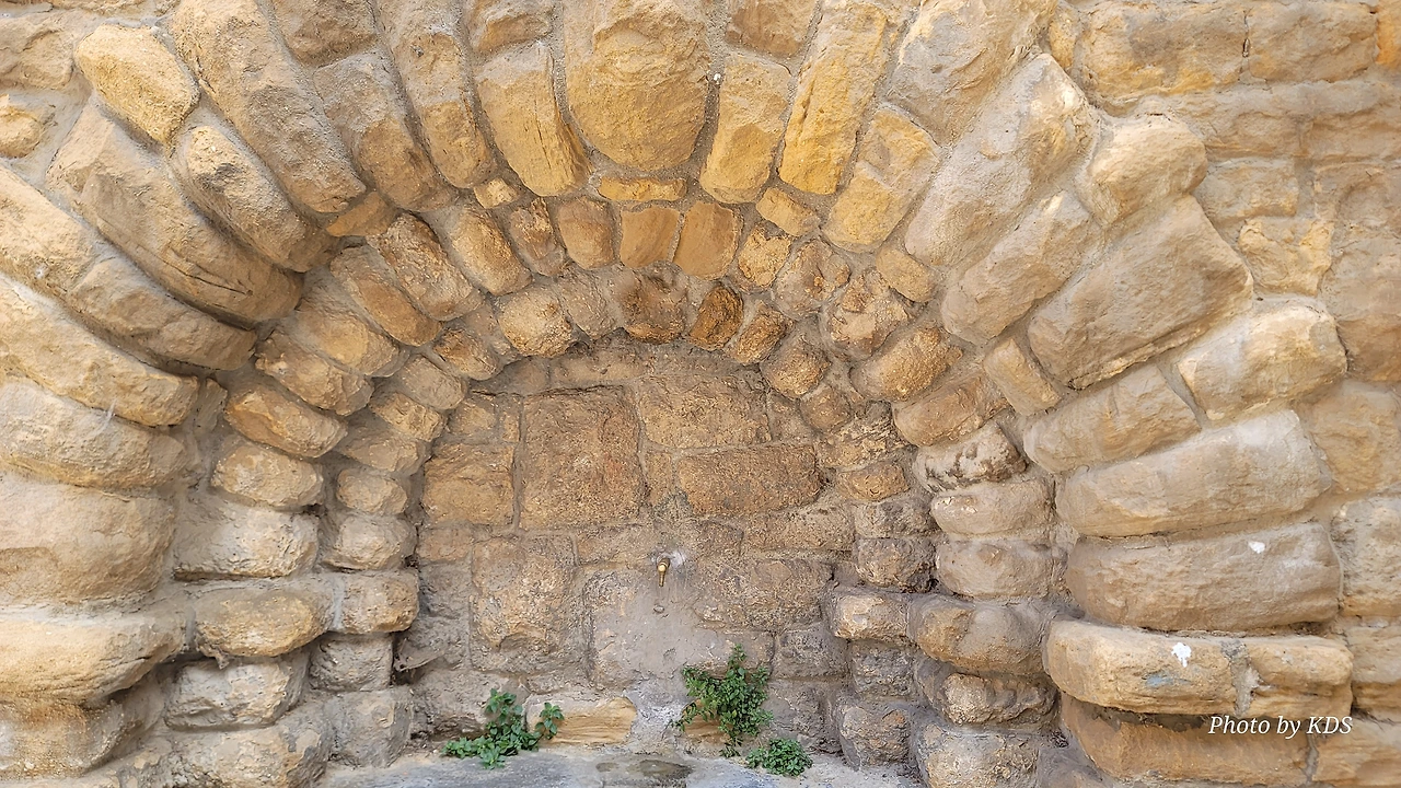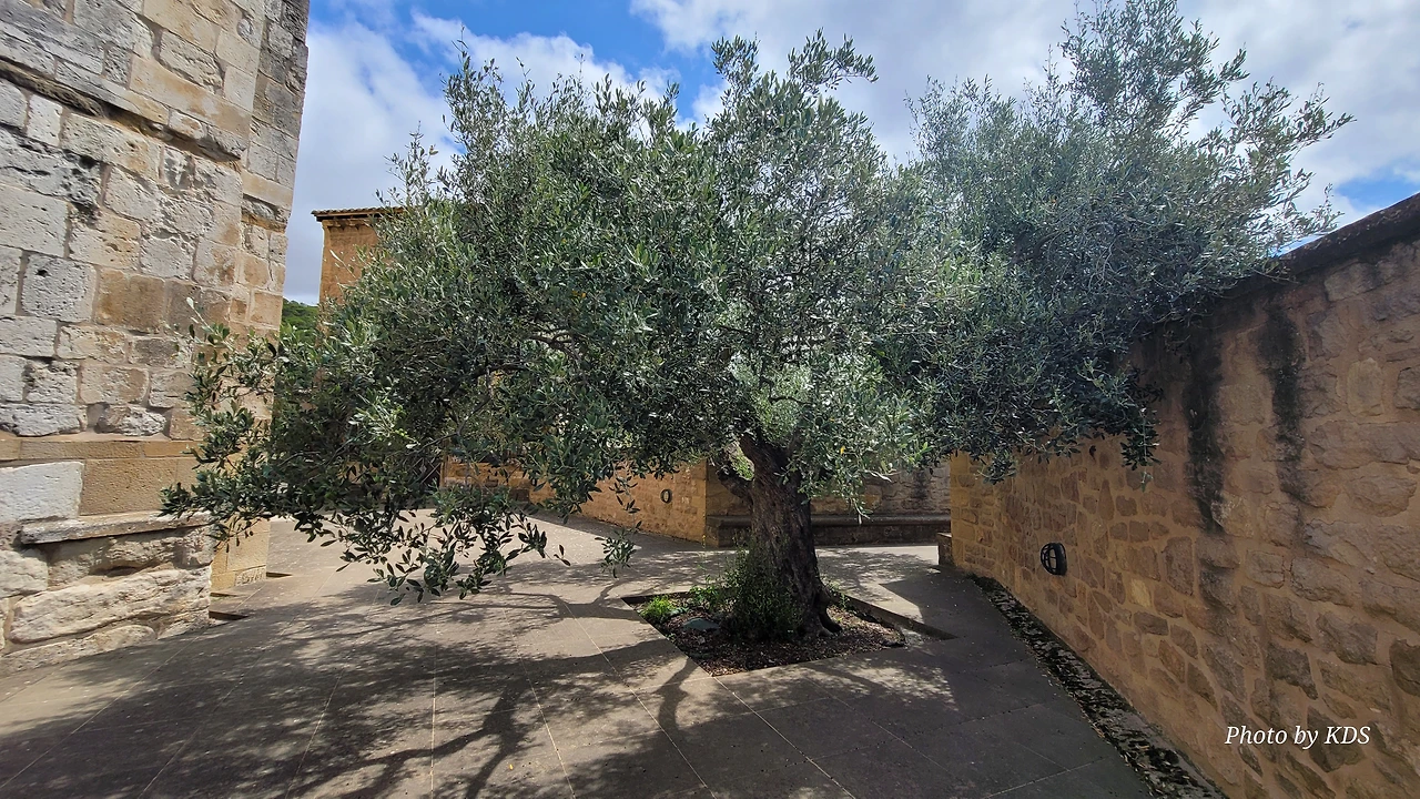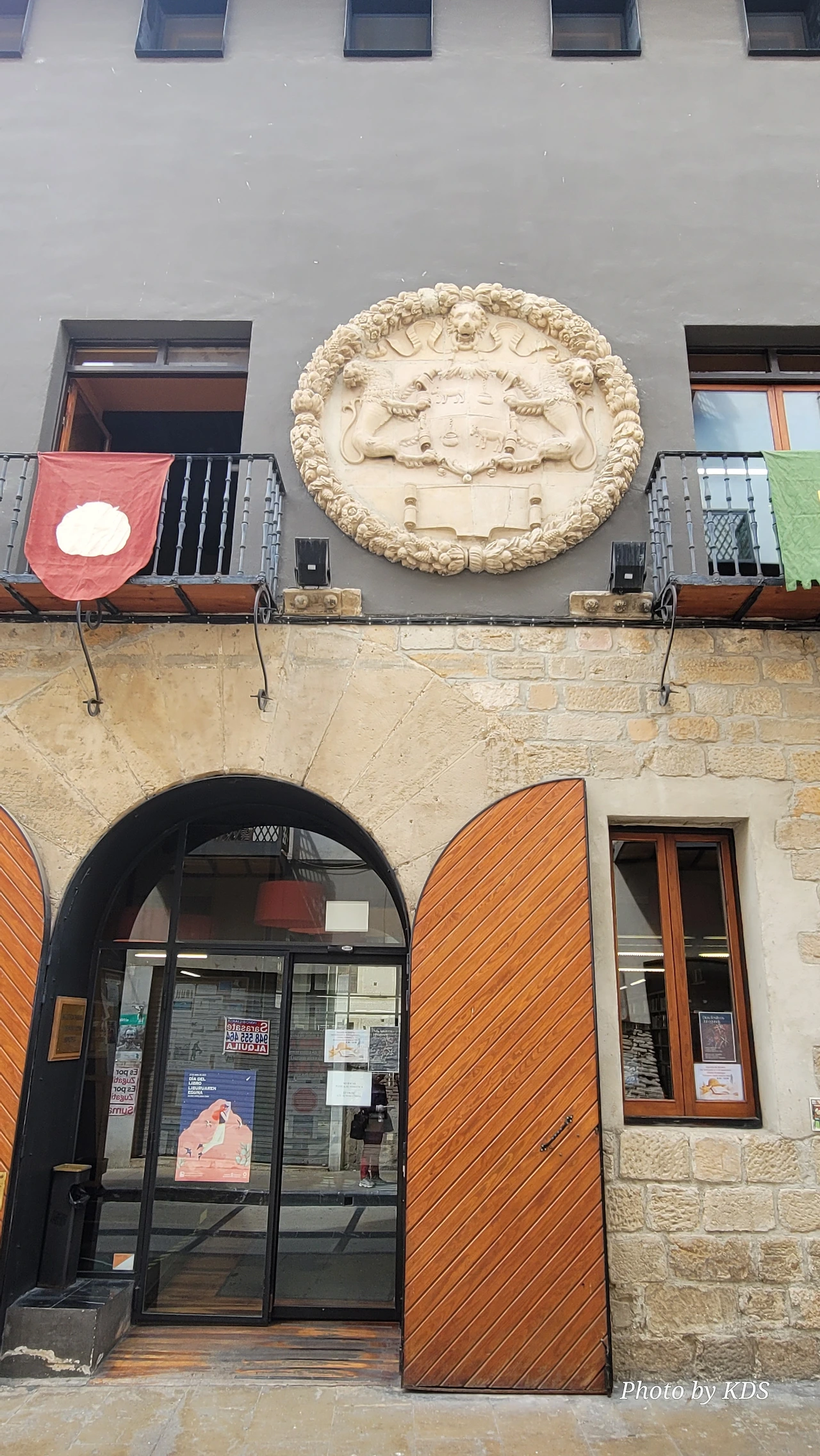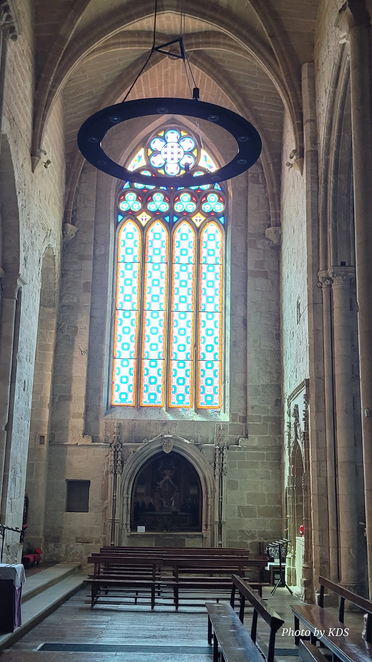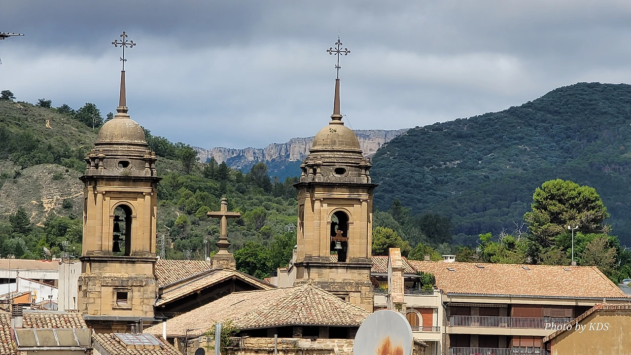 산따 마리아 후스 델 까스띠요 성당 (Iglesia de Santa Maria Jus del Castillo)이다. 지금은 사라진 왕실의 성 근처, 언덕 위에 있는 성당이다. 후스 델 까스띠요는 후스는 아래이고 까스띠요는 성이므로 ‘성의 아래’라는 뜻이다. 예전 유대교 회당이었던 자리에 지은 성당으로, 가르시아 라미레스 왕이 성모 마리아와 모든 성인들이 기독교 성전을 보호해 주도록 1145년 빰쁠로나의 주교 돈 로뻬 데 다르따호나에게 선물했다고 한다. 성당의 신랑(身廊)은 세 구역으로 나뉘어 있으며, 후진은 반원형에 궁륭(弓隆)이 얹어져 있다.