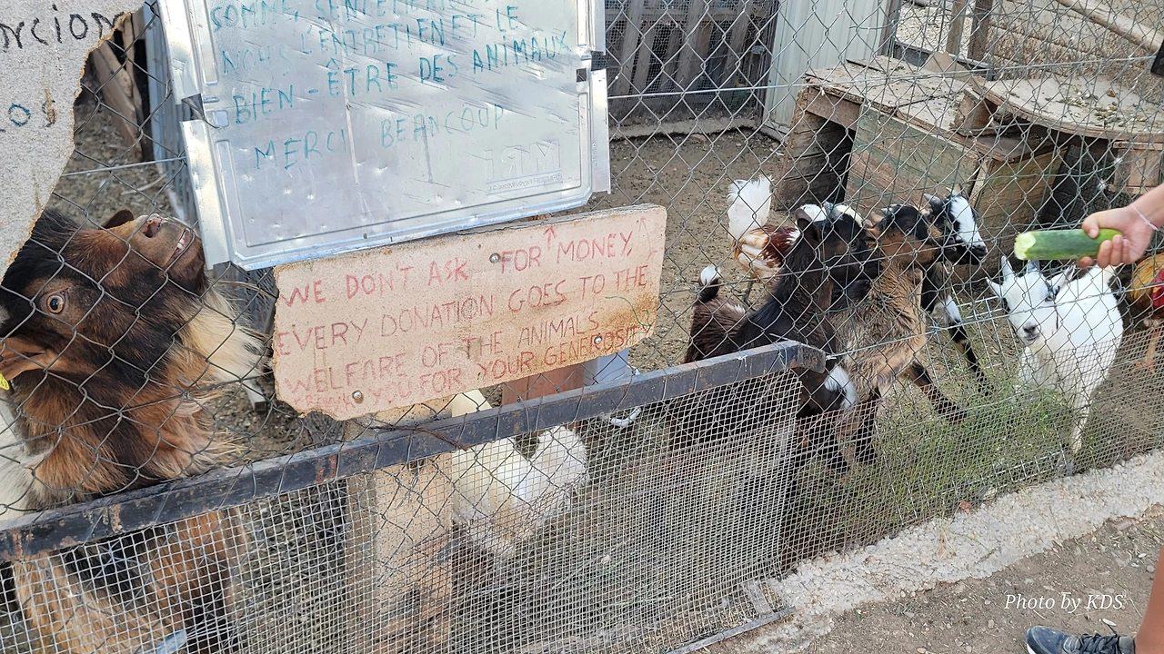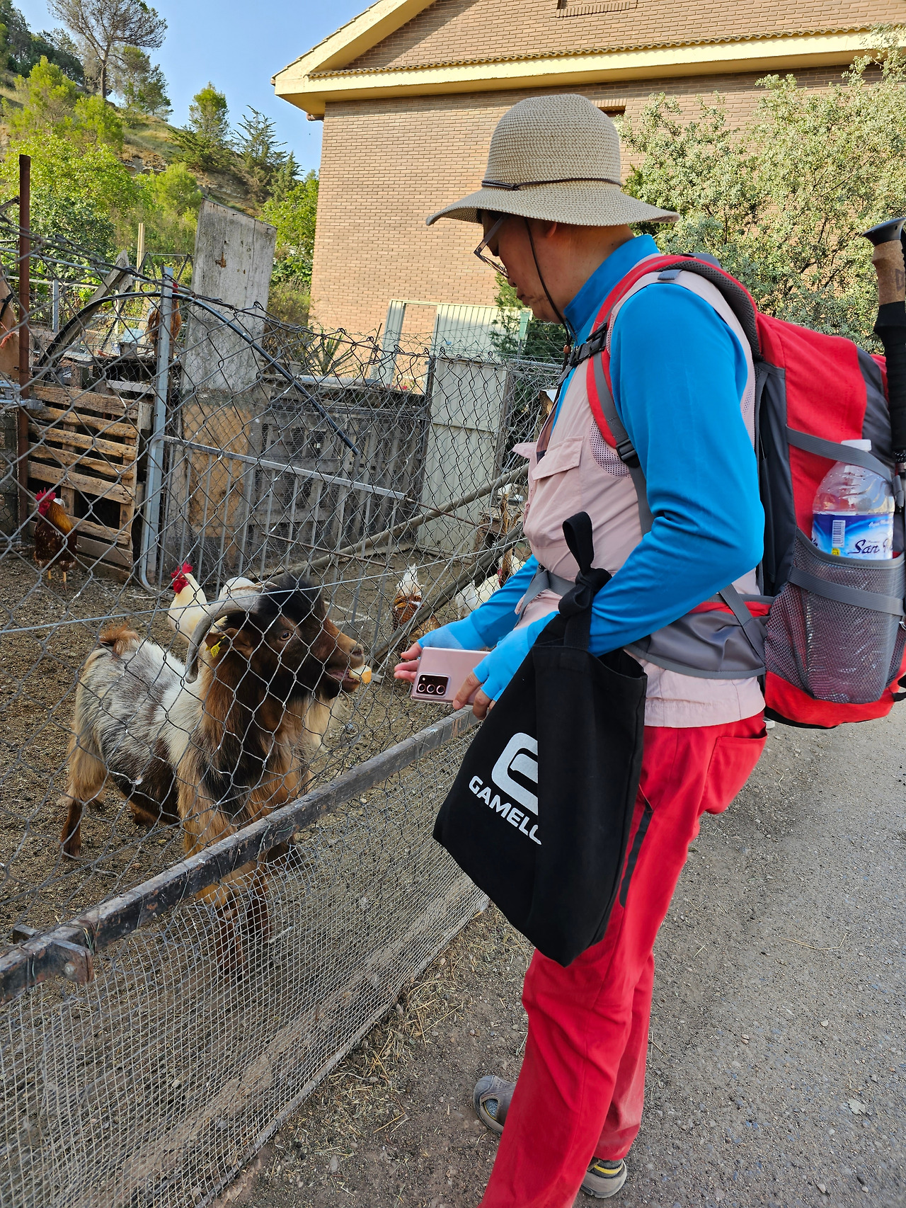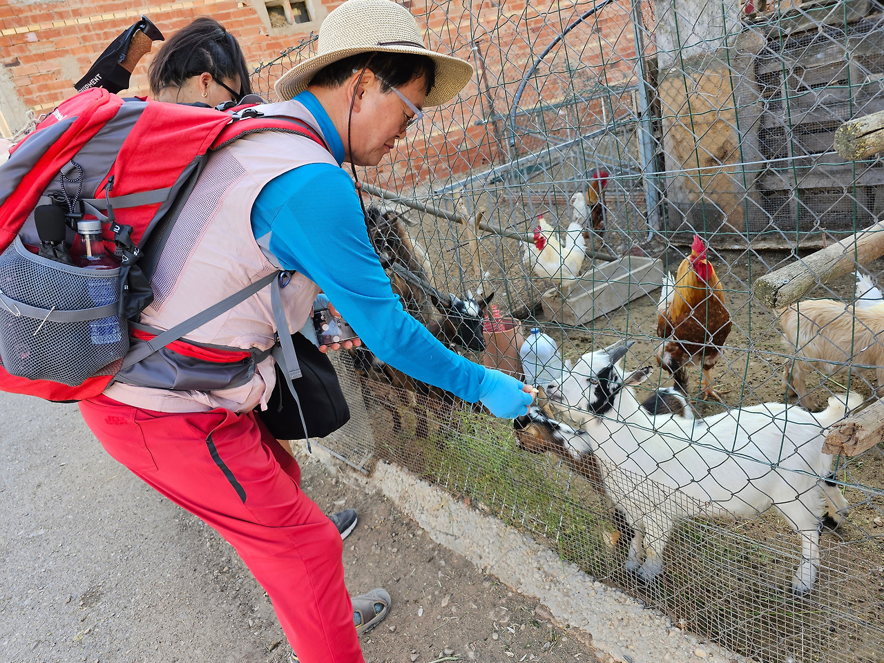 마을을 지나가는데 길옆의 가축우리에 닭들과 염소들을 사육한다. 집주인이 순례자들에게 위로를 주기 위함인지 빵과 오이 같은 먹이들을 광주리에 담아서 축사 옆에 비치해 놓고 있었다. 지나가다가 지친 몸을 쉴 겸 염소들에게 먹이도 주면서 잠시 한가한 시간을 보내본다. 의외로 염소들도 서양 녀석들이라서 그런지 바게트빵을 잘도 먹는다.